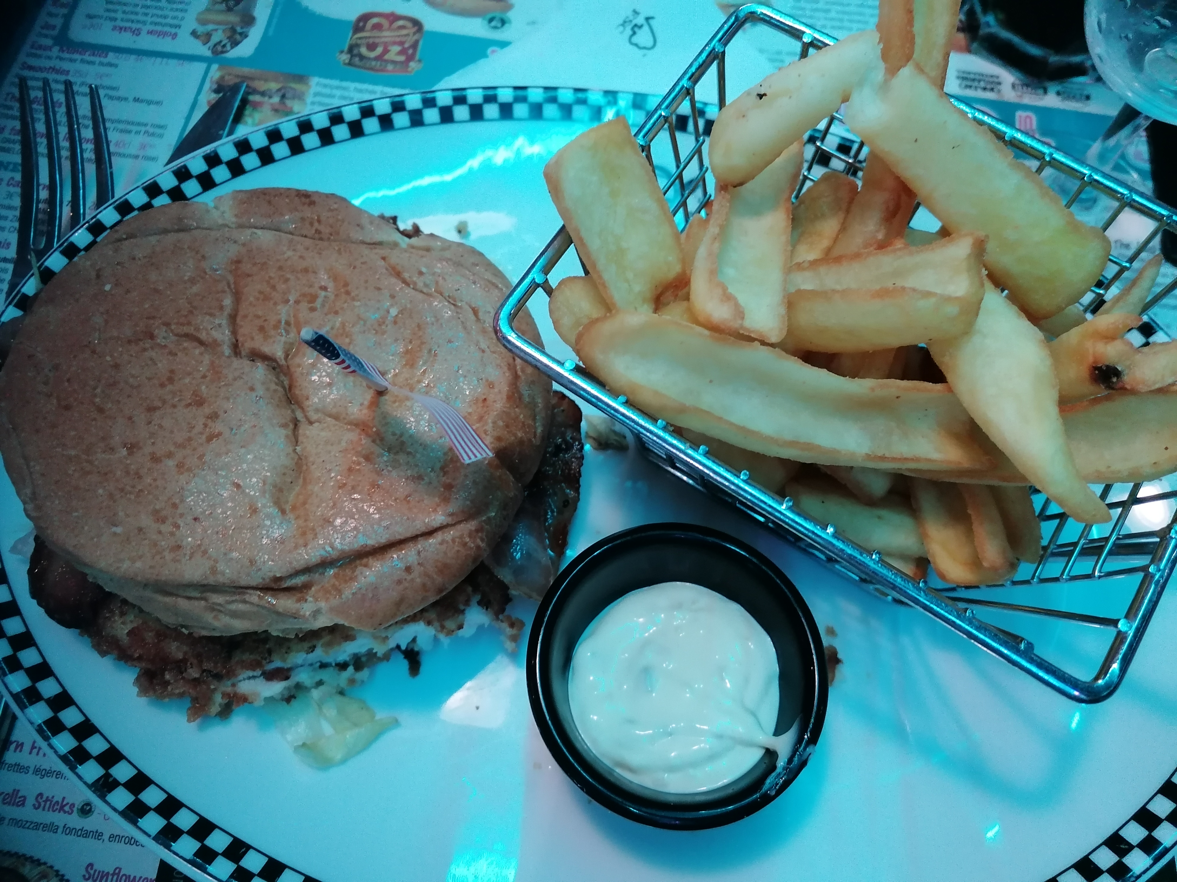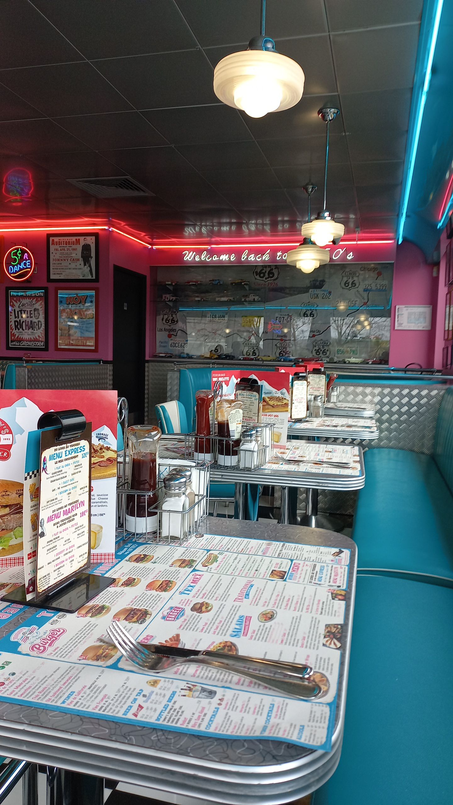 Ambiance Américaine des années 50. Superbe déco dans le thème. Copieux, très bon. On y reviendra!