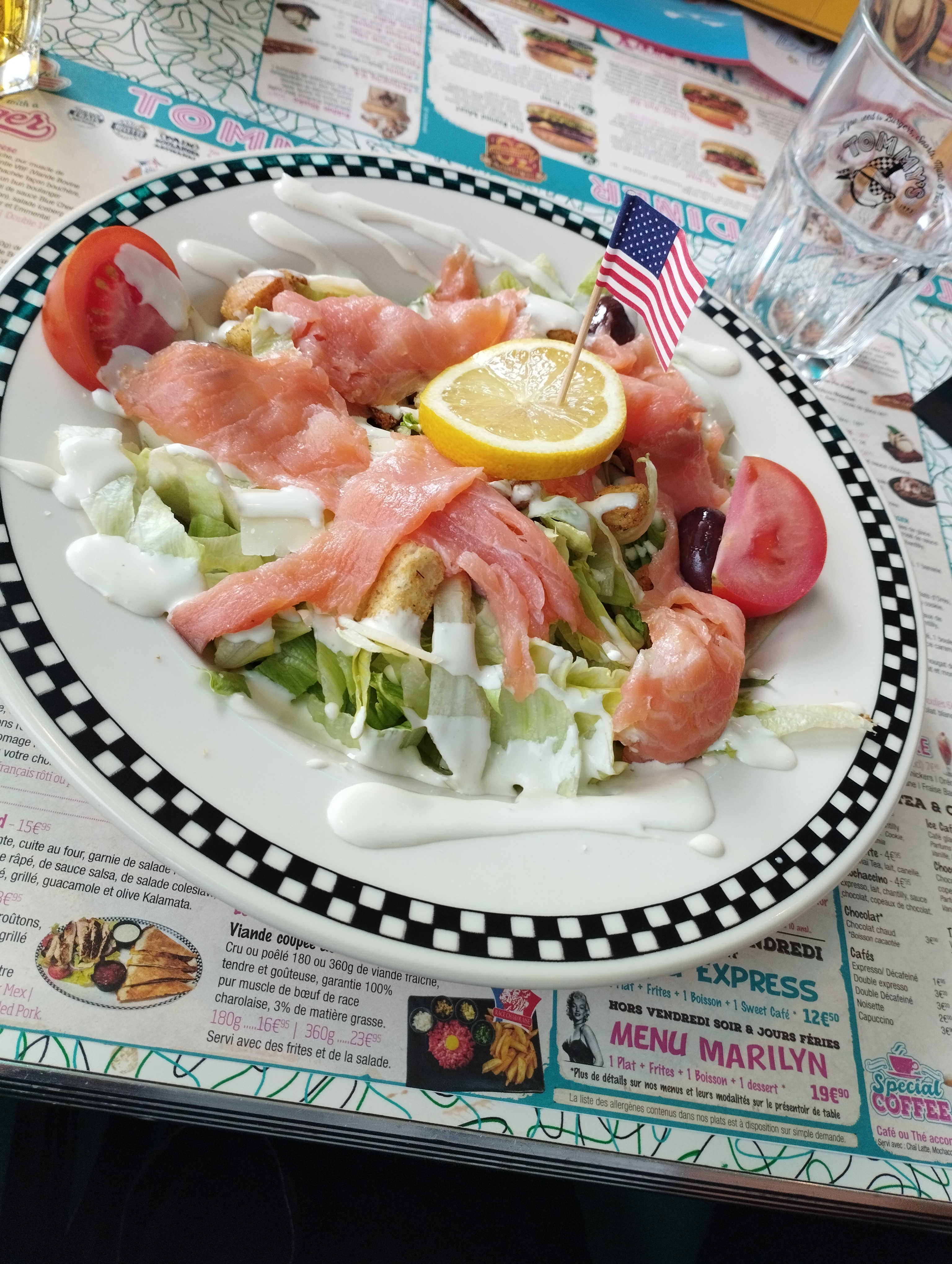 Restaurant très bien décoré et proposant des plats au qualité prix imbattable pour des quantités dans l assiette plus qu honorable ! Un vrai plaisir dans le pur style américain !