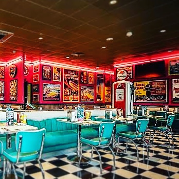Personnel et gérant très accueillant et gentils, ils nous ont accueillis généreusement pour un tournage de plusieurs jours Je recommande chaleureusement l'établissement qui a un super cadre, une déco qui nous plonge directement dans l'Amérique des années 50 et un service rapide