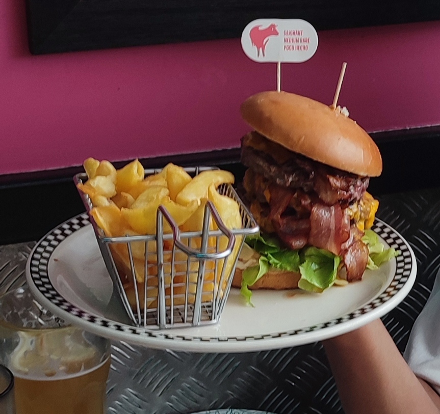 Ambiance diner des États-Unis réussie. Beaucoup de choix de burgers. Frites correctes, sans plus. Accueil sympathique. Quelques choix végétariens, avec notamment les très bonnes imitations de steak de marque Beyond Meat. Prix de base un peu cher, mais ils font -20 % sur présentation d'une place de cinéma à 15 euros ou plus.