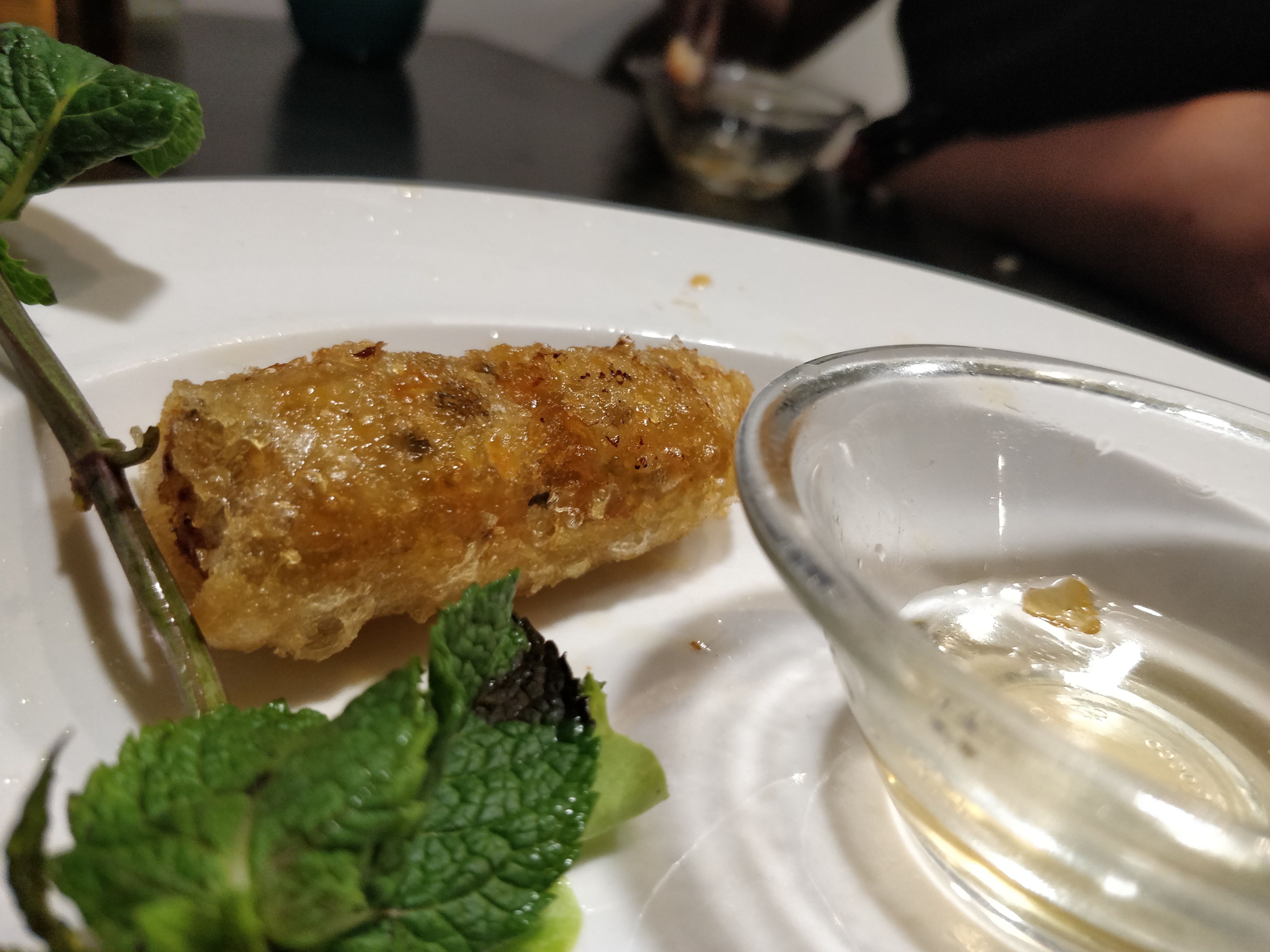 Il s'agit d'un petit restaurant qui se concentre sur les plats à emporter et la livraison, mais qui dispose également d'un petit nombre de tables. Il est situé à l'écart (mais très proche) donc il n'est pas inondé de touristes comme les autres restaurants du quartier. La nourriture est simple, fraîche et copieuse. J'ai eu un rouleau de printemps aux crevettes et un « petit » bol de pho. Les deux étaient excellents, utilisant des ingrédients frais et mettant l’accent sur la saveur. Je reviendrai certainement avant la fin de mon voyage.