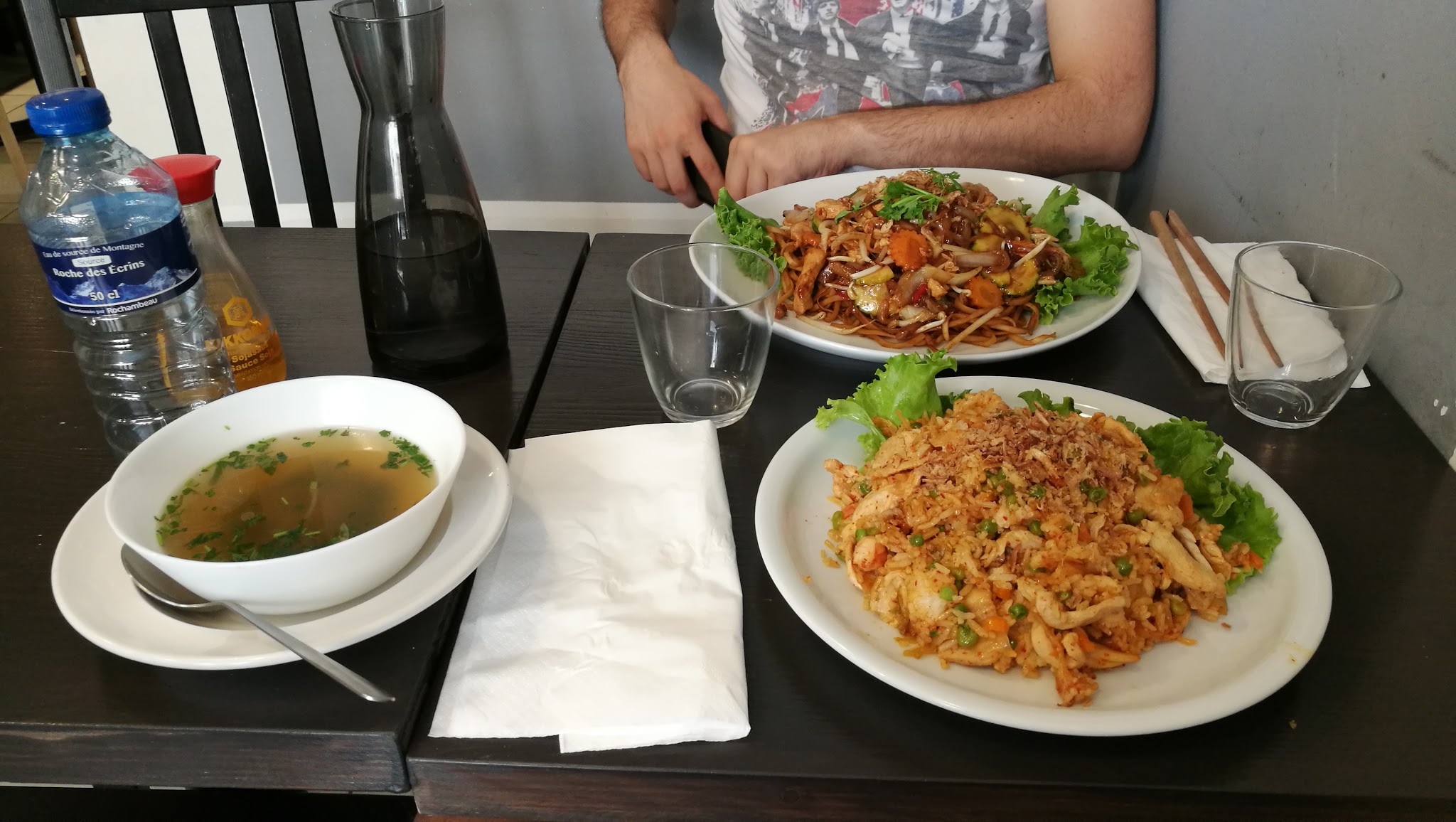 Accueil sympathique, mais ... La soupe phö n’est pas à la hauteur: seulement des pâtes, des tranches de bœuf, un peu de ciboulette et de coriandre. Pas d’accompagnement (pas de soja, pas de basilic thaï, pas d’oignons, ni citron vert, ni menthe ...). Avec une bière à 6 euros, j’ai préféré en rester là ! Dommage.