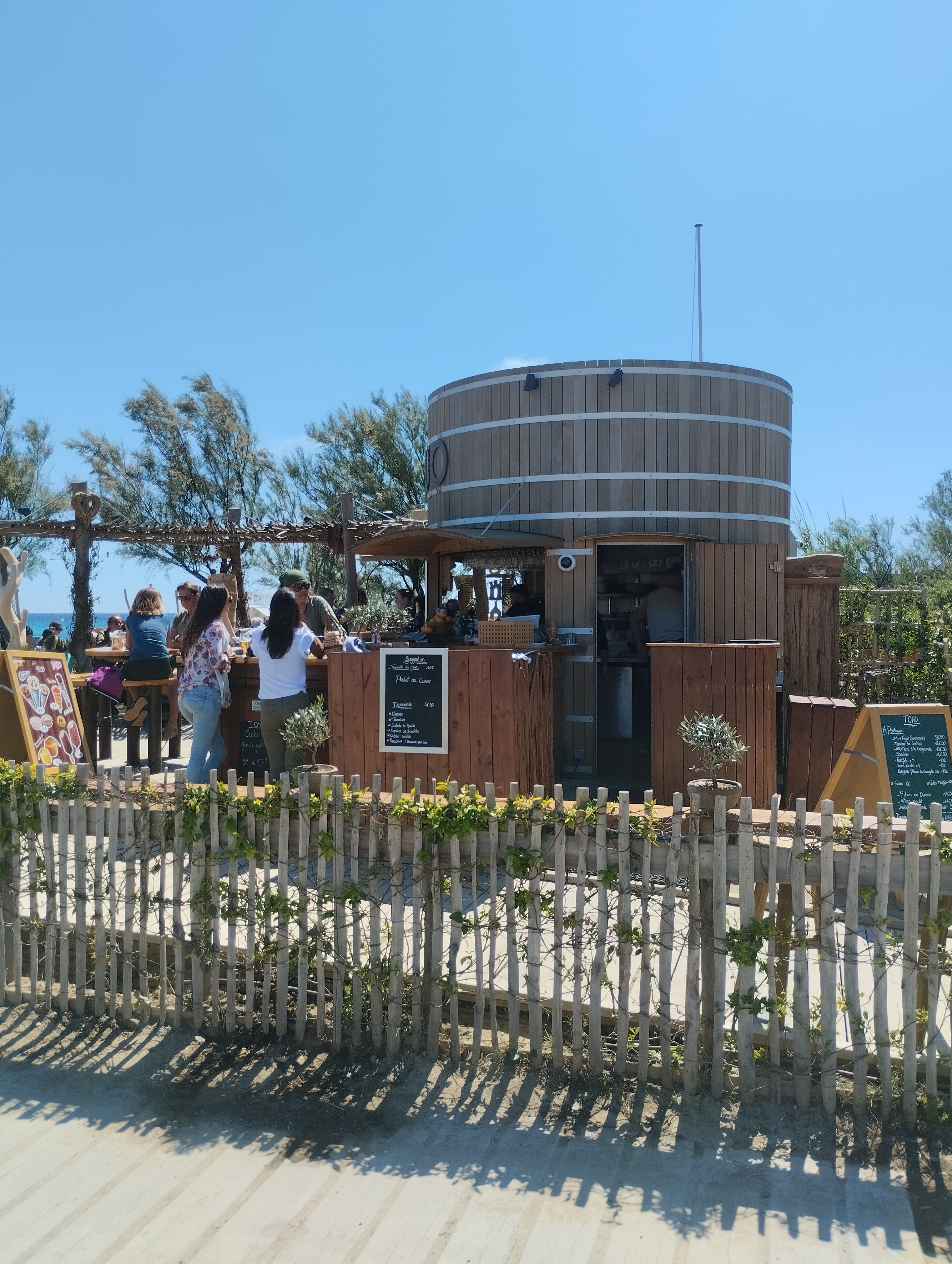 Beau bar de plage. Plats délicieux et service sympathique. Tout est très soigné, des gens passionnés. Ça vaut vraiment le coup !!