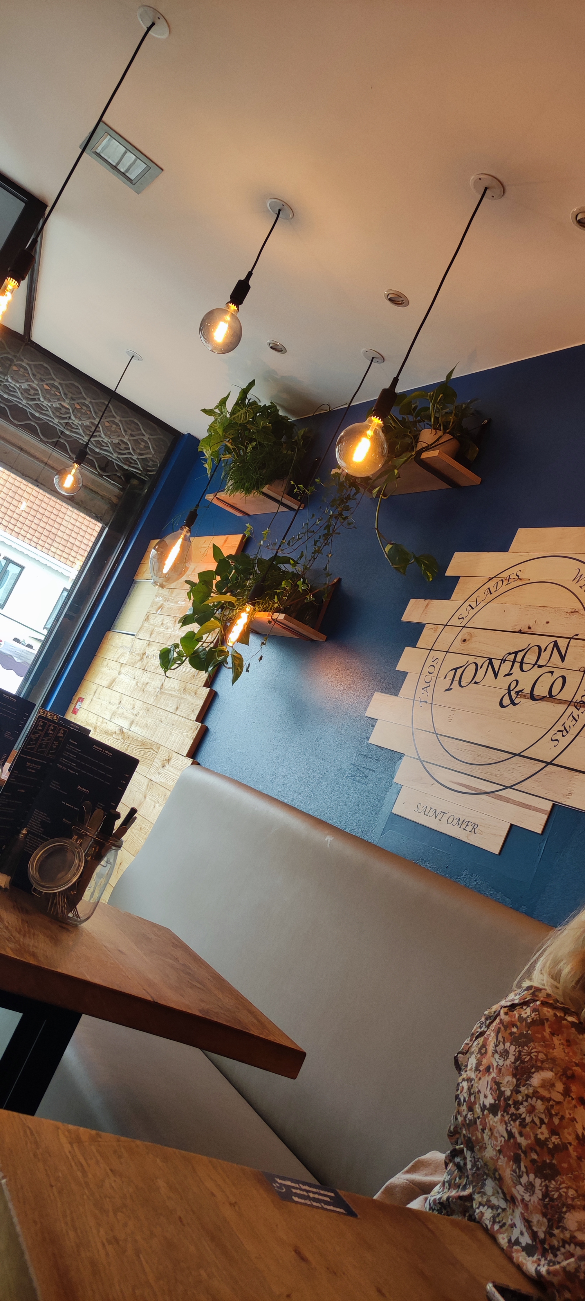 Un avis sur ce nouveau restaurant : Tonton & Co : rien que le nom est chaleureux Le slogan d'accueil : Bienvenue chez tonton Accueil personnalisé par l’équipe avec présentation des formules (voir les photos) Pour les burgers, Bœuf Angus et volaille de Licques de la région au choix. (J’ai essayé le bœuf et le goût est au rendez-vous et la cuisson maîtrisé). Pour les frites : frites fraîches et cuites au gras de bœuf. Là encore le goût y est. Jusque-là, un sans-faute de la part des tontons (et tatas). Pour la présentions, servi dans un plateau en bois aux initiales de l’entreprises, la petite touche qui montre l’attention du détail. Viens ensuite le dessert, Tous fait maison et utilisation du Pack Hygiène (Date de fabrication / DLC / Fait par …). Encore du professionnalisme. Et là encore un délice pour le palet. Ambiance : Salle agréable et propre, l’équipe est en tenue à l’image de leur création, ton bleu et gris, vue sur la place de St Omer, un peu sonore quand la salle est pleine. Un tonton ou une tata vient vous voir de temps à autres si tout se passe si vous y allez pour la première fois. Et maintenant l’addition : 14.90 € comprenant : Burger (j’ai choisi la raclette), frites, boisson, dessert et franchement vu la qualité, je ne suis absolument pas déçus. Et Lors du départ : A bientôt chez Tonton encore là, un petit détail qui fait la différence Bref une nouvelle adresse à retenir pour les amateurs de burgers, De Tacos et de nouvelles petites pépites qui sortent de temps à autres.