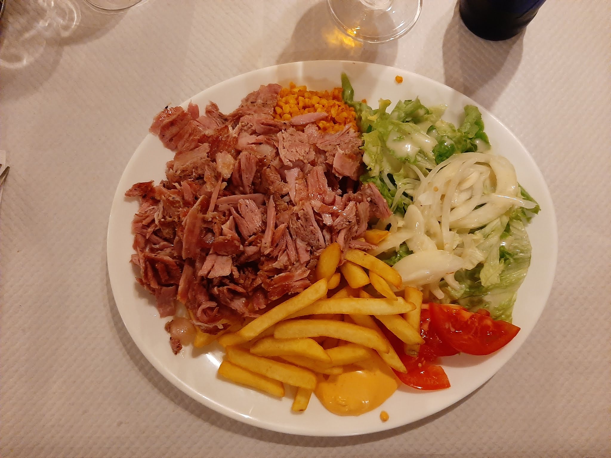 De passage à Melun et se faisant déjà tard, nous sommes entrés dans ce petit restau. Nous avons bien dîner. Par de Chichi mais c'était bon, propre. J'ai pris brochette poulet avec frites, salade, oignons, poivron, tomate. Sauces servies à part suite à ma demande. R. A. S