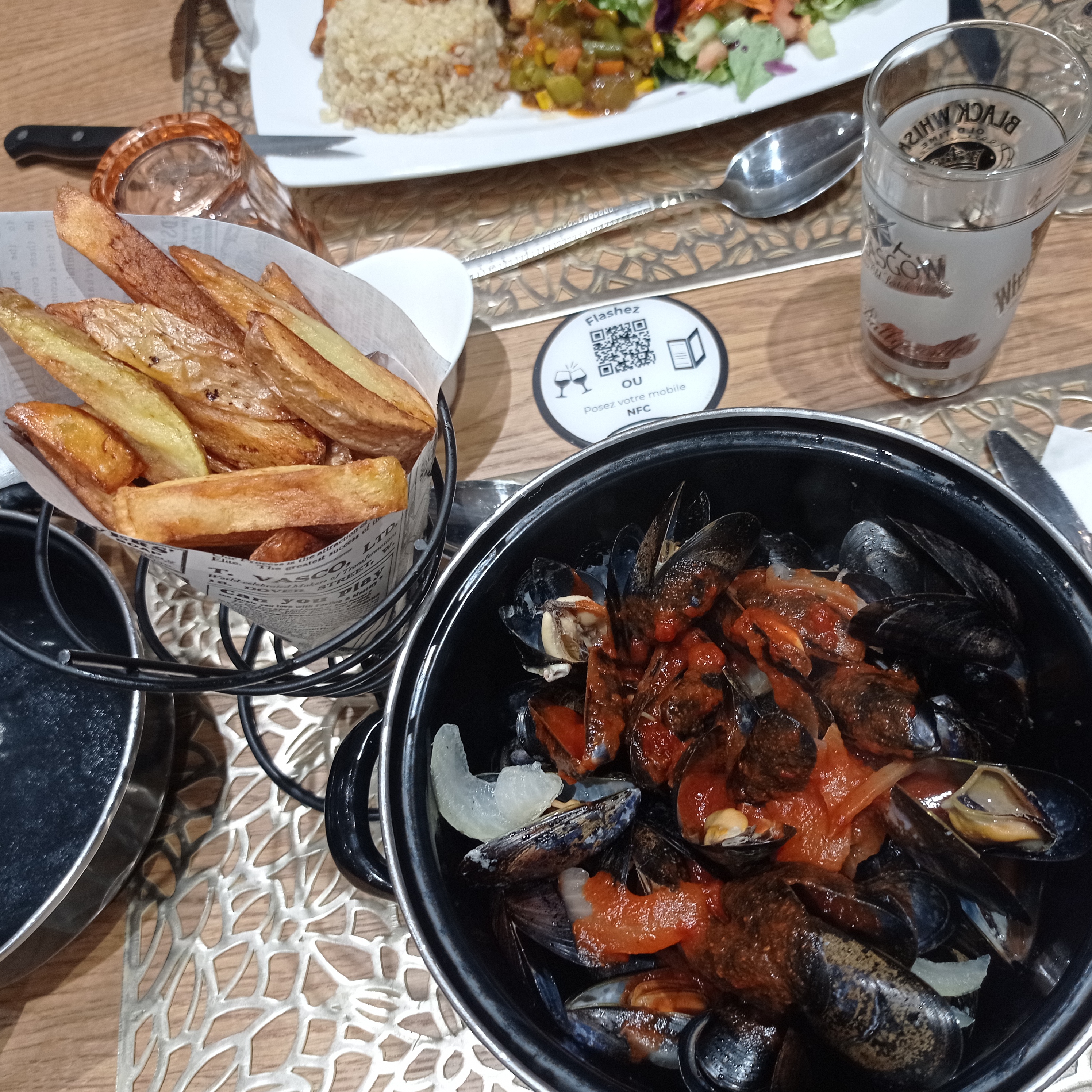 Attention les moules ne sont pas cuites! Les brochettes trop cuites ! On est allé a 2 et nous avons du choisir un autre plat 15min plus tard car il y a une mauvaise gestion de stock. J'y suis allé 2 fois je regrette.. Fuyez !