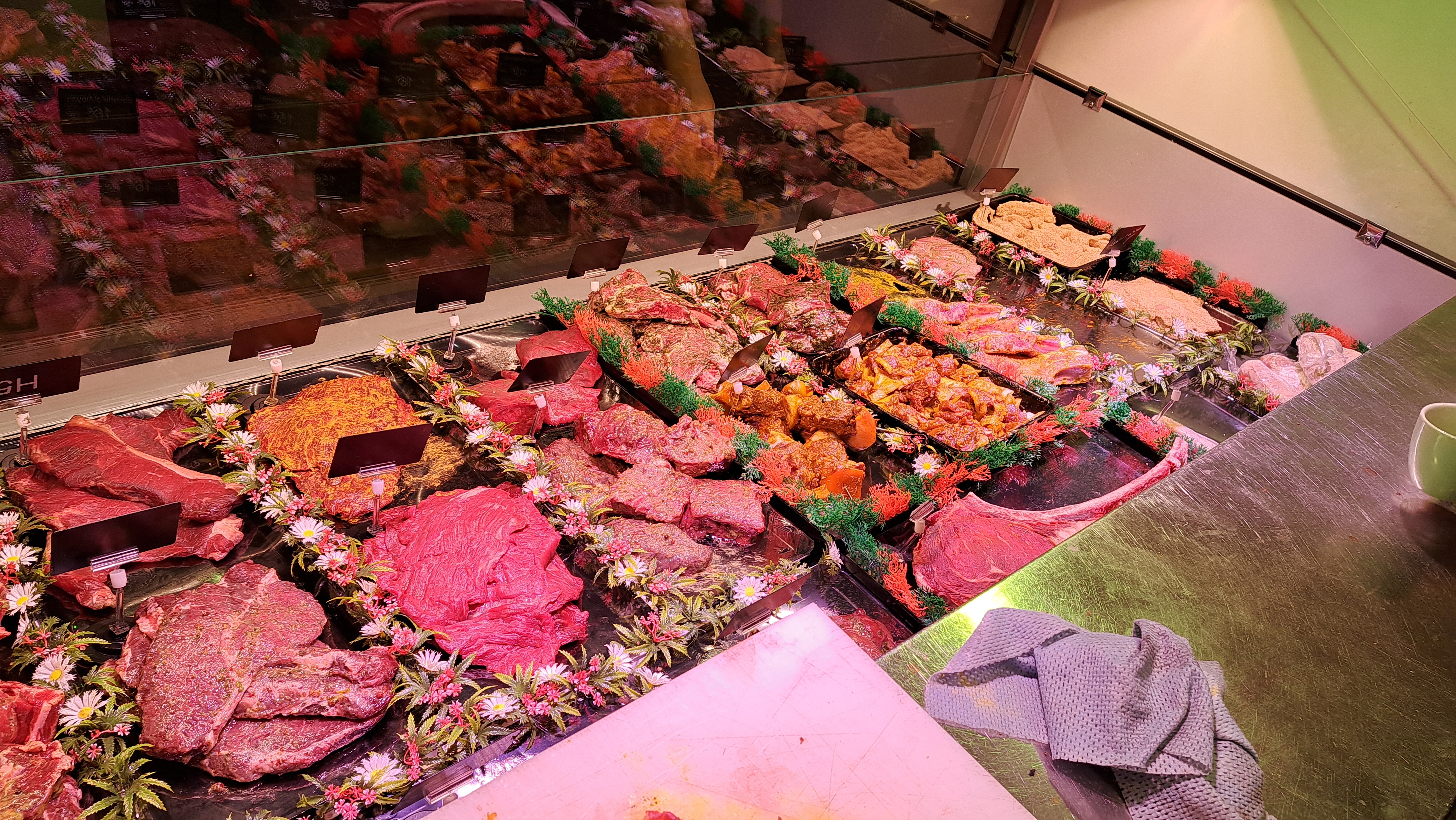 Personnel aux petits soins, viande de bonne qualité, prix raisonnables. Spécialisé en viandes mais saumon également disponible