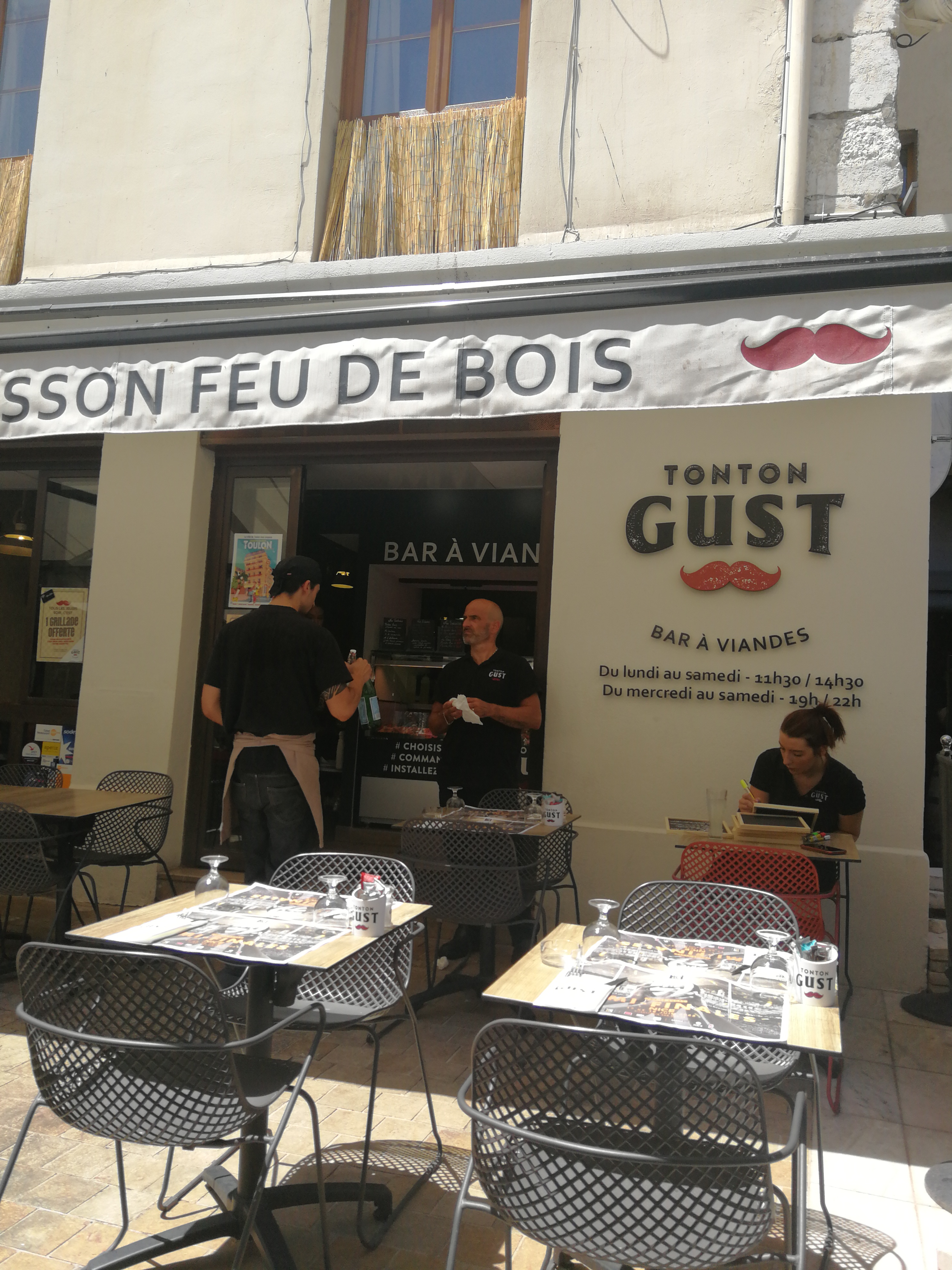 Un concept très sympa, un service efficace et sympathique et une viande délicieuse. Ouvert jusqu'à 15 heures en semaine, Tonton Gust est l'endroit idéal pour une pause déjeuner en terrasse. Une seconde visite, pour un dîner cette fois, me permets de confirmer cet avis : service impeccable et toujours sympathique et une viande juste parfaite. Tonton Gust est un endroit incontournable lors de nos visites à Toulon.