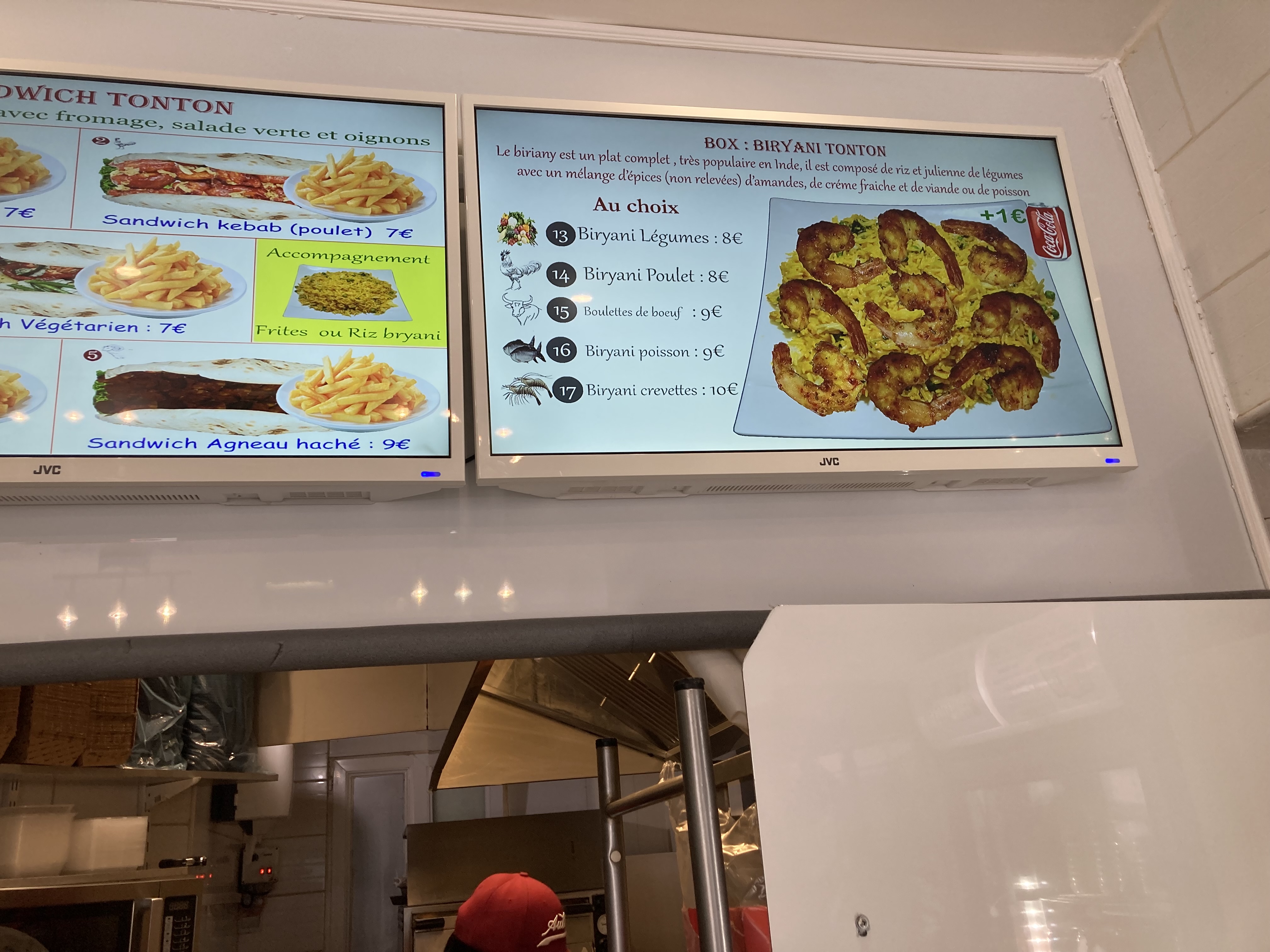 Petit fast-food indien au service rapide et efficace. Les plats sont corrects et copieux : 8 - 10 € le plat complet mi-riz mi-garniture, 8 -10 € les biryanis. Des sandwichs avec frites complètent l’offre pour 7 - 9 €. Les beignets d’oignons et samosas sont faits à la demande et sont bien croustillants. Le poulet tikka massala est bien épicé 🌶. L’espace sur place se limite à 2 petites tables collées à l’intérieur et une petite table haute devant : pas très intime, vu la queue constante pour les commandes et leur attente.