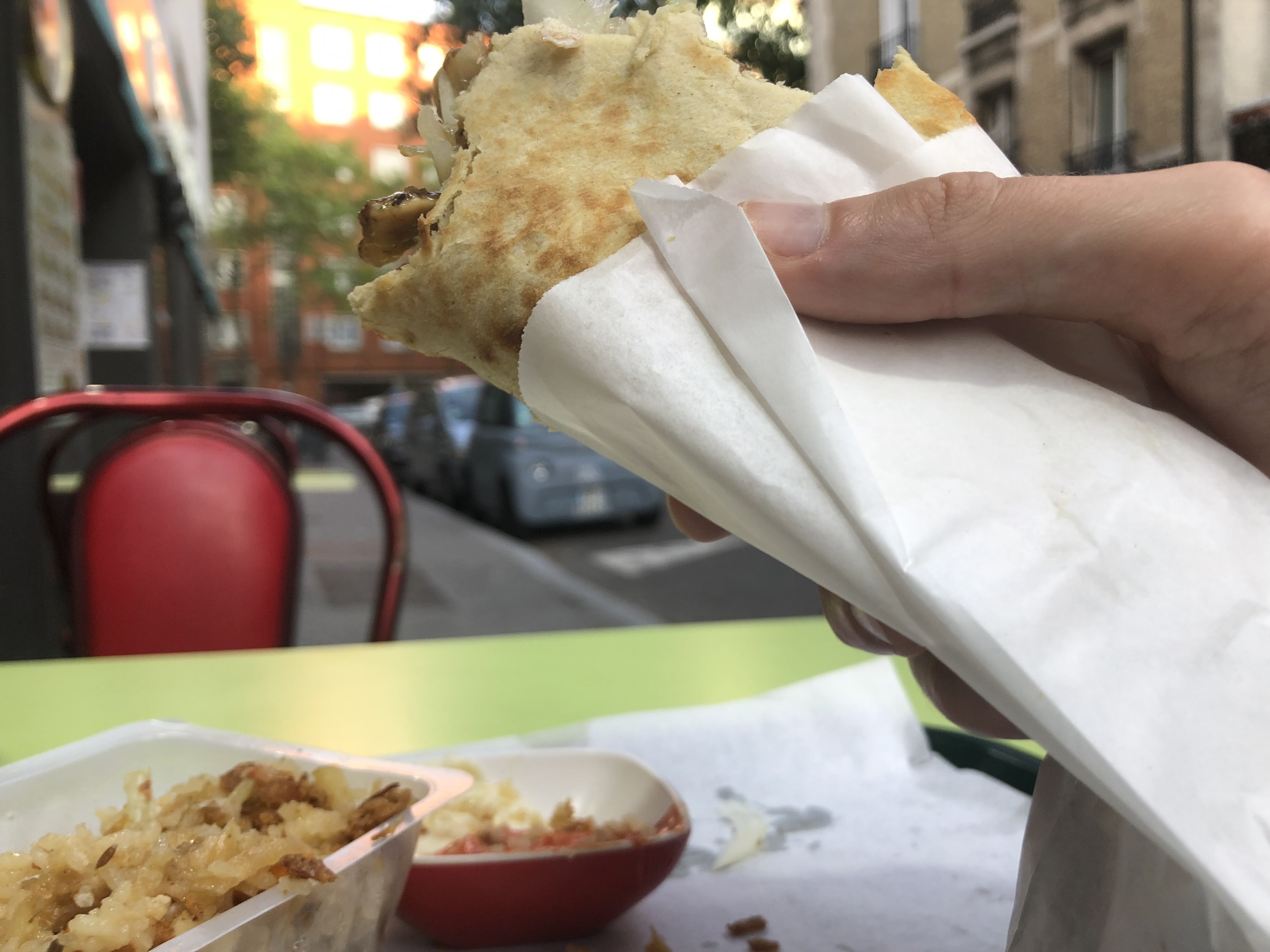 Très bon indien mieux qu'un Kebab Turc... Y'a pas photo !! Manque de place assise pour les assiettes 😋