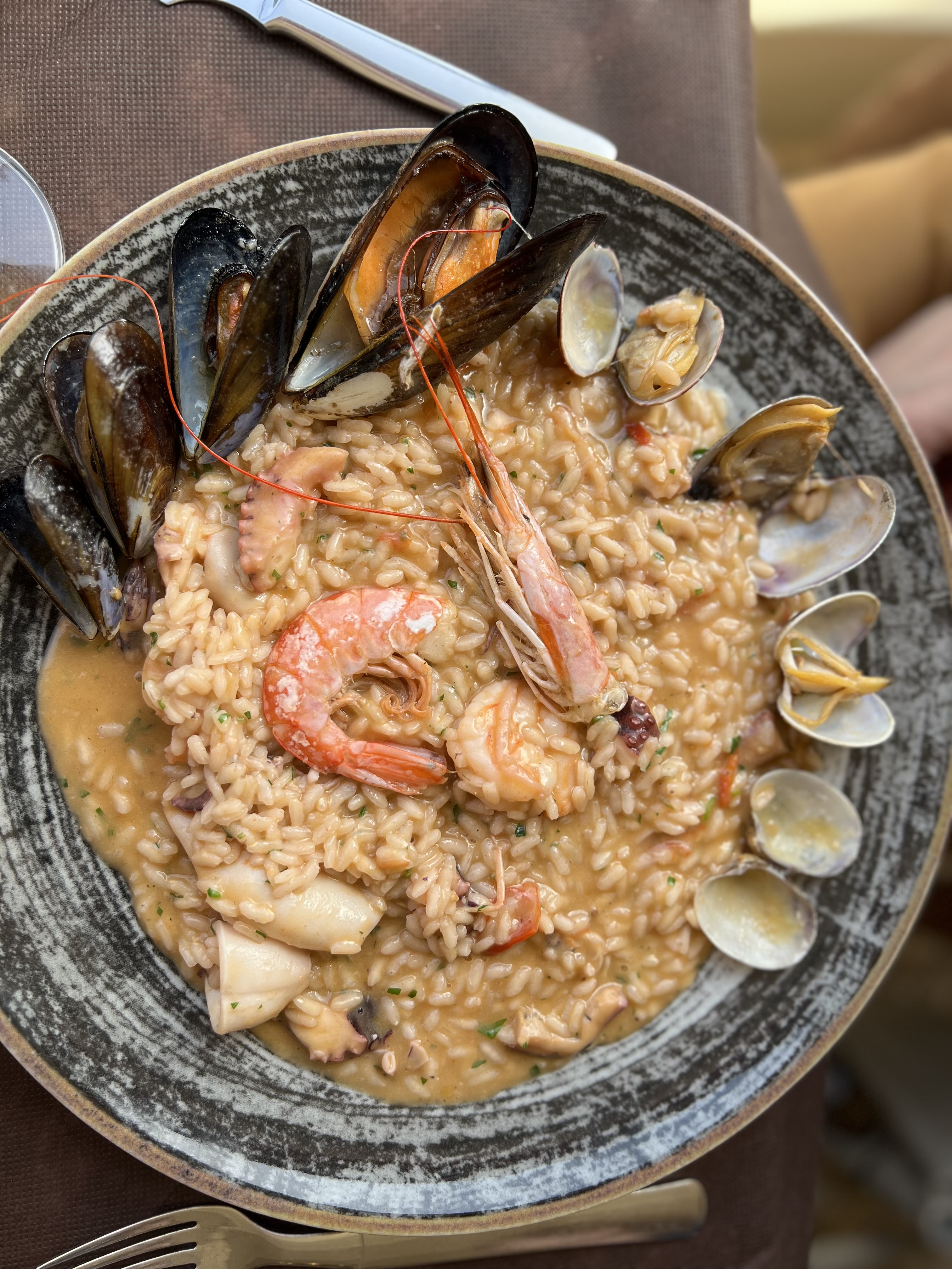 Nous sommes arrivés un dimanche midi assez tard et sans réservation (le combo ultime) et nous avons tout de même pu manger (merci, nous avions tellement faim) ! L’équipe est top: nous avons été principalement servi par Antonio et c’était un plaisir (jeune homme serviable et souriant), mais le reste de l’équipe est également super ! Venons en a l’essentiel, le repas : nous avons mangé un risotto aux légumes et à la truffe et c’était super bon ! Seul bémol: les plats à la carte sont un poil cher..