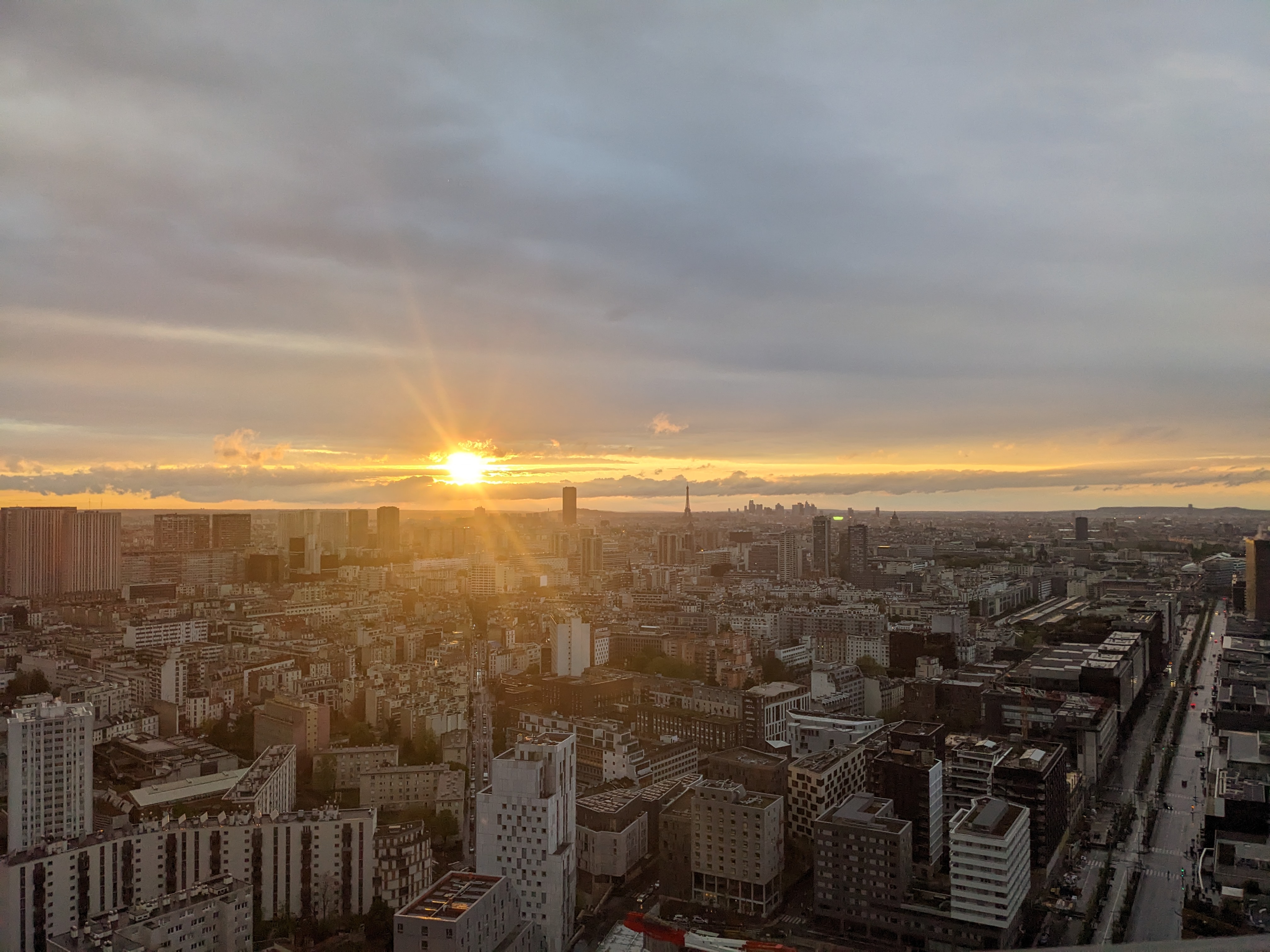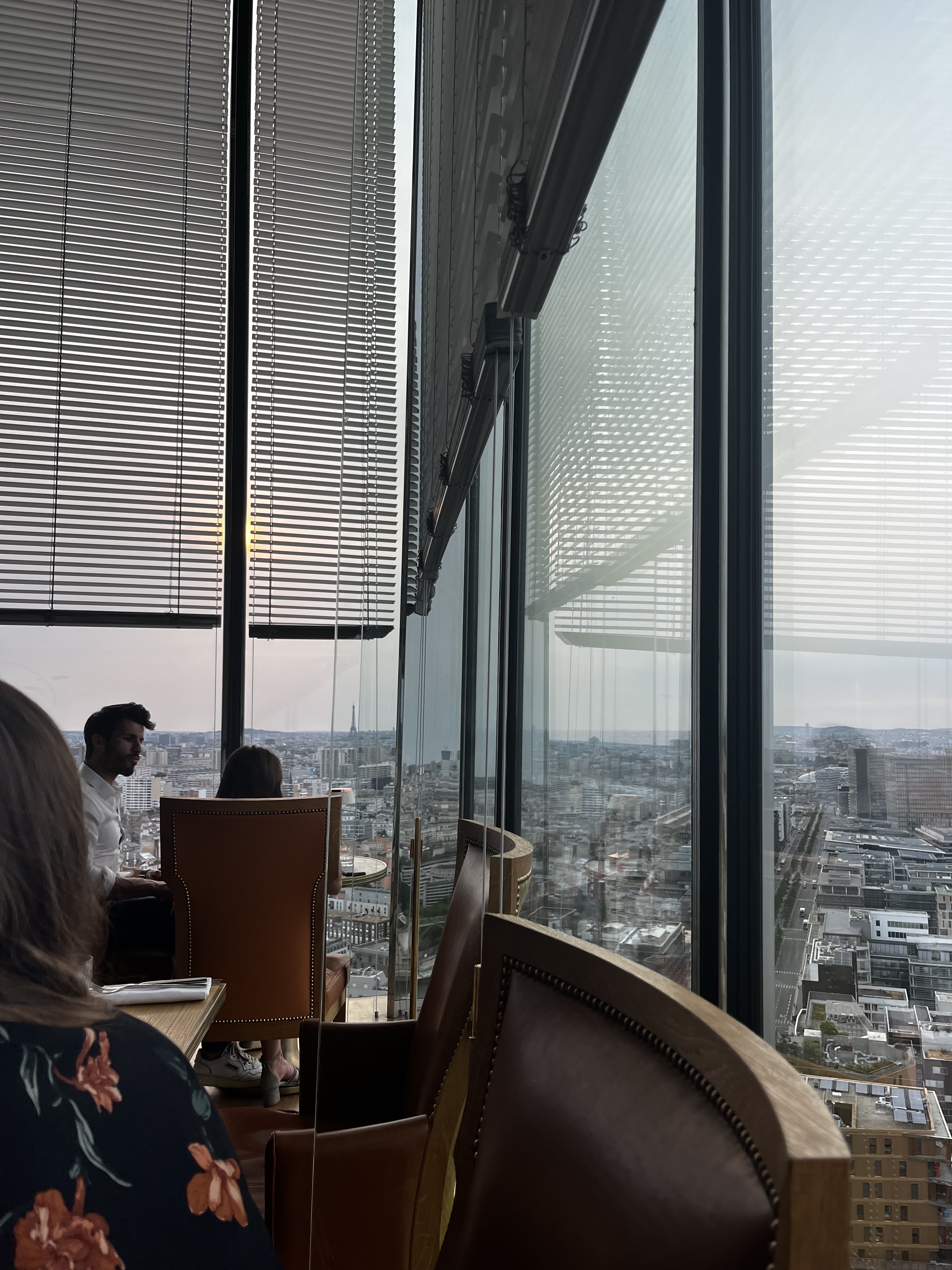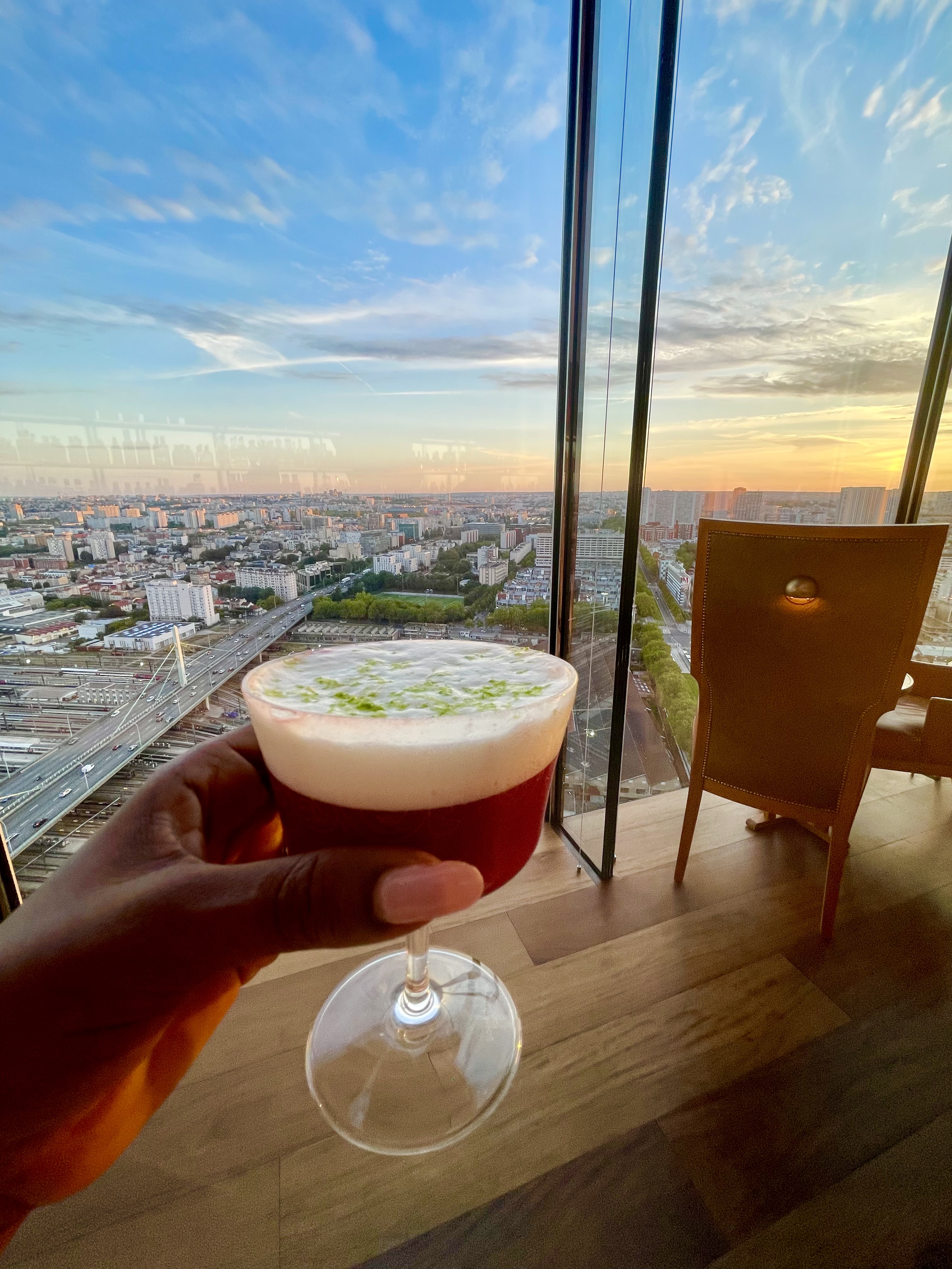 Un cocktail perché pour admirer le coucher de soleil avant un dîner au too restaurant. Vue incroyable sur Paris. Magique.