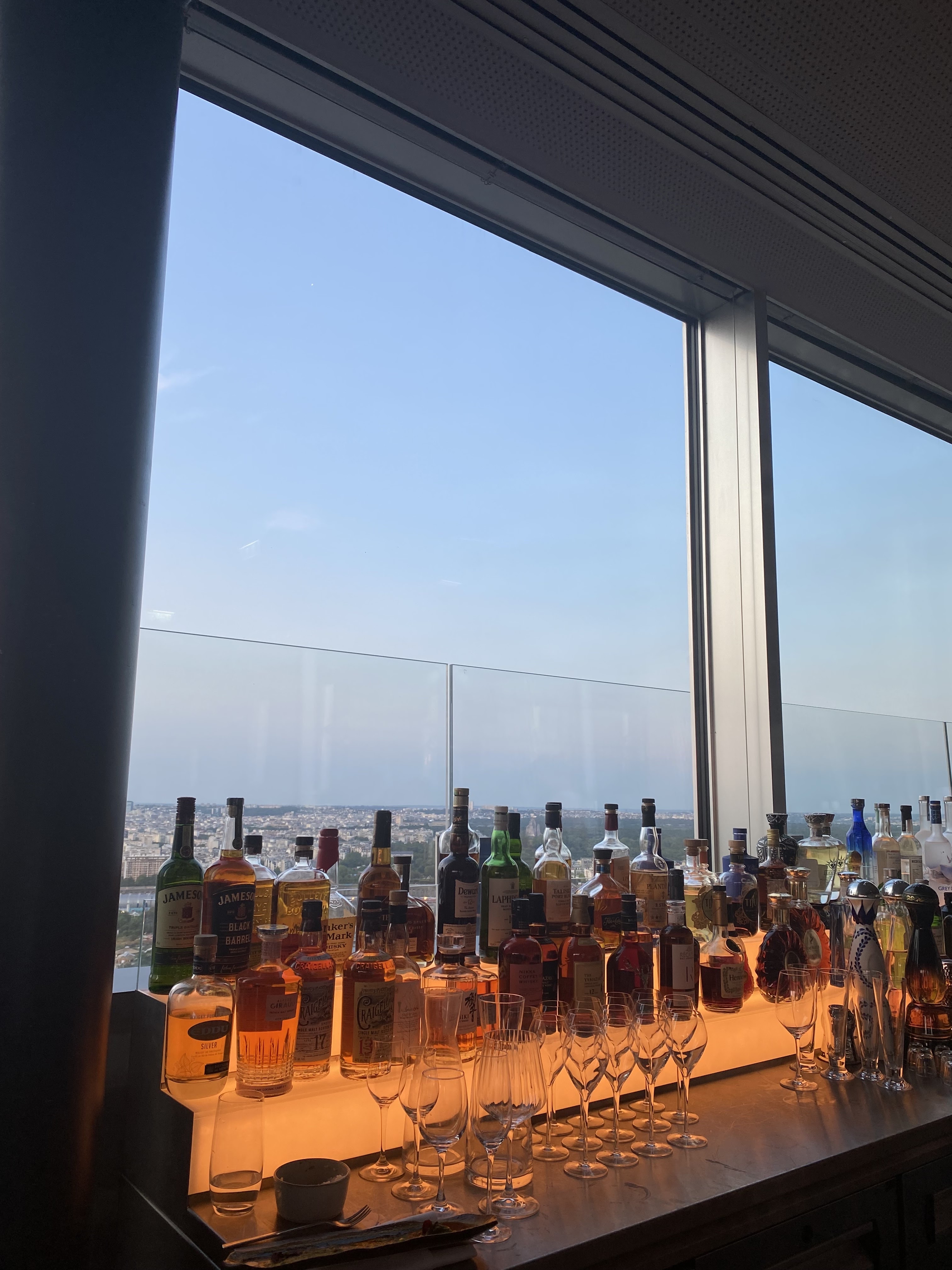 La tête dans les nuages et les papilles au 7eme ciel ! Si vous êtes amateur de cocktail, n’hésitez pas à oser en parler avec les barmans, ils vous feront découvrir leurs créations qui ne sont pas à la carte avec plaisir ! Un magnifique moment avec vue sur tout Paris !
