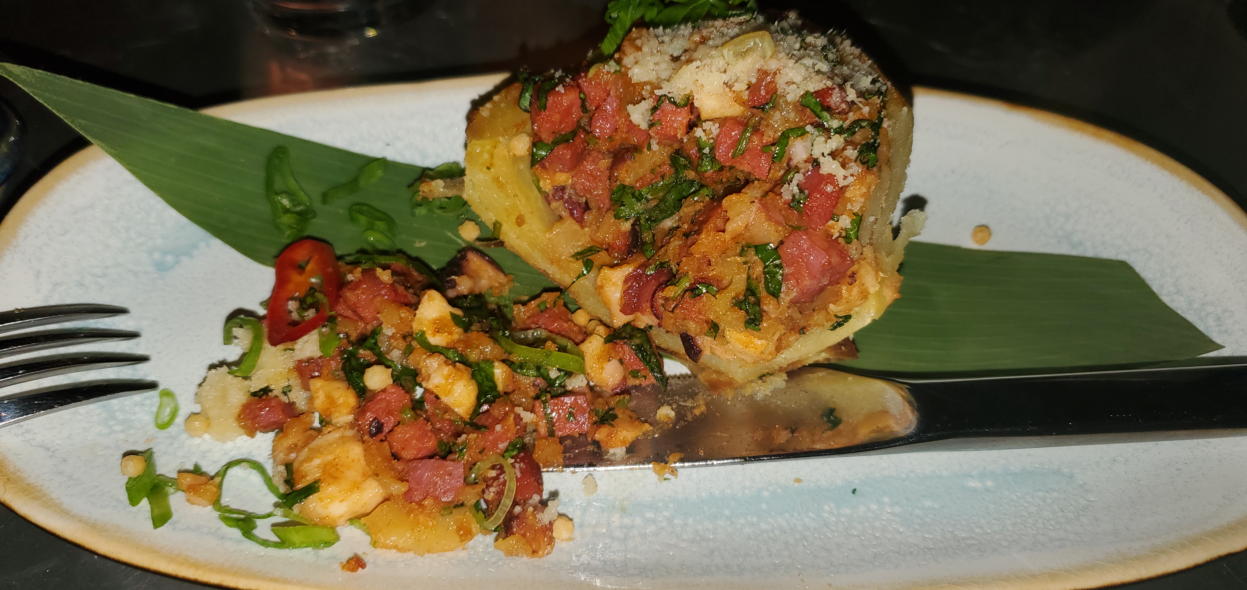 Magnifique panorama mais prix excessifs et snacks sans intérêt ; Je suis passé au skybar avec 3 amis. Le lieu est magnifique mais c'est très cher, comme la demi-evian à 8 euros !!!! Le pire sont les snacks, en particulier la spicy potato dans laquelle il est annoncé du poulpe dont je cherche encore une trace ( photo à l'appui ! ). J'ai demandé au sympathique serveur Warren de se renseigner et la cuisine lui a répondu que 20g de poulpe était mélangé à la pulpe de tomate !!!! Là, je ne vous cache pas que j'en ris encore.... je joins la photo. Faites vous une idée. Bref, super photo panoramique mais pour le reste passez votre chemin.