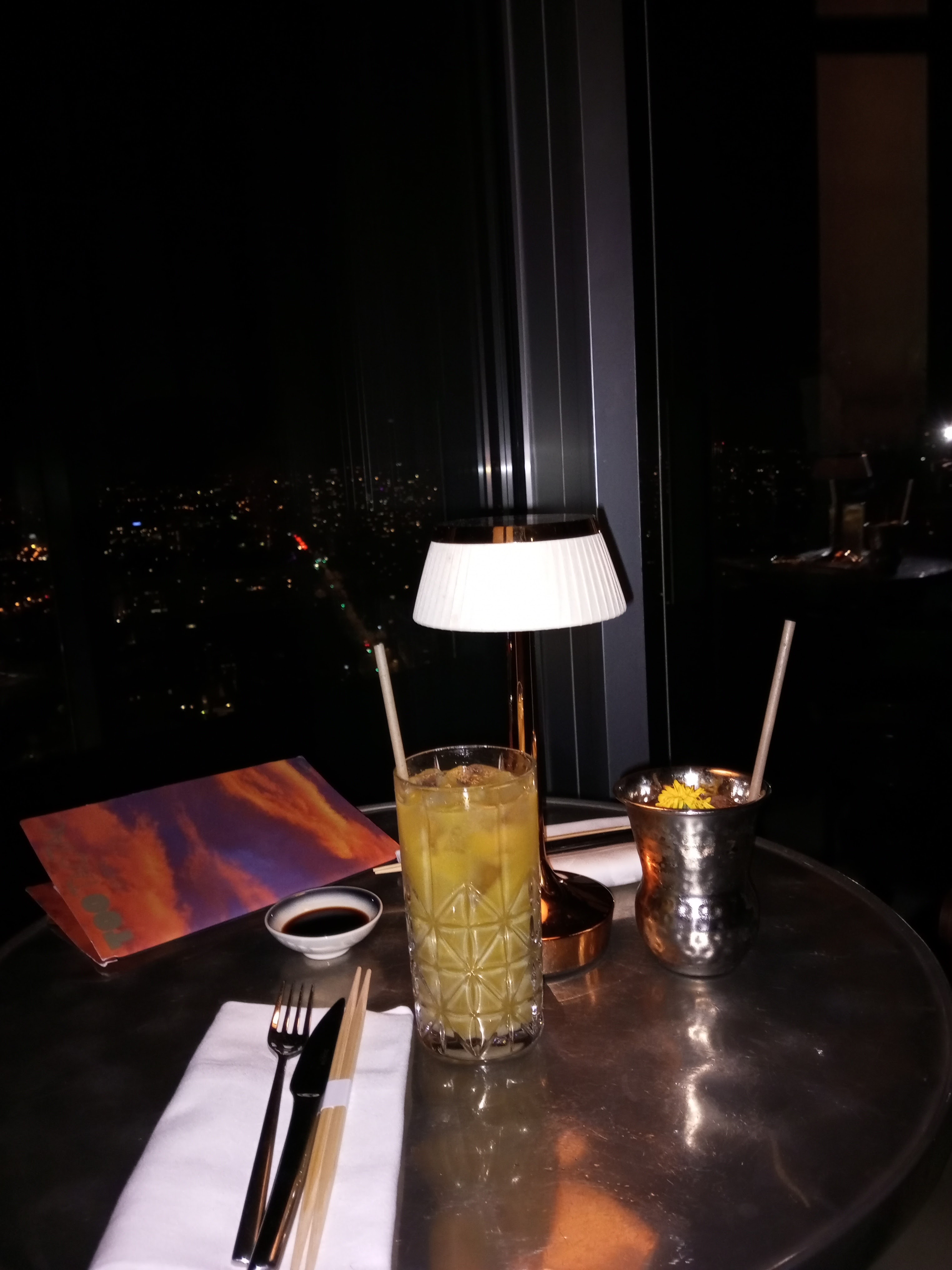 Un agréable moment au sky bar en famille pour les 20 ans de mon fils,cocktails savoureux, nous avions ensuite réservé au restaurant qui se trouve deux étages en dessous . La cuisine d'inspiration asiatique revisitée est très agréable. L'attente entre l'entrée et le plat principal est longue ( 35 minutes ) Autre bémol, les toilettes sont communes avec le bar (elles sont situées au 26 ème) je précise que la fréquentation n'est pas la même entre le skybar et le restaurant. A partir d'une certaine heure, beaucoup de gens alcoolisés restent dans les toilettes pour regarder par la fenêtre les personnes du restaurant, c'est lunaire et l'état aussi .