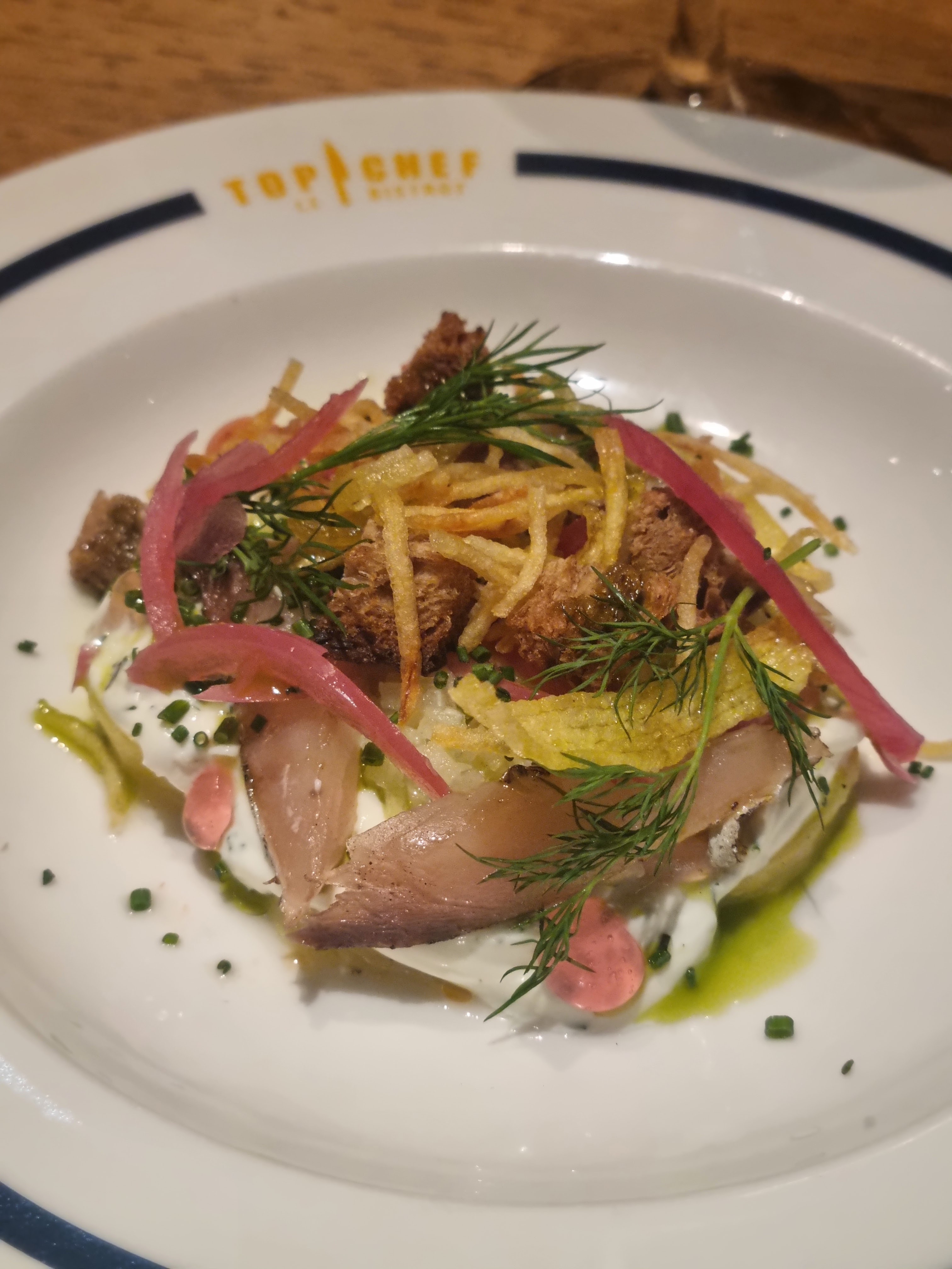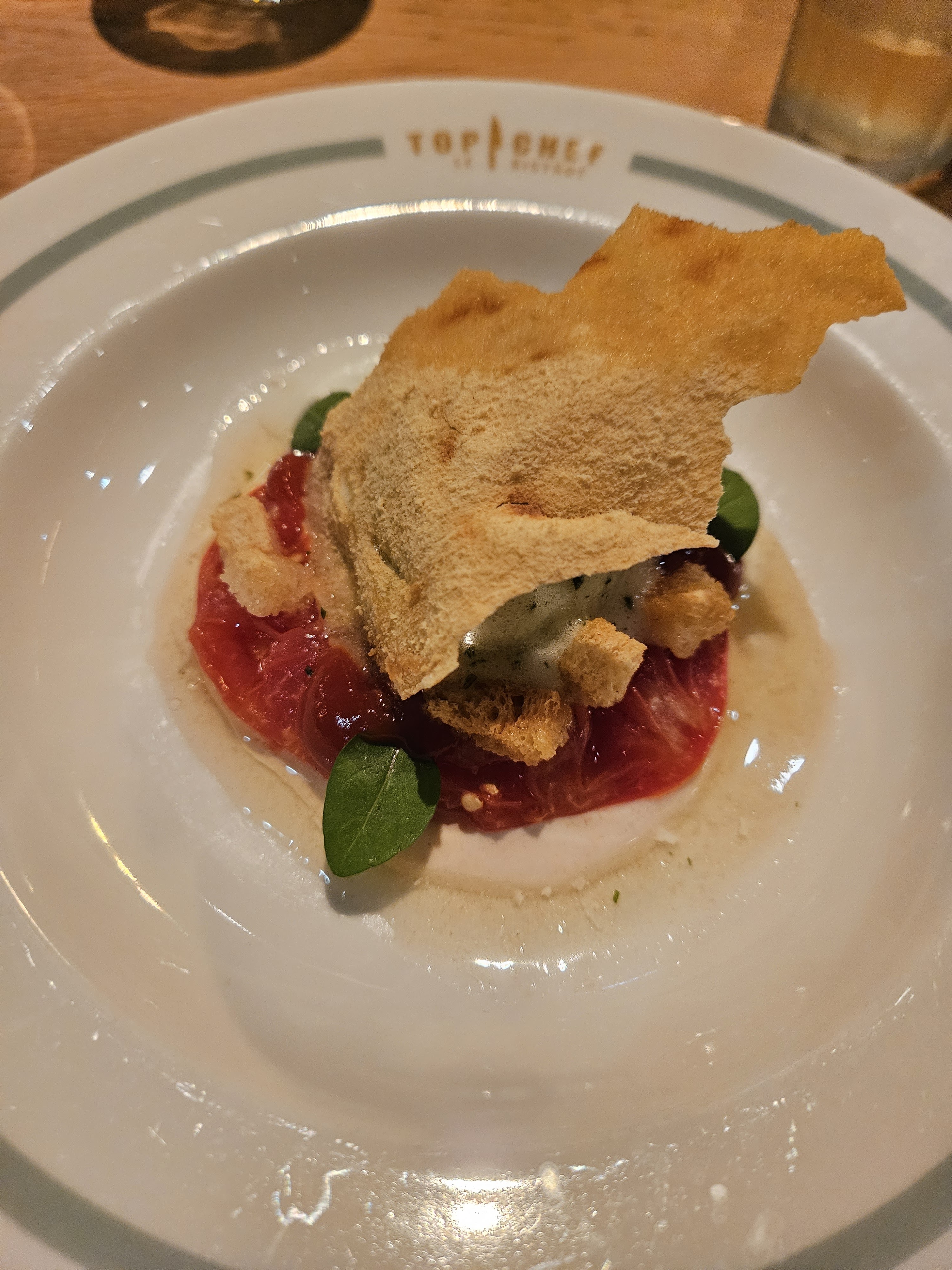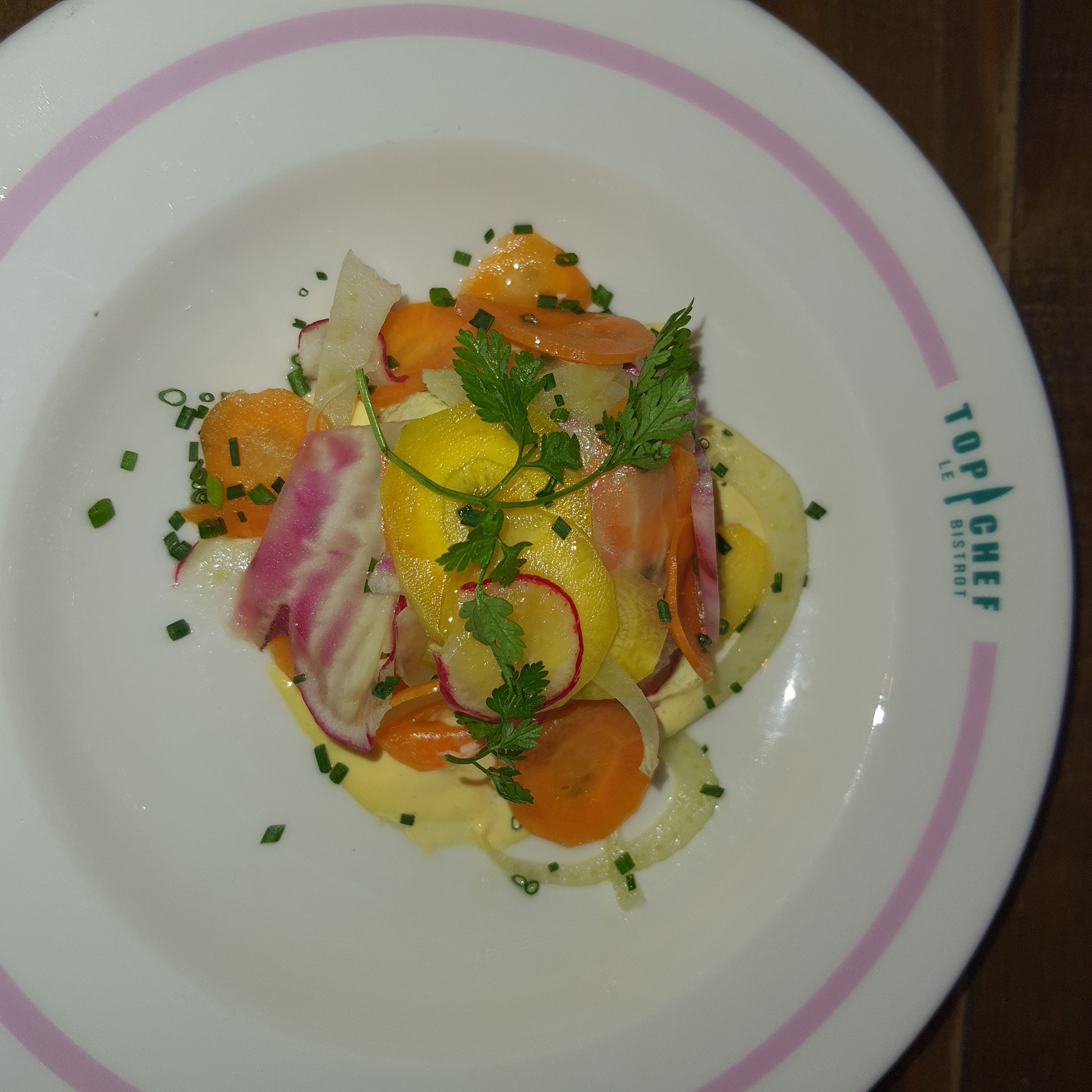 Les plats étaient corrects et j’ai tout mangé. Cependant, je trouve ça cher (surtout les cocktail à 15 euros et le verre de vin à 8 euros) et pas d’effet « waouh » qu’on attend dans un endroit lié à la marque Top Chef. Le staff est jeune/sympathique mais ils n’expliquent pas les plats et quelques erreurs de services. Rien d’exceptionnel, mieux vaut aller dans le bistrot du coin. Beau coup marketing mais l’exécution dans l’assiette n’est malheureusement pas au rendez-vous. Ça m’a fait bizarre de m’imaginer les chefs déguster ces plats qui me semblaient lambda. Bref passez votre chemin si vous êtes exigeants…