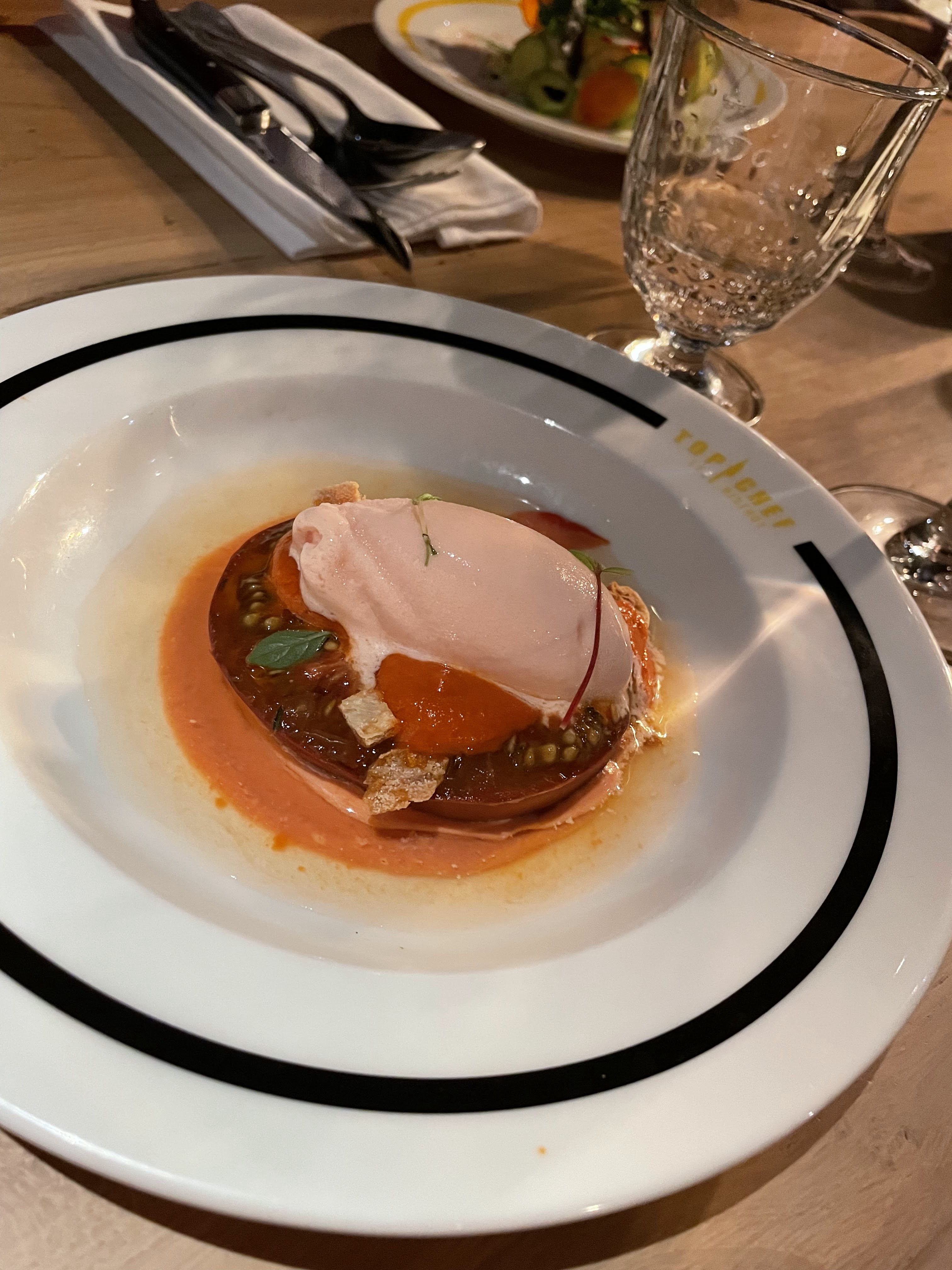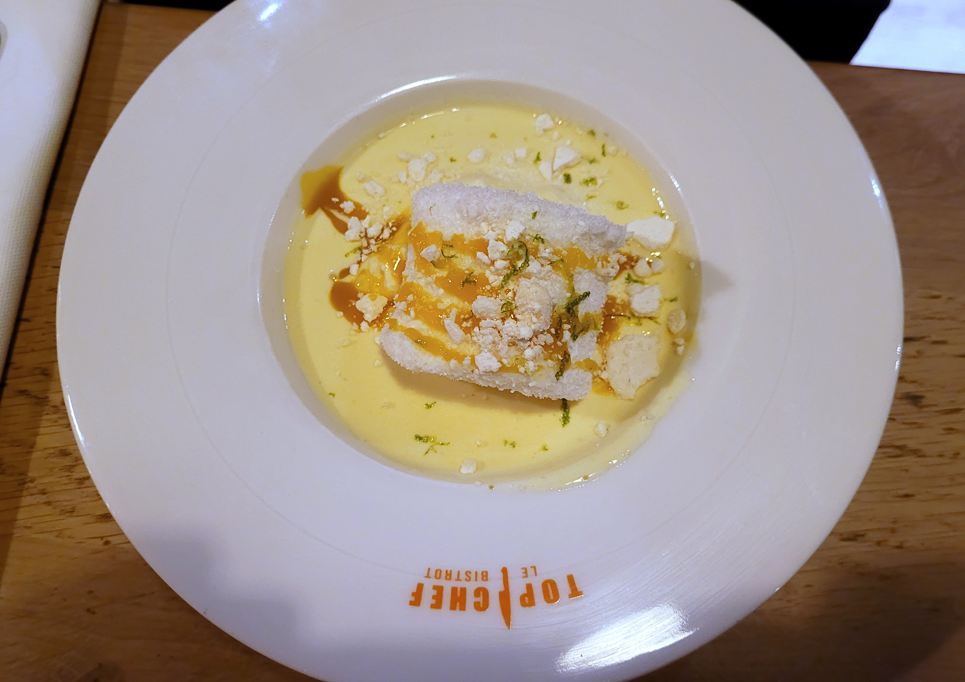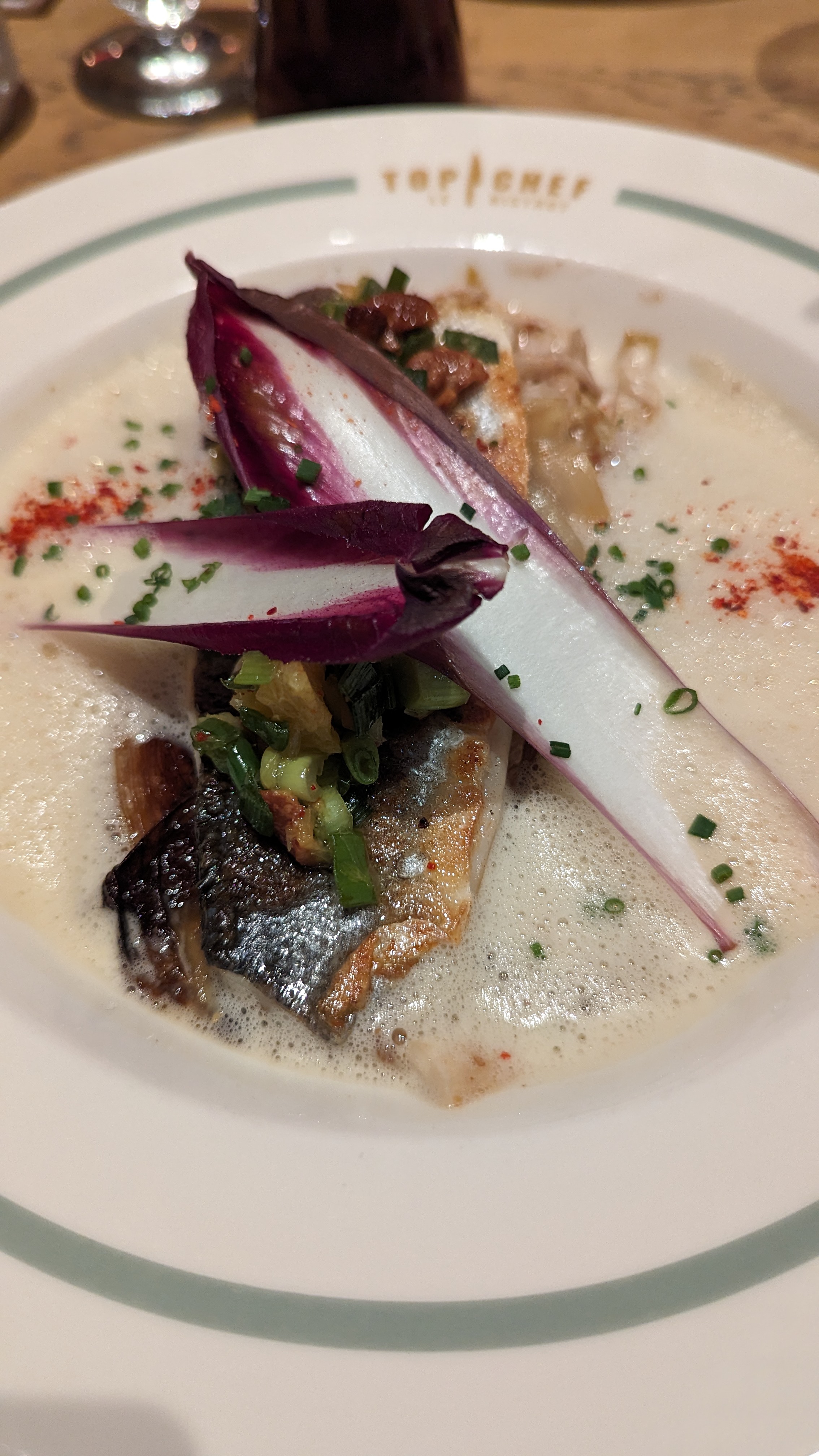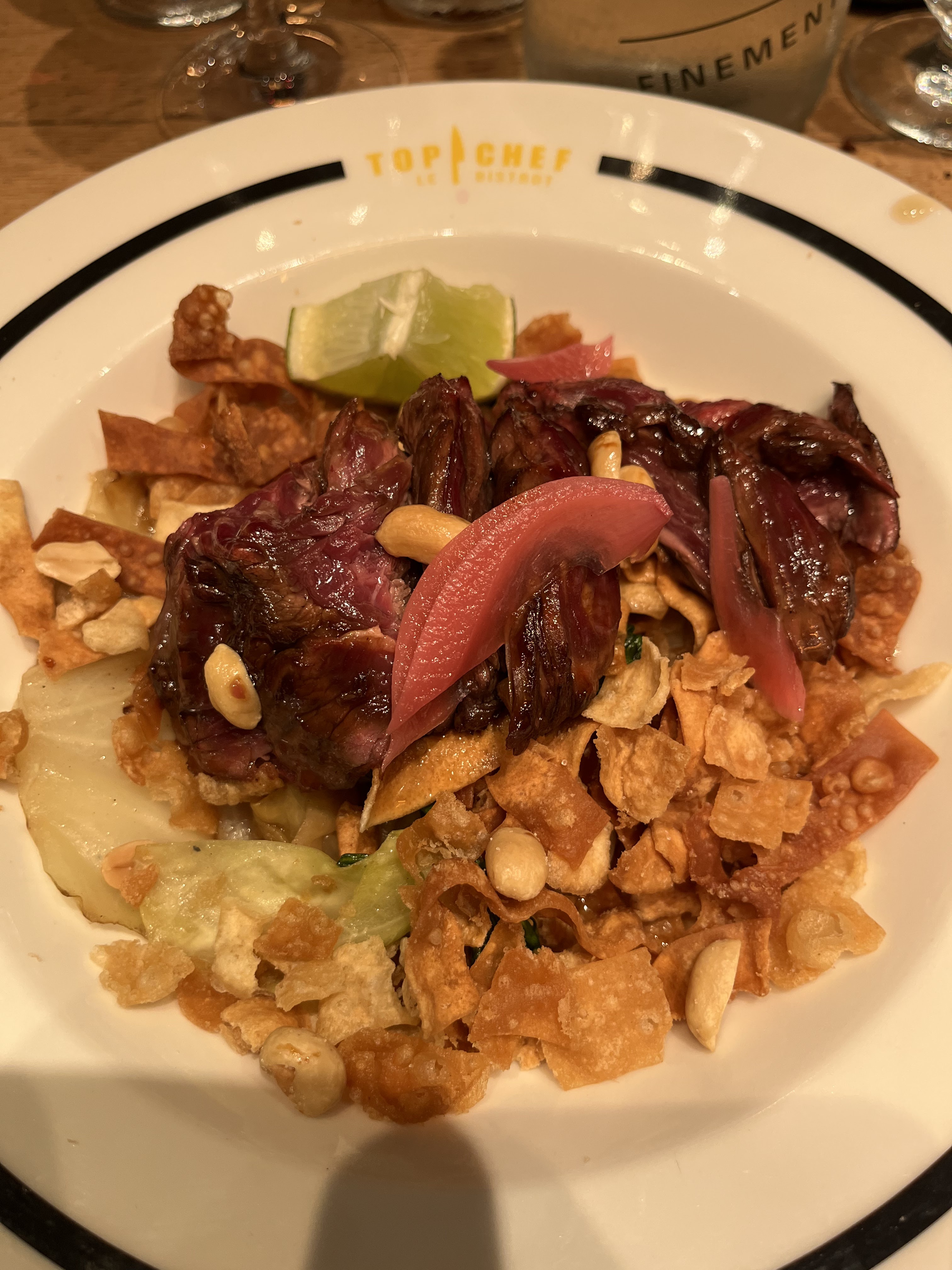 Les plats étaient corrects et j’ai tout mangé. Cependant, je trouve ça cher (surtout les cocktail à 15 euros et le verre de vin à 8 euros) et pas d’effet « waouh » qu’on attend dans un endroit lié à la marque Top Chef. Le staff est jeune/sympathique mais ils n’expliquent pas les plats et quelques erreurs de services. Rien d’exceptionnel, mieux vaut aller dans le bistrot du coin. Beau coup marketing mais l’exécution dans l’assiette n’est malheureusement pas au rendez-vous. Ça m’a fait bizarre de m’imaginer les chefs déguster ces plats qui me semblaient lambda. Bref passez votre chemin si vous êtes exigeants…