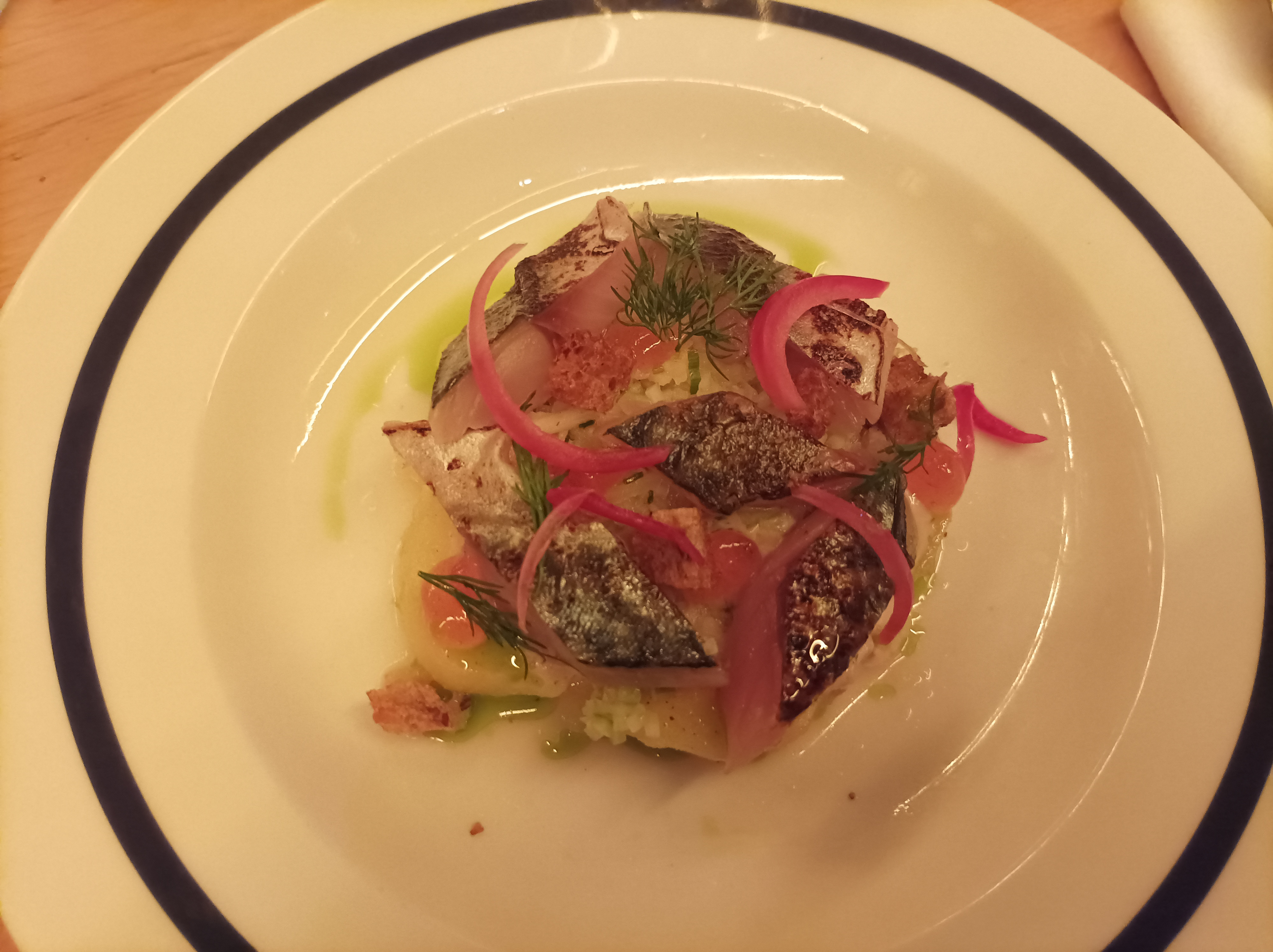 Nous avons passé une bonne soirée, les plats du chef étaient très bons. Le cadre et la décoration sont plutôt jolis. Nous avions réservé et nous étions assis à proximité de l'entrée du restaurant où il faisait un peu frais (janvier).