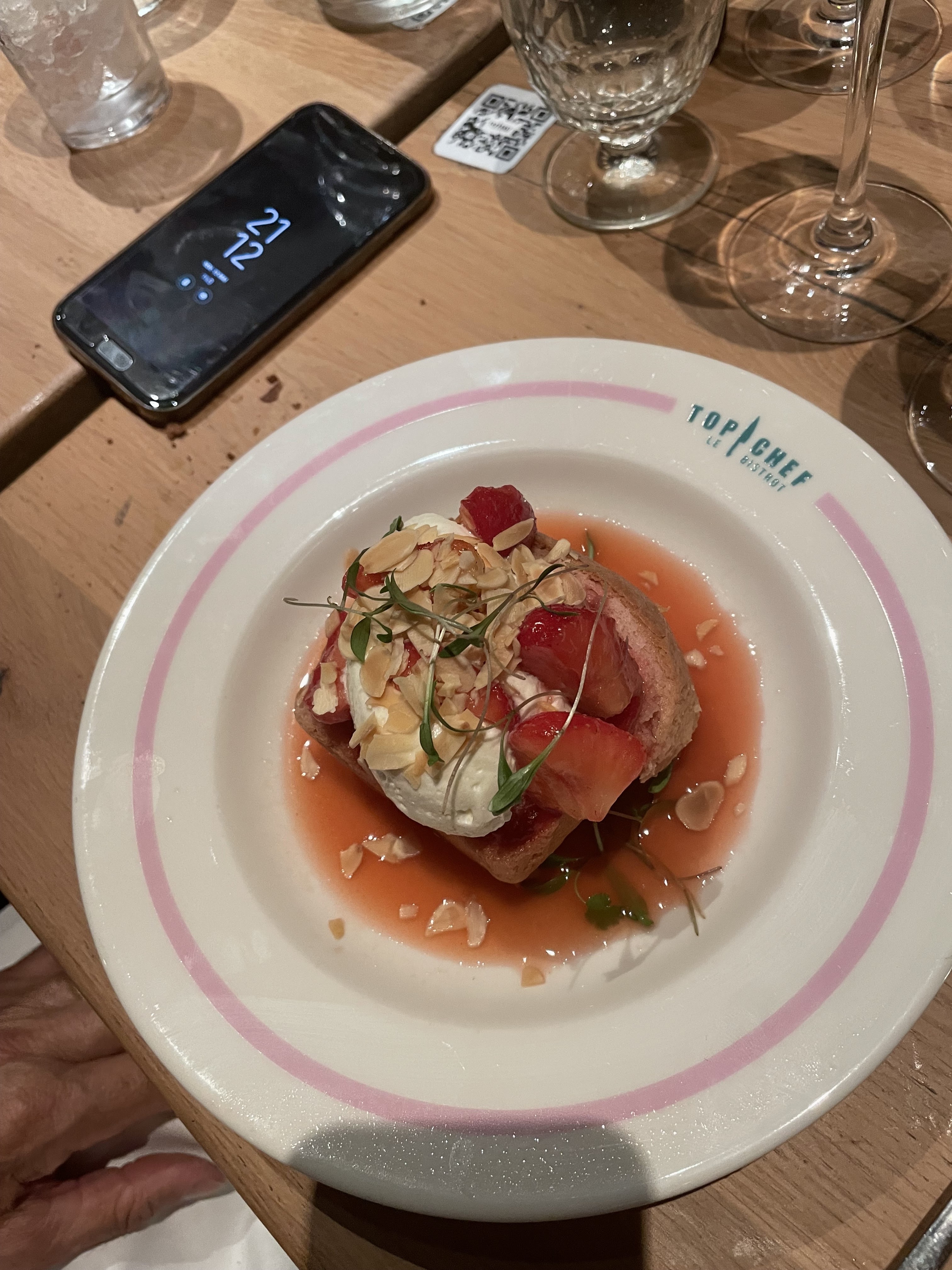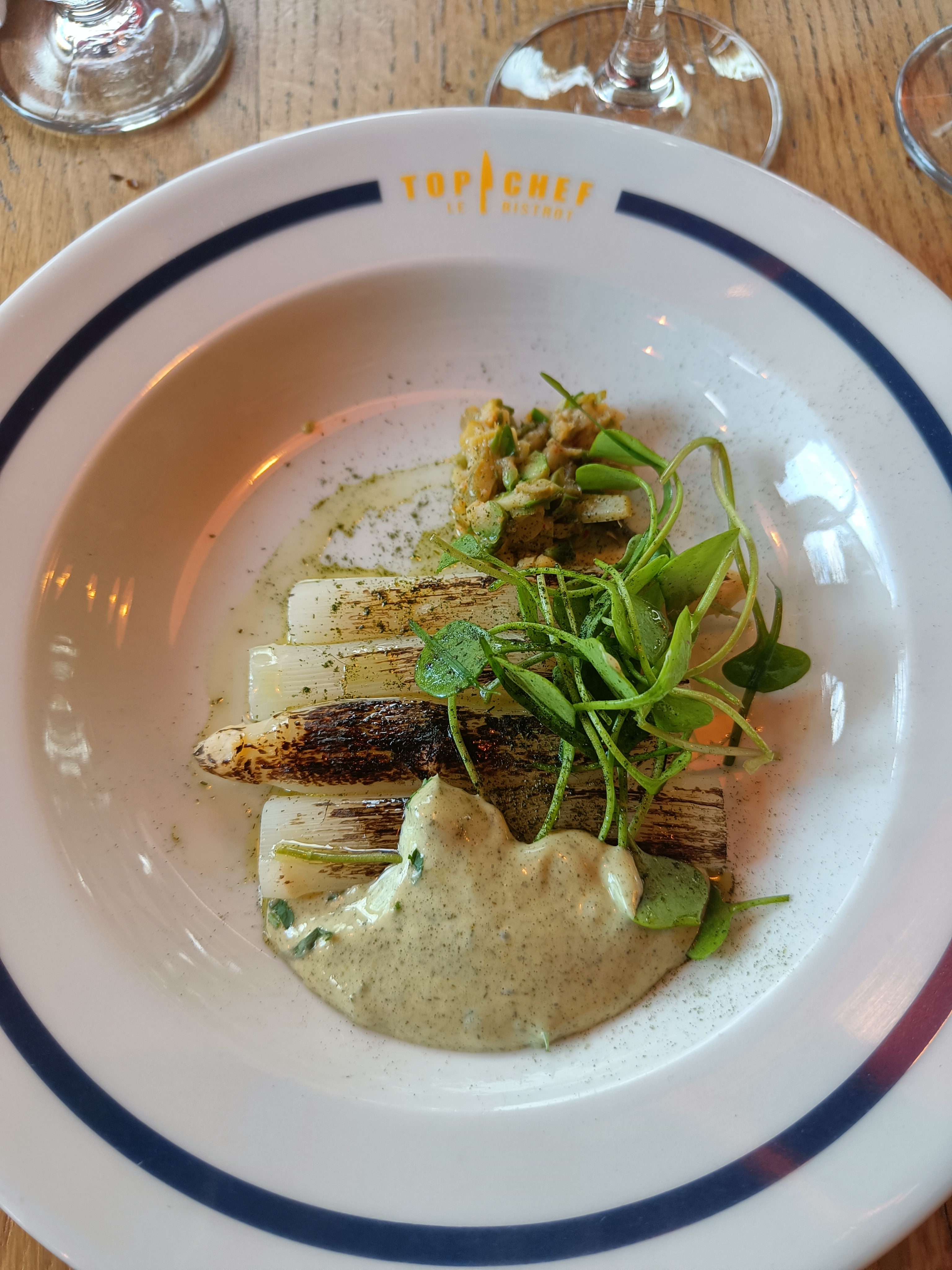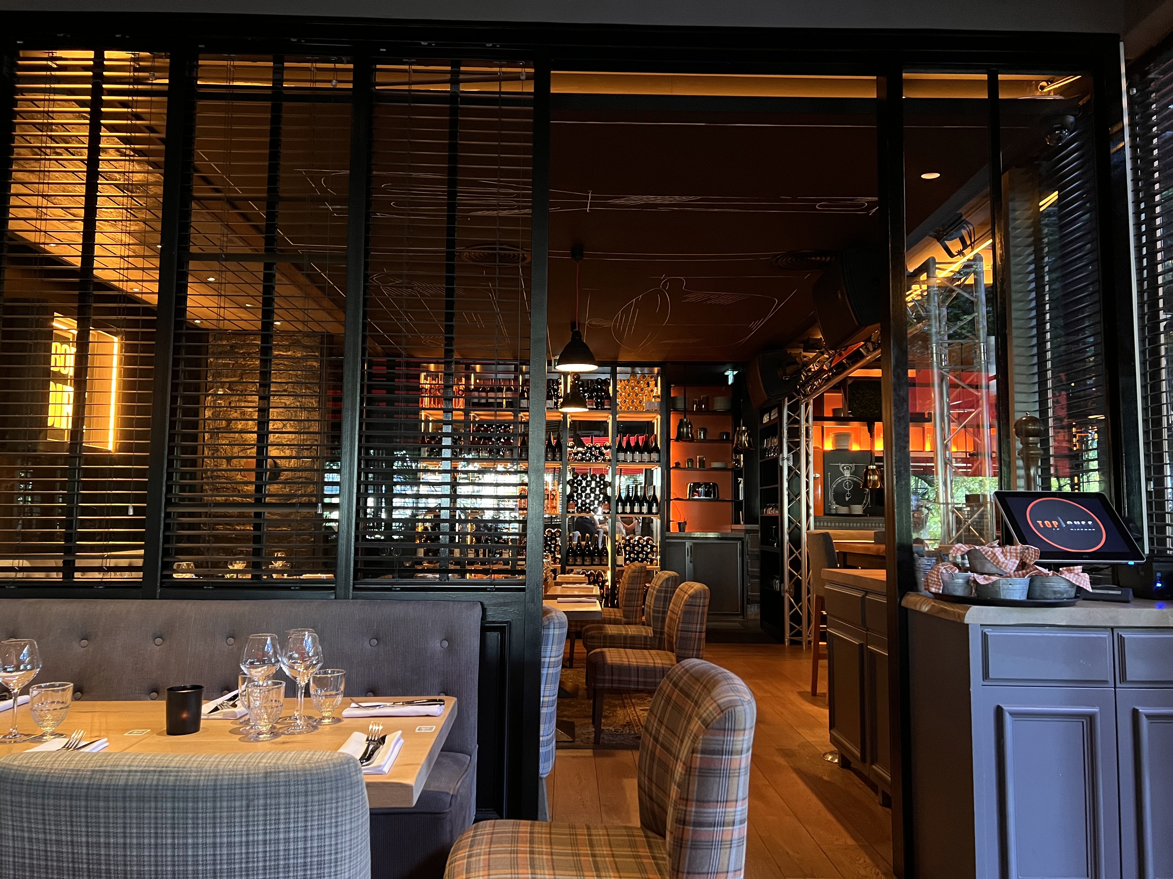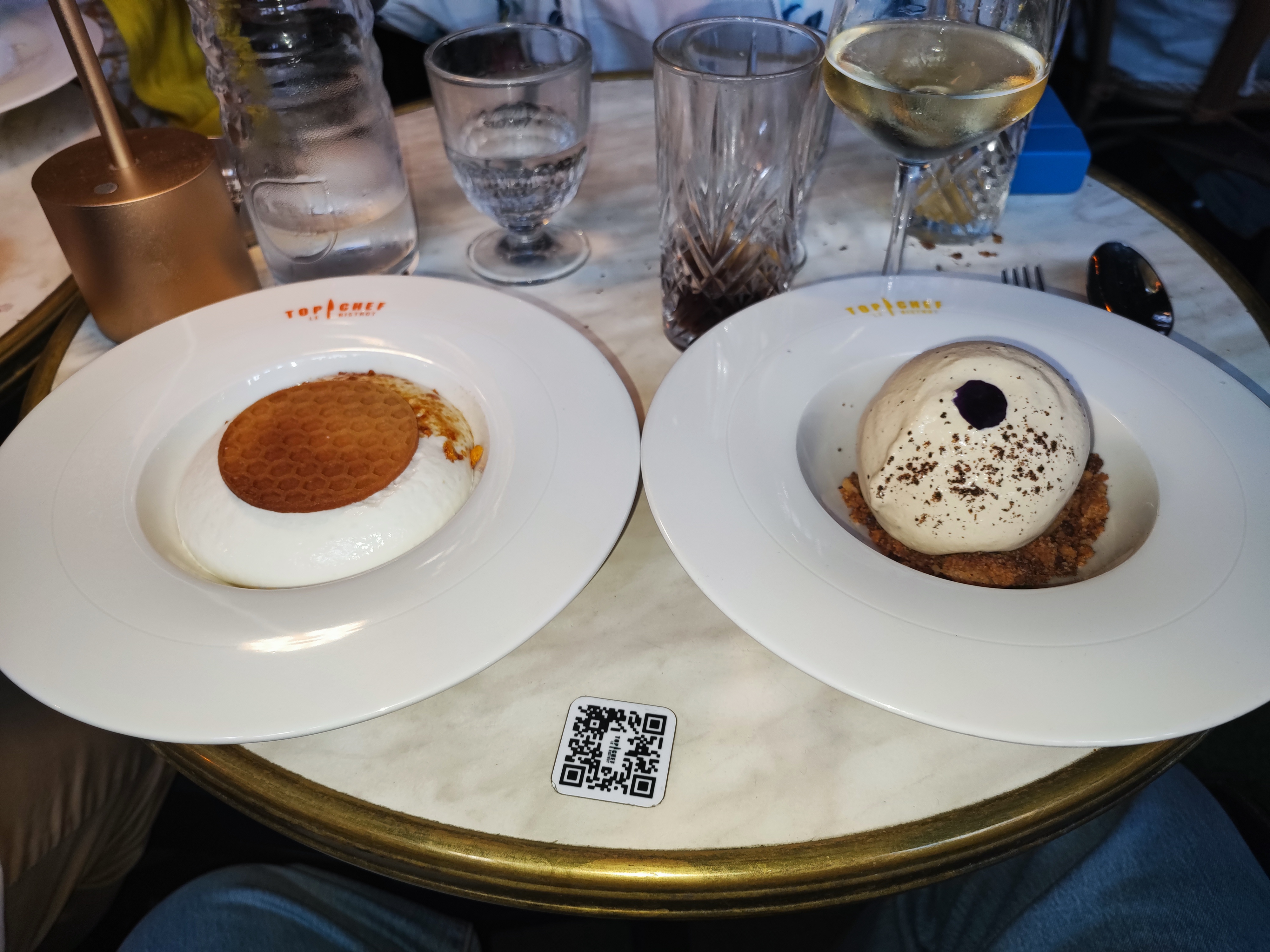 Top chef nous fait découvrir les plats confectionnés par les candidats talentueux de la célèbre émission de télé de M6. Un lieu avec une décoration soignée et elegante. Service excellent et attentionné. Même les toilettes se visitent avec la multitude de savons parfumés. Un de nos plats etait un peu plus salé qu’a l’habitude, on nous a offert une coupe de champagne pour s’excuser, merci a Ruben et Stéphane …. Du jamais vu….. bravo le service
