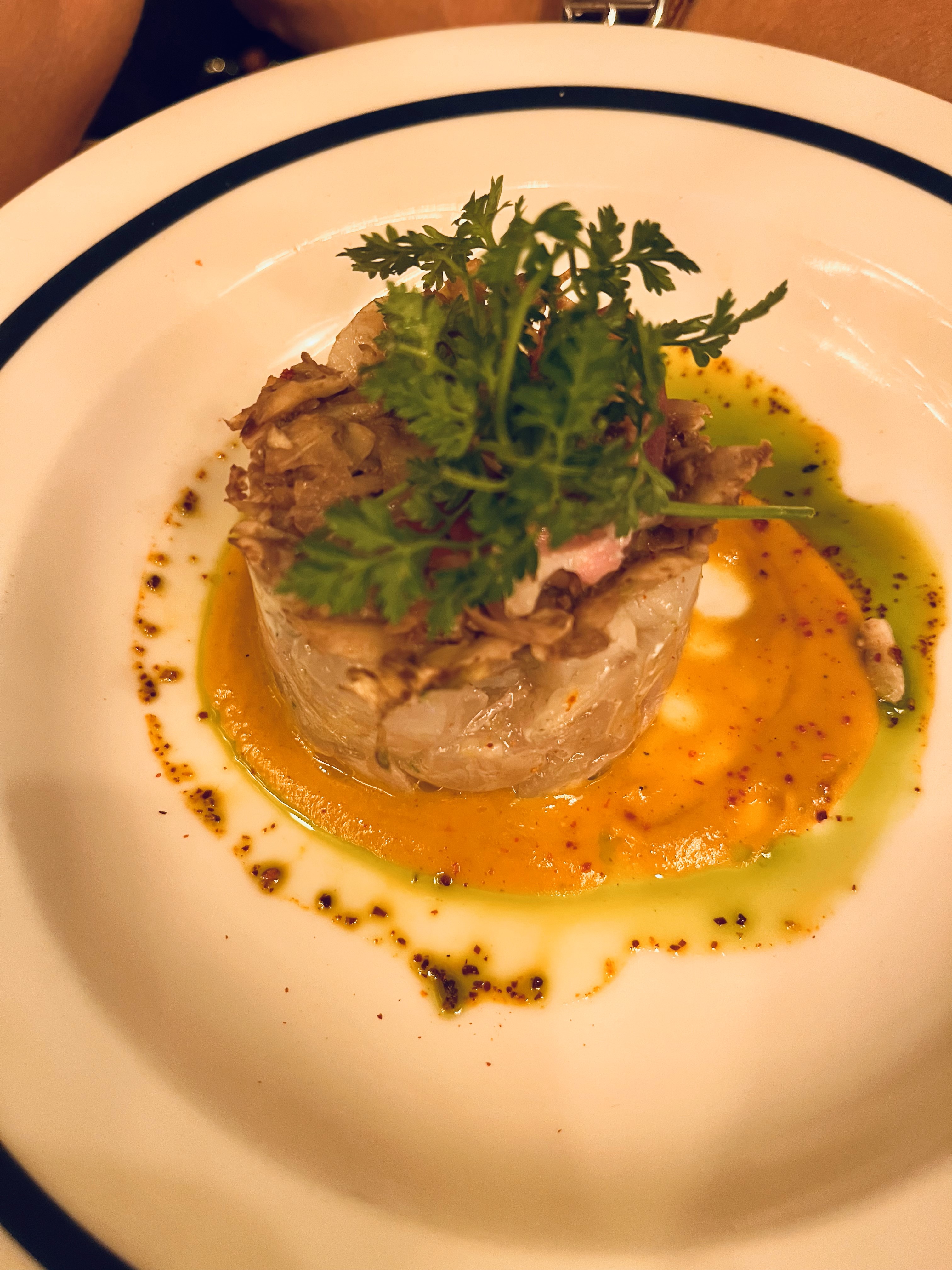 J’enlève une étoile pour le temps passé à attendre entre chaque plat… Les entrées étaient aussi bonnes que le cadre était joli. Une bonne expérience dans l’ensemble. Gros bémol pour la localisation mais on ne peut pas vous en tenir rigueur.