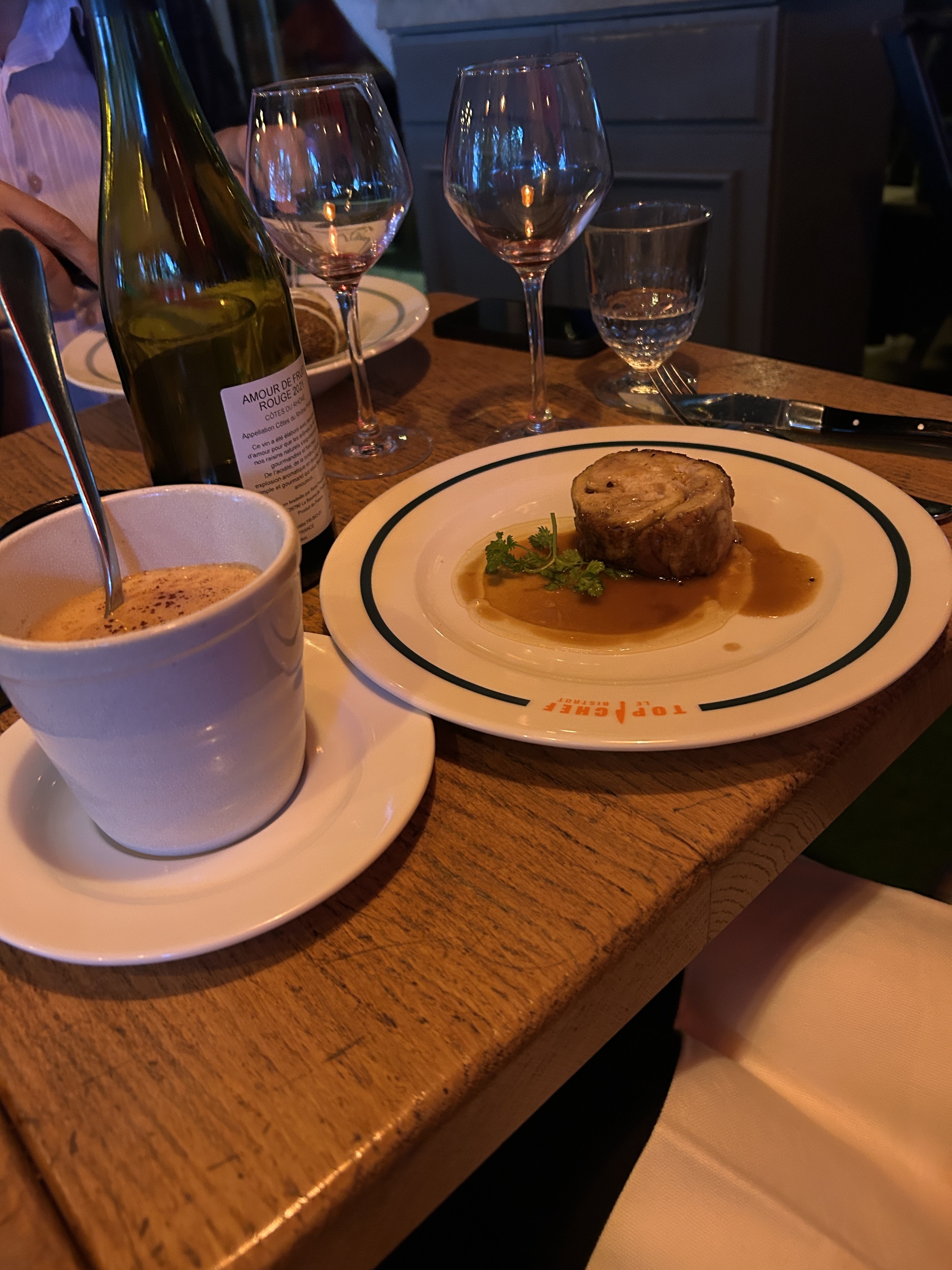 Super dîner lors de la soirée spéciale Top Chef avec Albane aux fourneaux. De l'entrée au dessert tout était parfait et l'accord mets et vins délicieux. Cadre et service au top