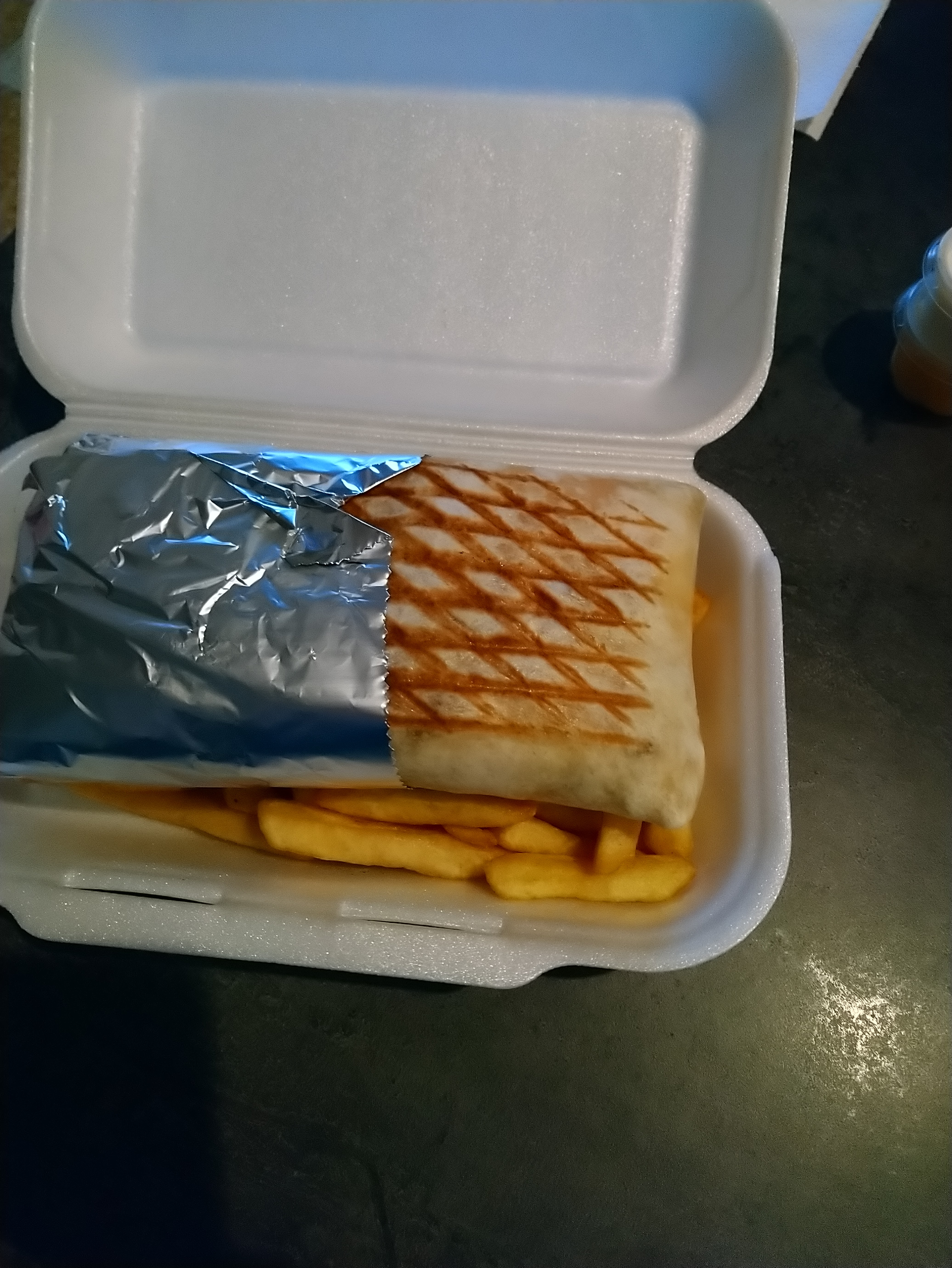 Très bons paninis et wraps au poulet. Le pain qu'ils utilisent est très bon. Exactement ce dont nous avions besoin après un long trajet en moto. Prix très raisonnables. Sert de la nourriture halal