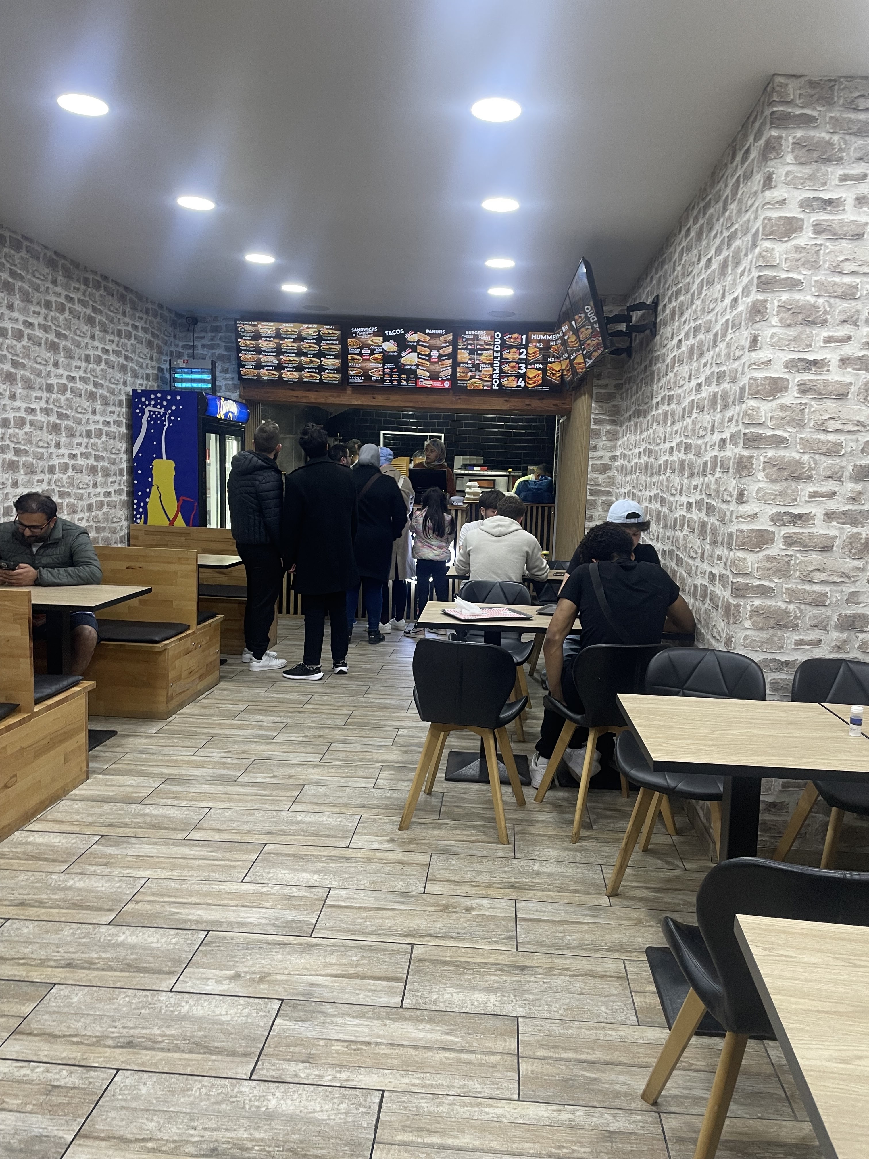 Les personnes qui nous ont servis étaient très accueillantes et ont discuté avec nous, le repas était copieux et j’ai même pas pu finir mon assiette par la même occasion je n’ai rien à dire sur le chiken burger à par le fait qu’il était délicieux et le menu pas cher. C’est toujours un 10/10 à chaque fois que je viens manger à ce tacos.