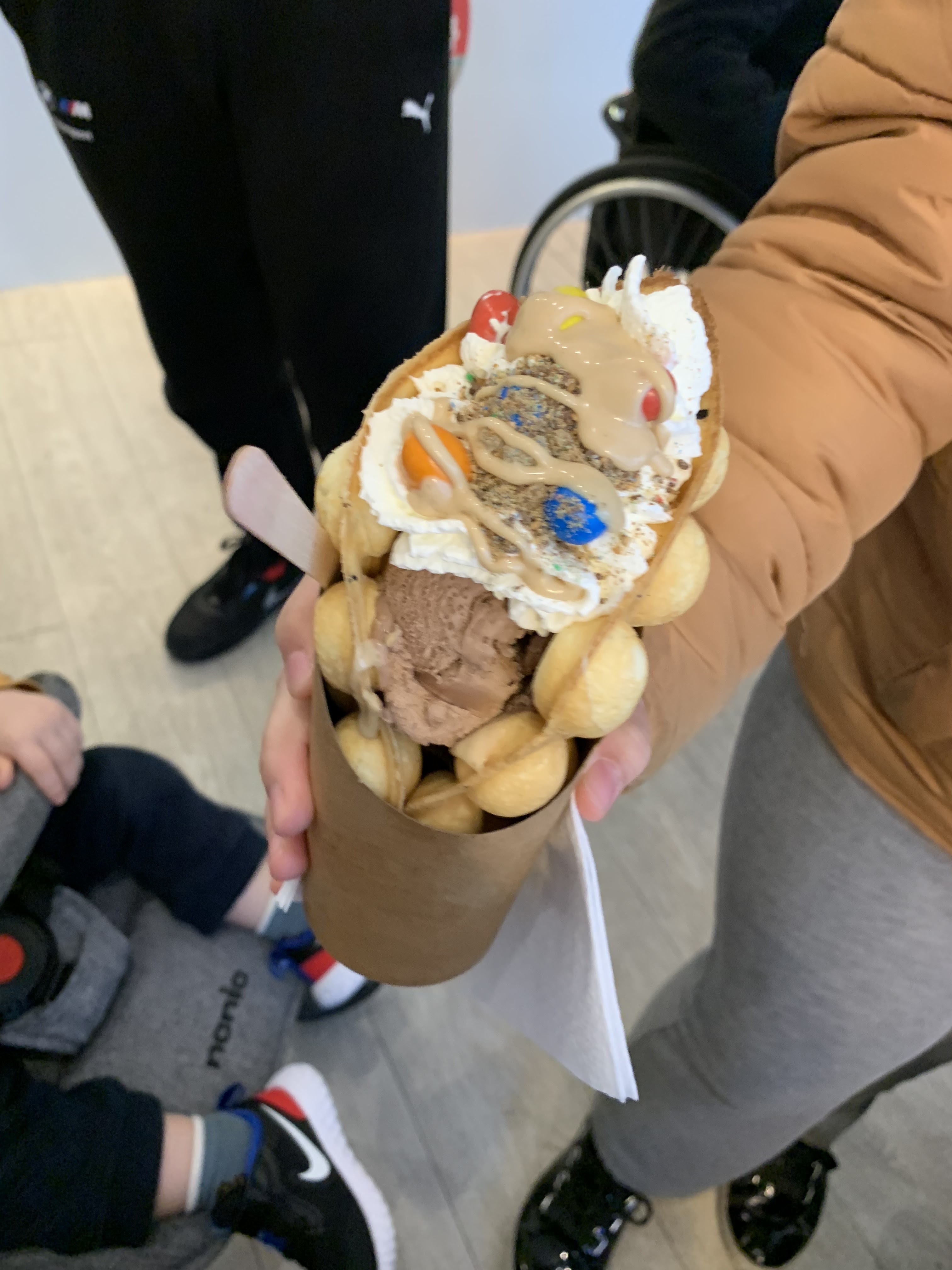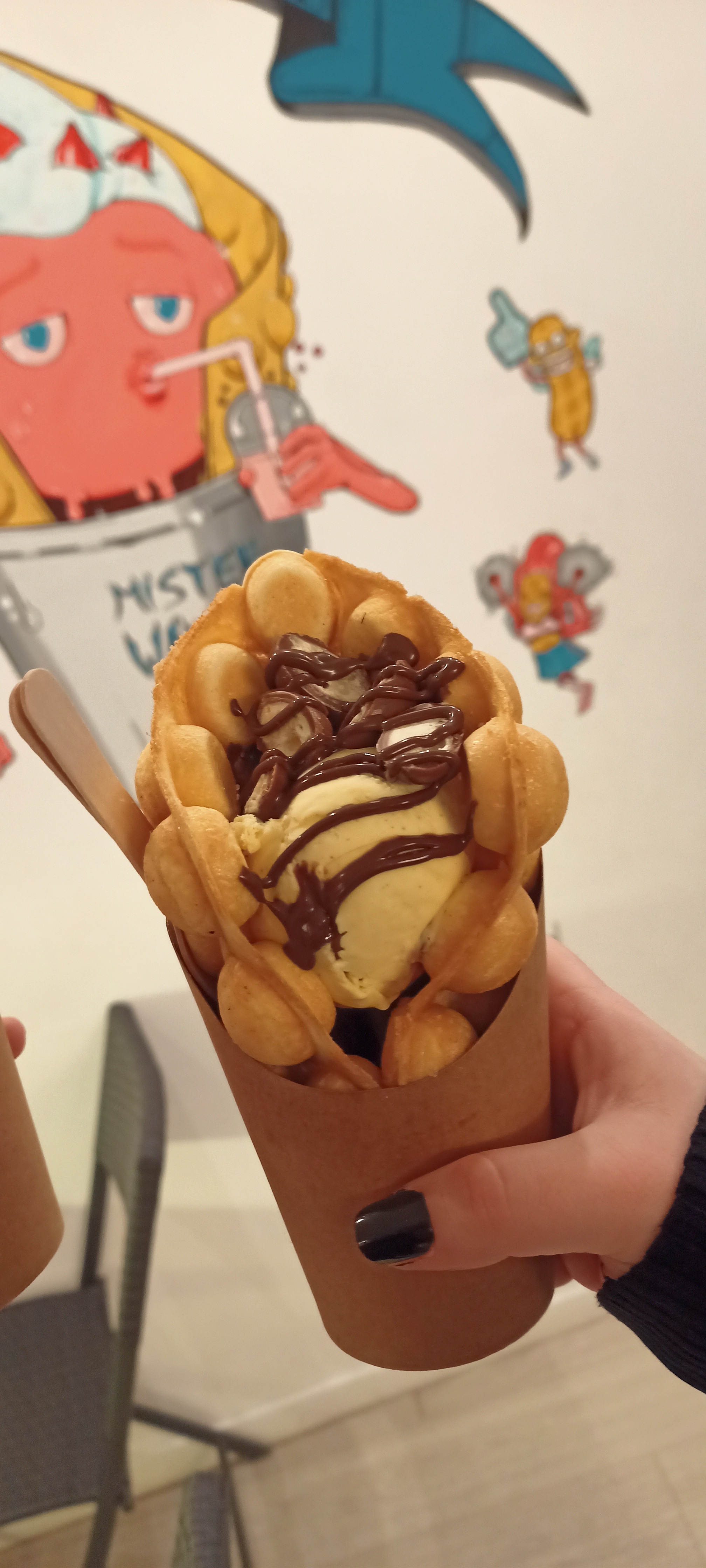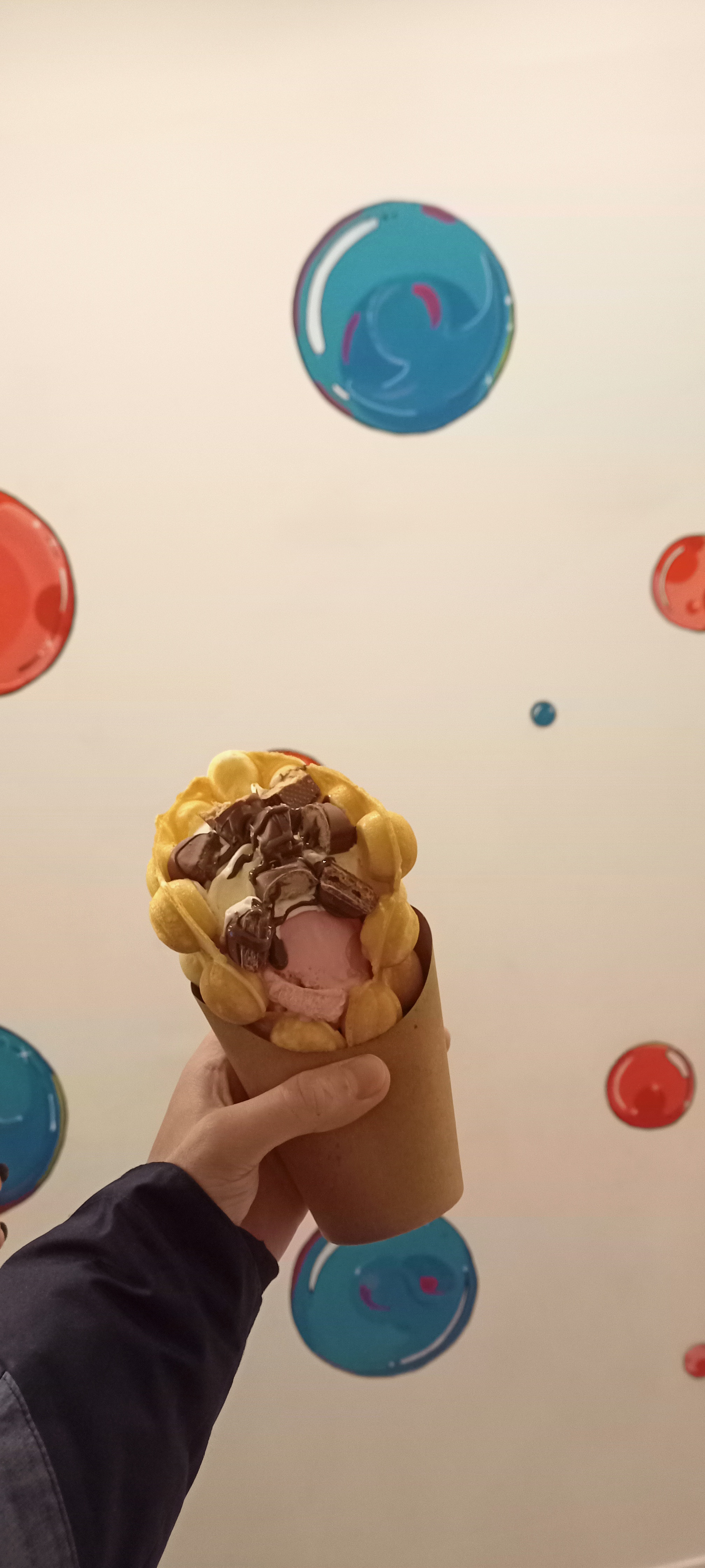 Nous avons tester pour la 1er fois avec mes amies les Bubble Waffle, et elle étaient incroyablement bonne ! Les produits sont frais et de qualités, contrairement a ce que je pensais la gaufre est très légère donc non bourratif. Personnel accueillant, serviable gentille et à l'écoute, je recommande a 100 %