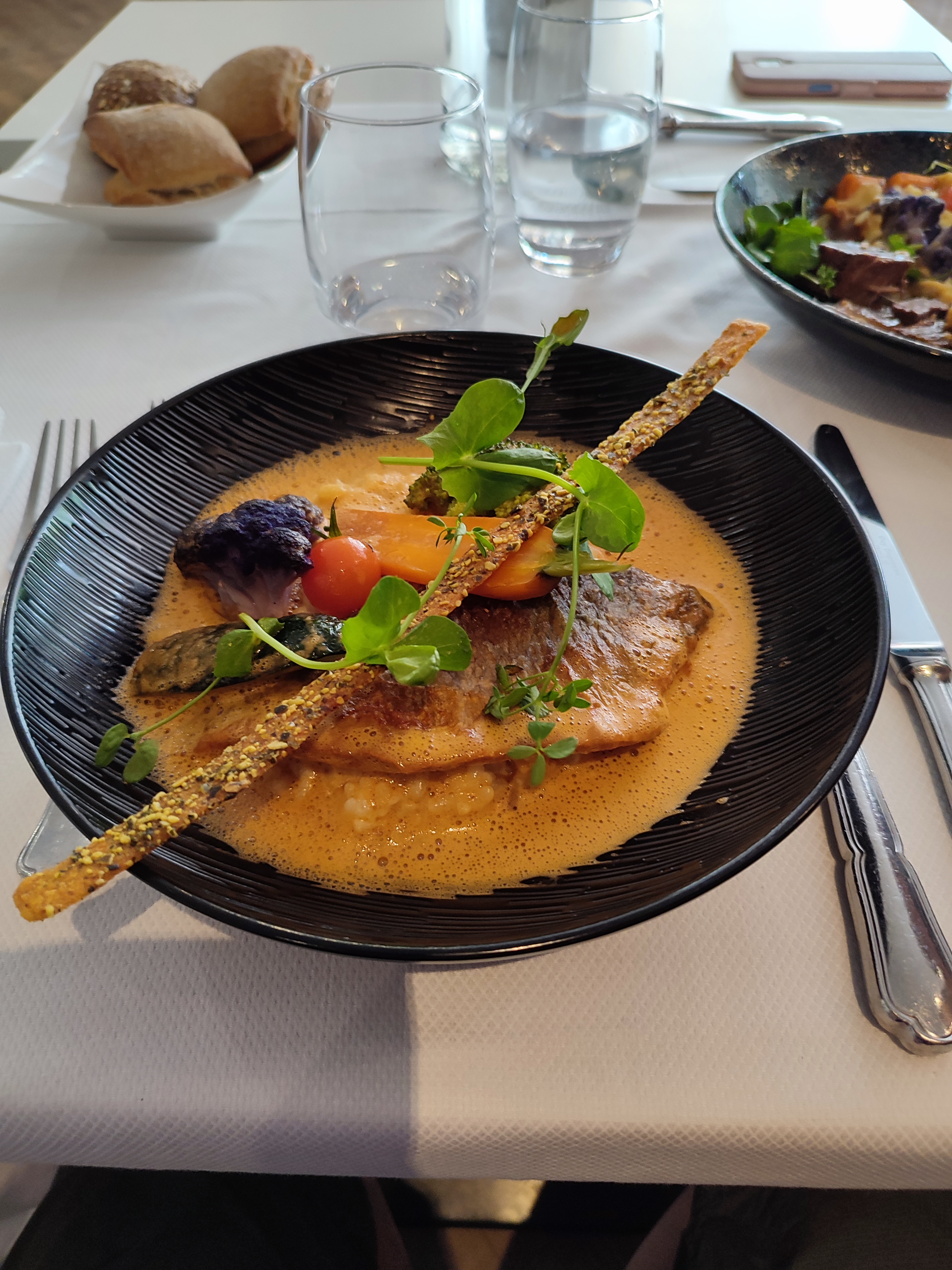 Très beau restaurant à la déco soignée, une partie brasserie et une partie gastro. Menu végétarien sur simple demande, très bon. Service avec le sourire. Petite déception mon plat était un peu trop salé et j'ai eu un peu froid. Mais je reste très contente de mon repas, superbe adressse.