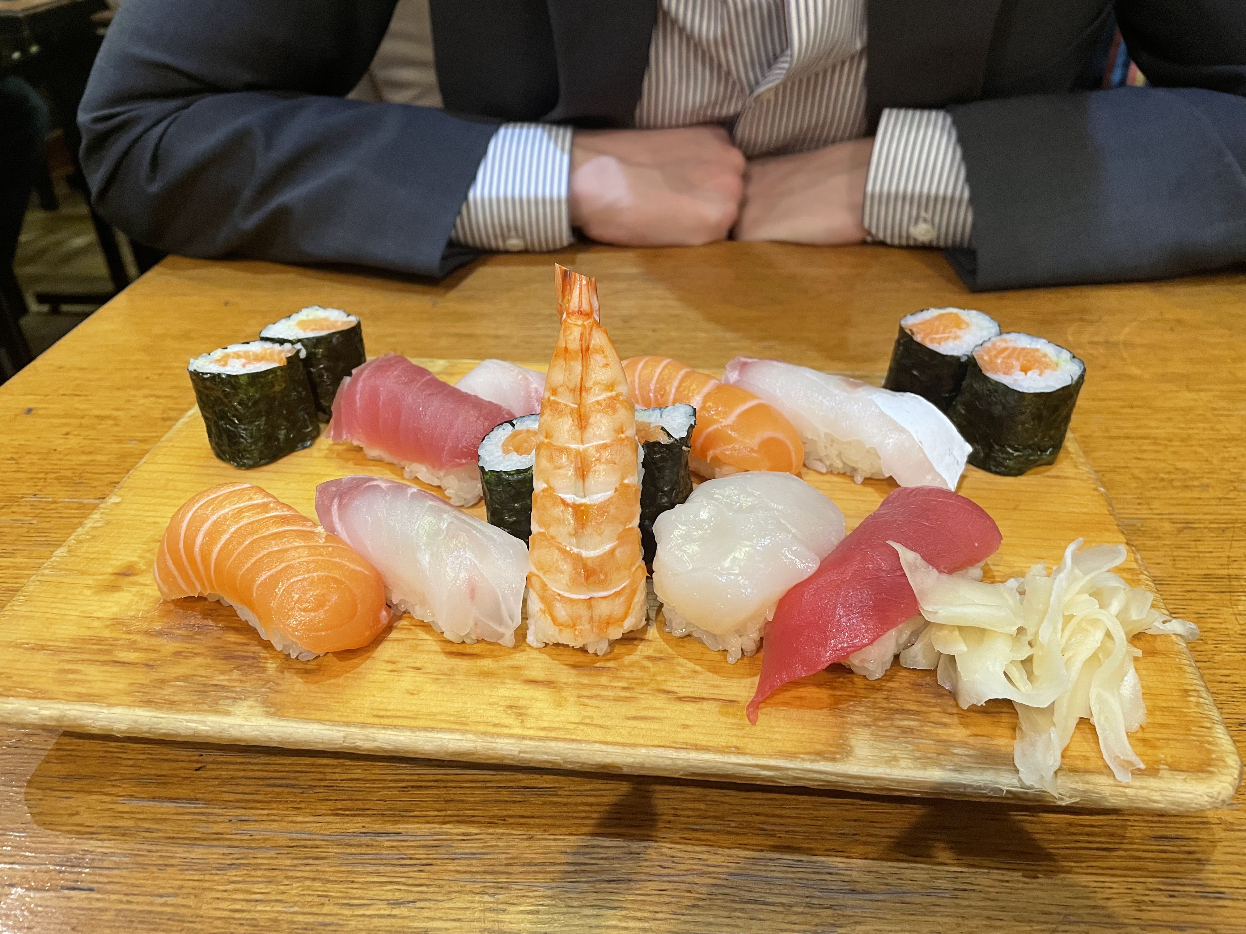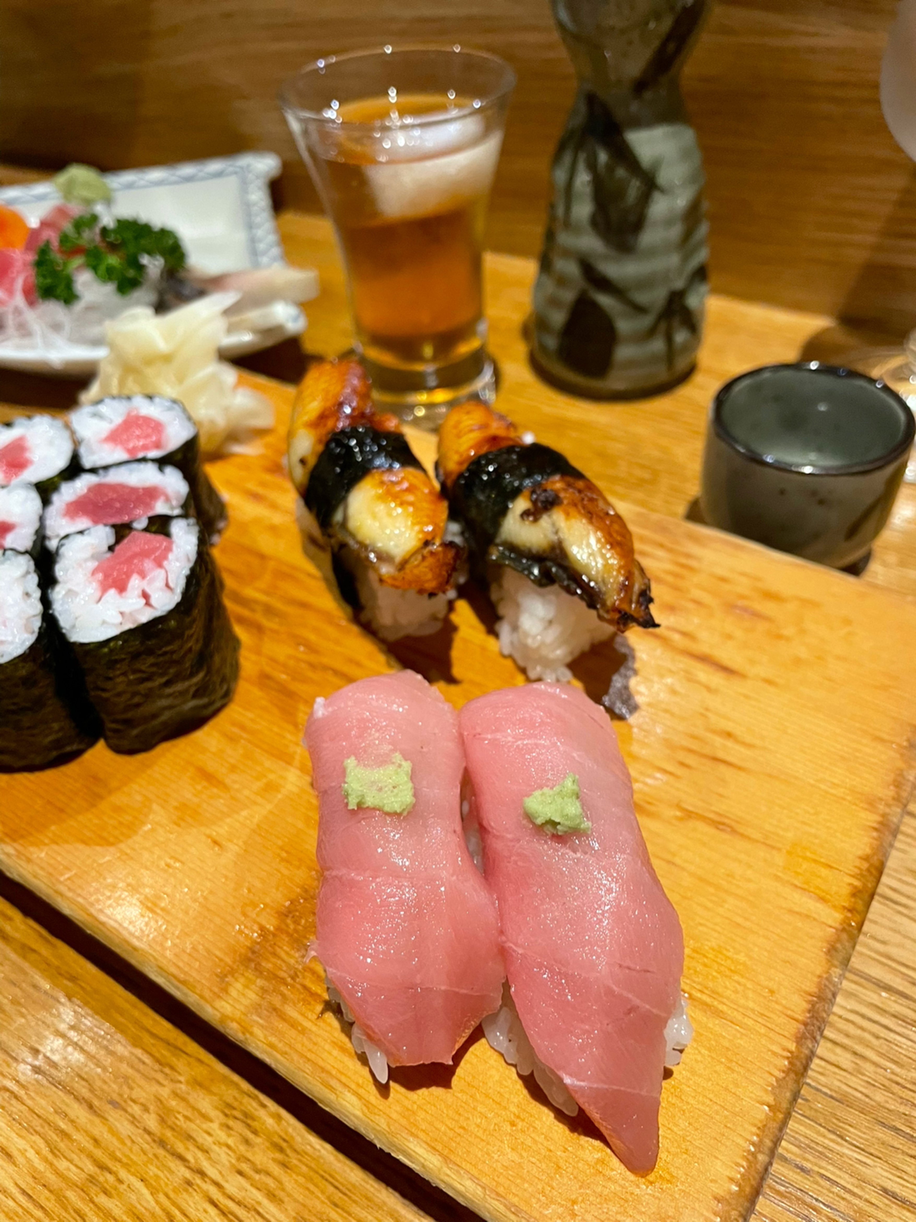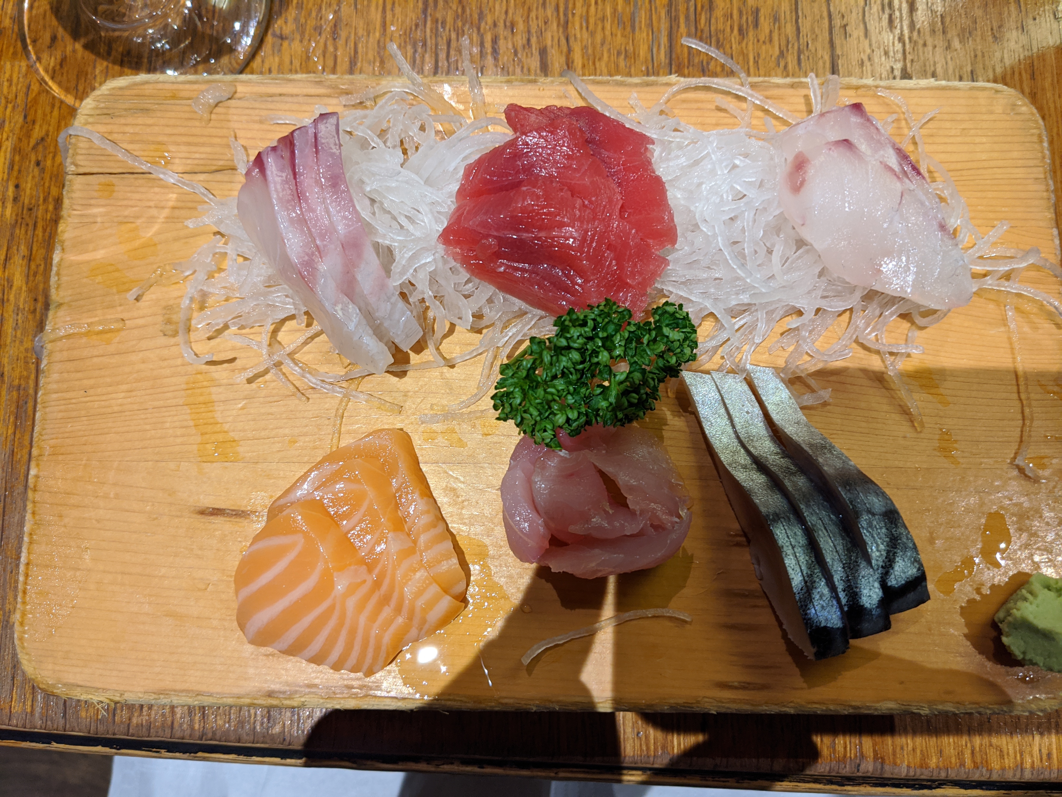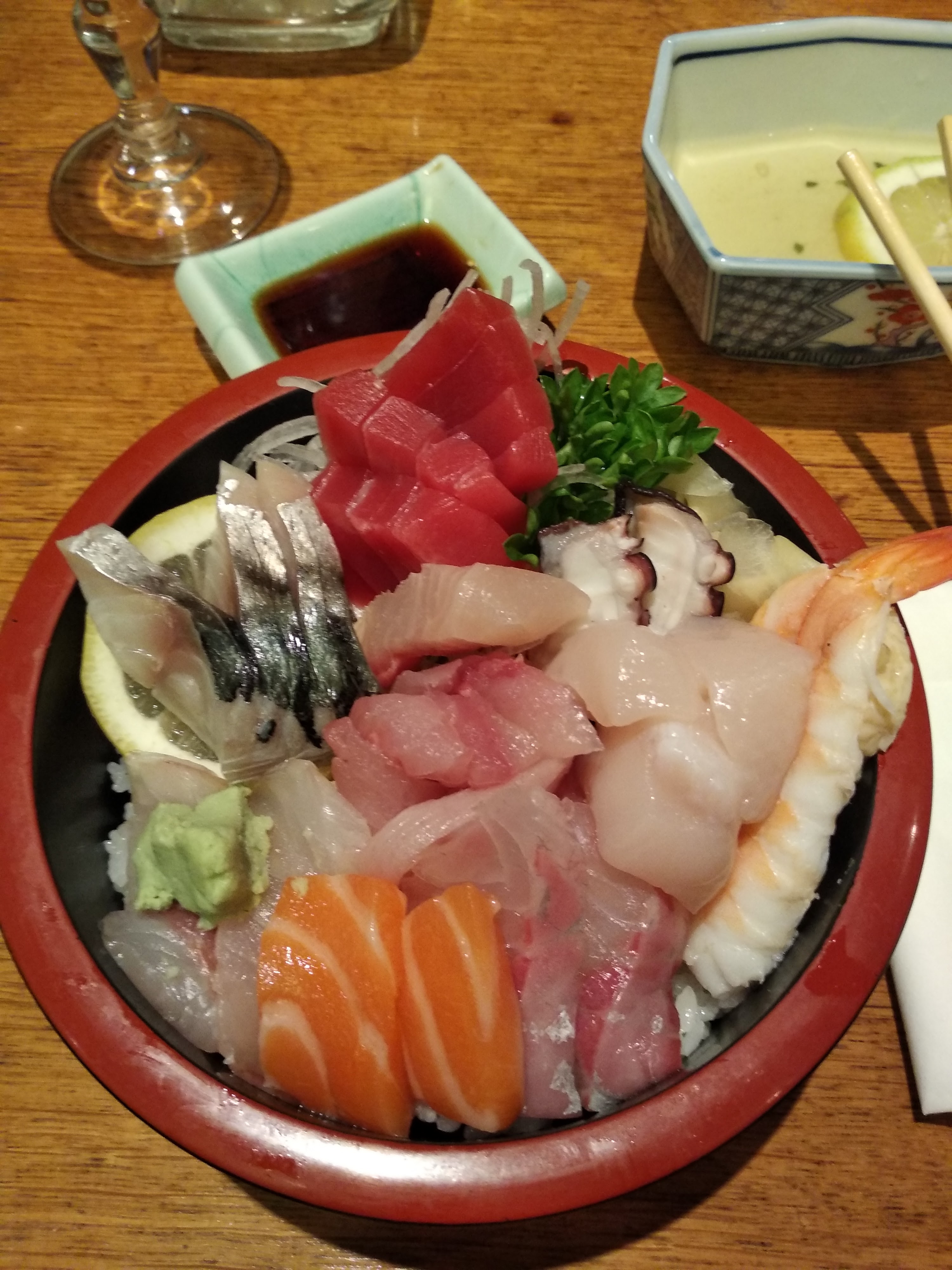 Poissons extrêmement frais, ingrédients de qualité, une ambiance authentique surtout lorsqu'on mange face aux maîtres qui préparent les poissons. Je me suis régalée, jusqu'au dessert avec une salade de fruits à la japonaise, contenant des haricots azuki, de la gelée d'agar agar et un très bon sirop maison. Je recommande et j'y retournerai les yeux fermés.