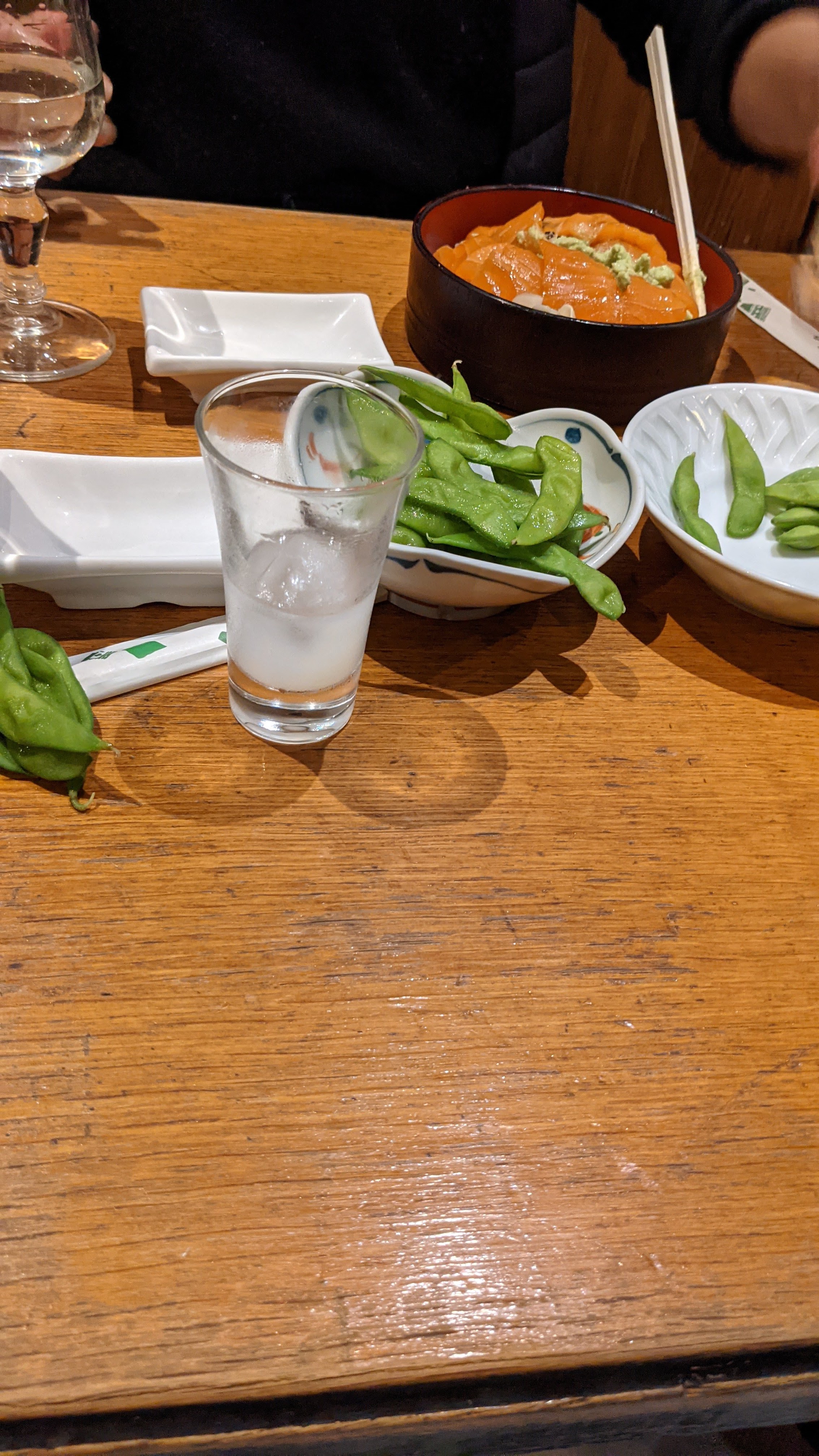 Meilleur repas en France cette fois-ci (à égalité avec nos vietnamiens préférés) - les plus petits morceaux de sashimi que j'ai vus mais les plus délicieux compensés pour cela - du poulet yakitori, des cailles et du porc améliorés avec la sauce soja sucrée fournie et un saupoudrage de type piment rouge et délicieux la serveuse de Tottori a fait ma journée.