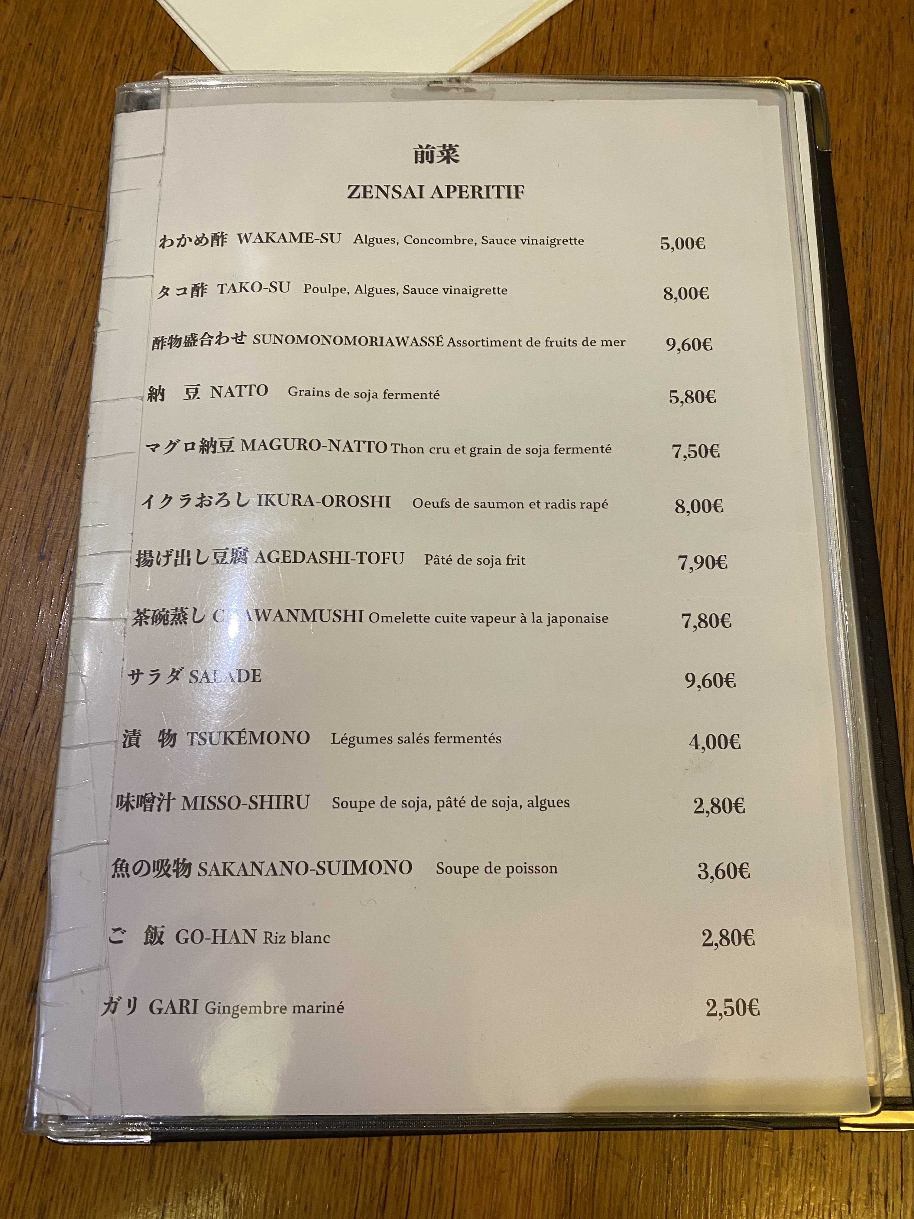 J'ai passé une excellente nuit ici. J'adore le saké, la soupe, les sushis et l'usura grillé. Cependant, ne parlant ni français ni japonais, cela m'a apporté un petit désagrément. Je ne me plains pas mais je décris, ne vous méprenez pas. La soupe serait mon point culminant pour les champignons shiitake, en comparaison avec l'autre restaurant de sushi à proximité. Le goût et l'arôme de la soupe sont irrésistibles. En parlant de l'assiette de sushi, les pétoncles et les crevettes sont les plus étonnantes. Savourer chaque morceau avec une tranche de gingembre entre rafraîchir et rendre chacun d'eux distinctif. Il s'agit d'un ensemble comprenant du vin de riz, de la soupe et des sushis pour une expérience inoubliable. Fortement recommandé et personne ne veut le manquer.
