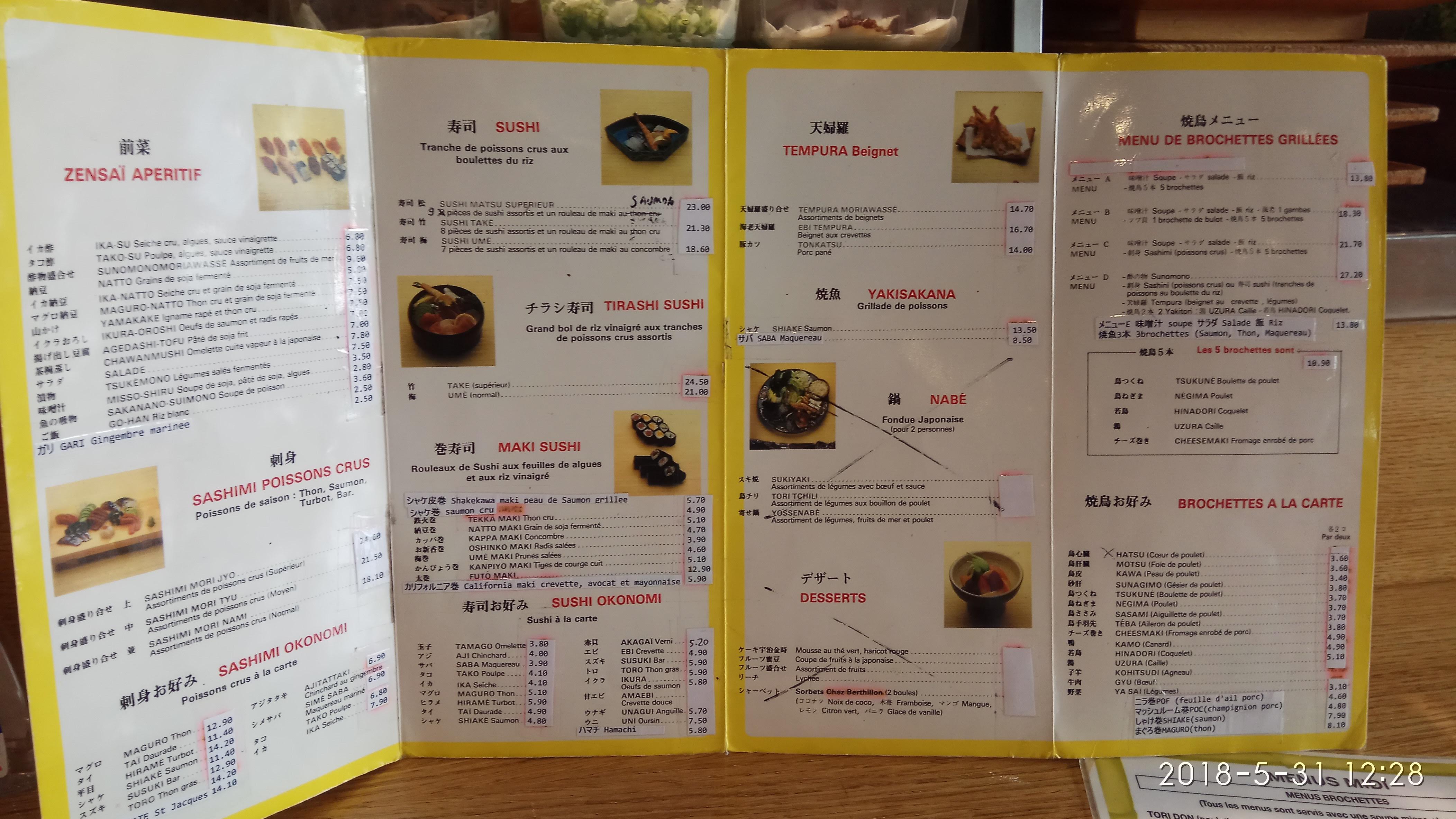 Excellent restaurant japonais bien loin des restaurants avec des menu A1, B6 ou M2 !