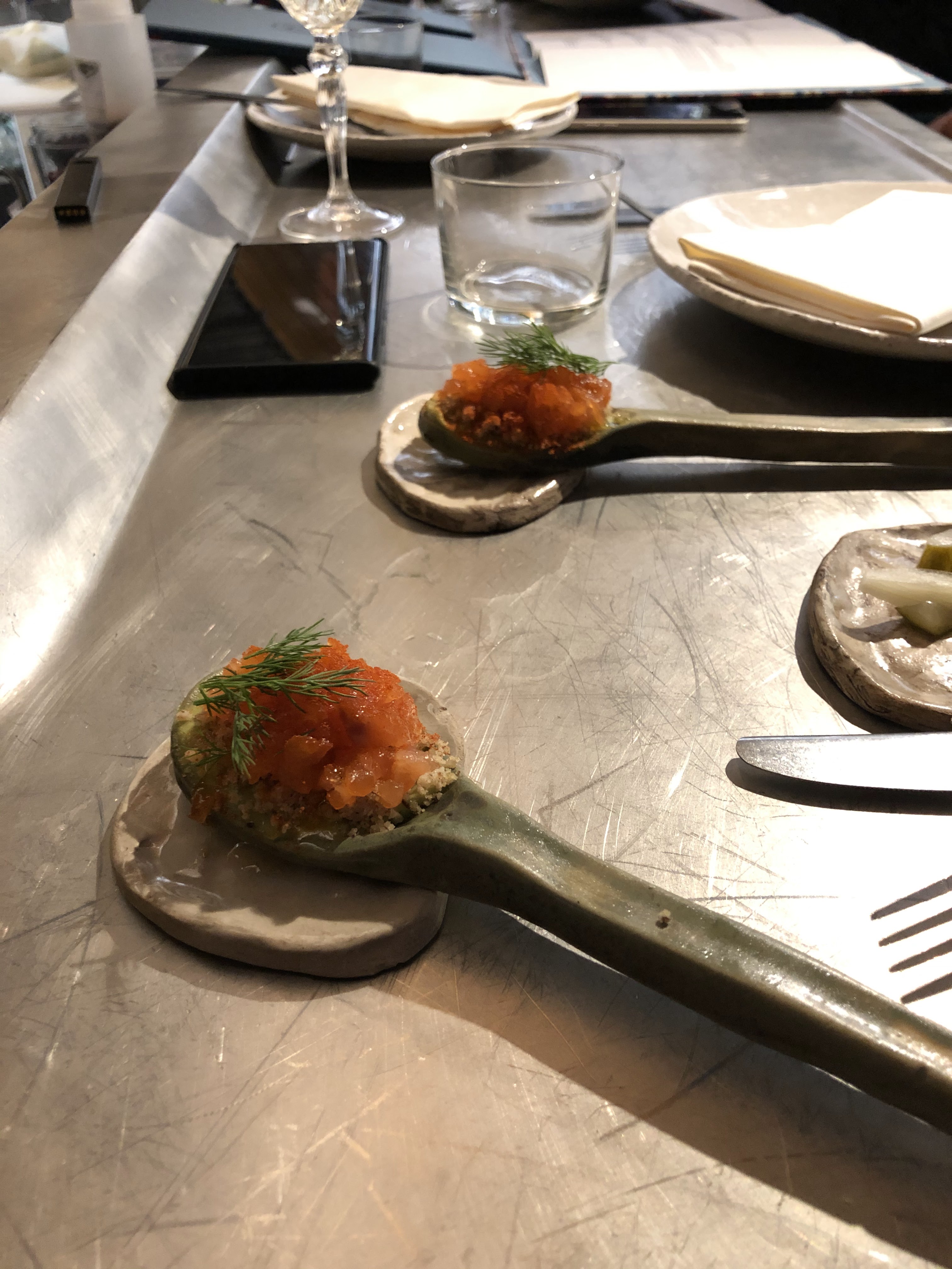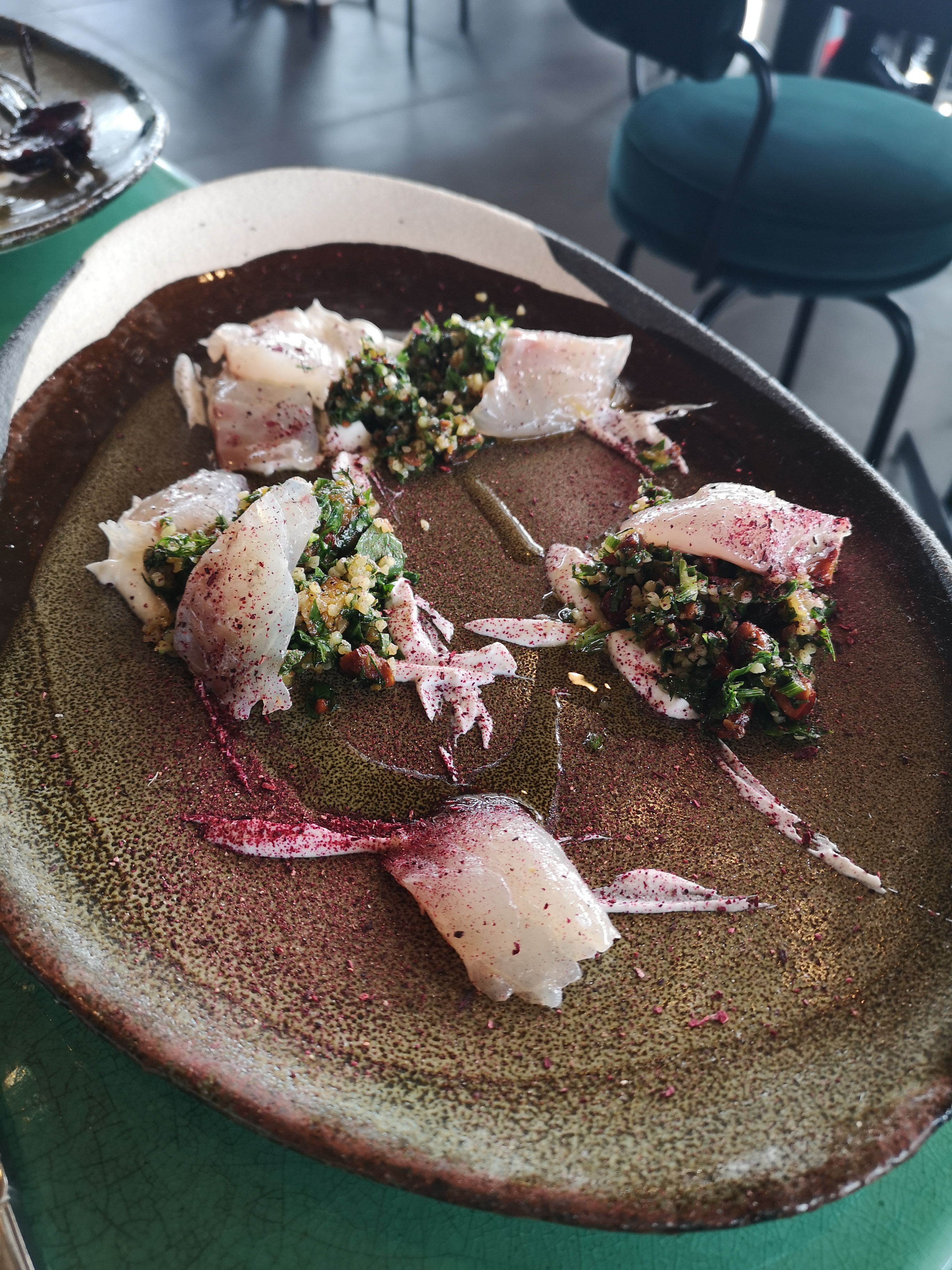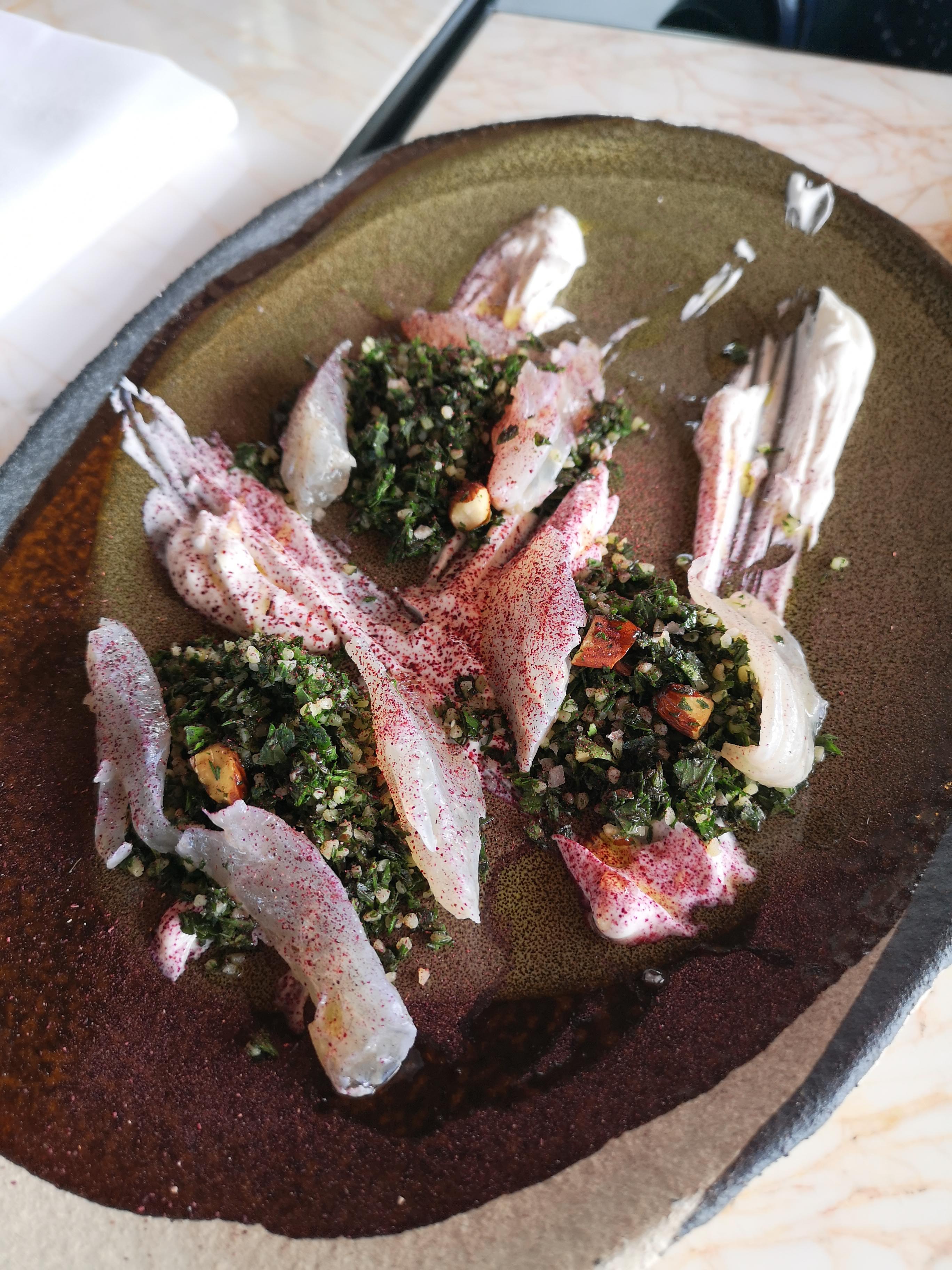 D'abord le staff est magnifique ! Chaleureux, souriants, accueillants et drôles ! ... rien que pour cela un très bon moment ! Et puis les plats ... compliqué de tout expliqué, nous avons pris 5 / 6 plats a partagés et les gouts sont super recherchés et fins ! Du Miso, du sumac, du zaatar, du café etc etc ... le poisson se decline en tellement de belles choses ! Bref ! Un top lieu avec une délicatesse qui vaut les prix affichés !