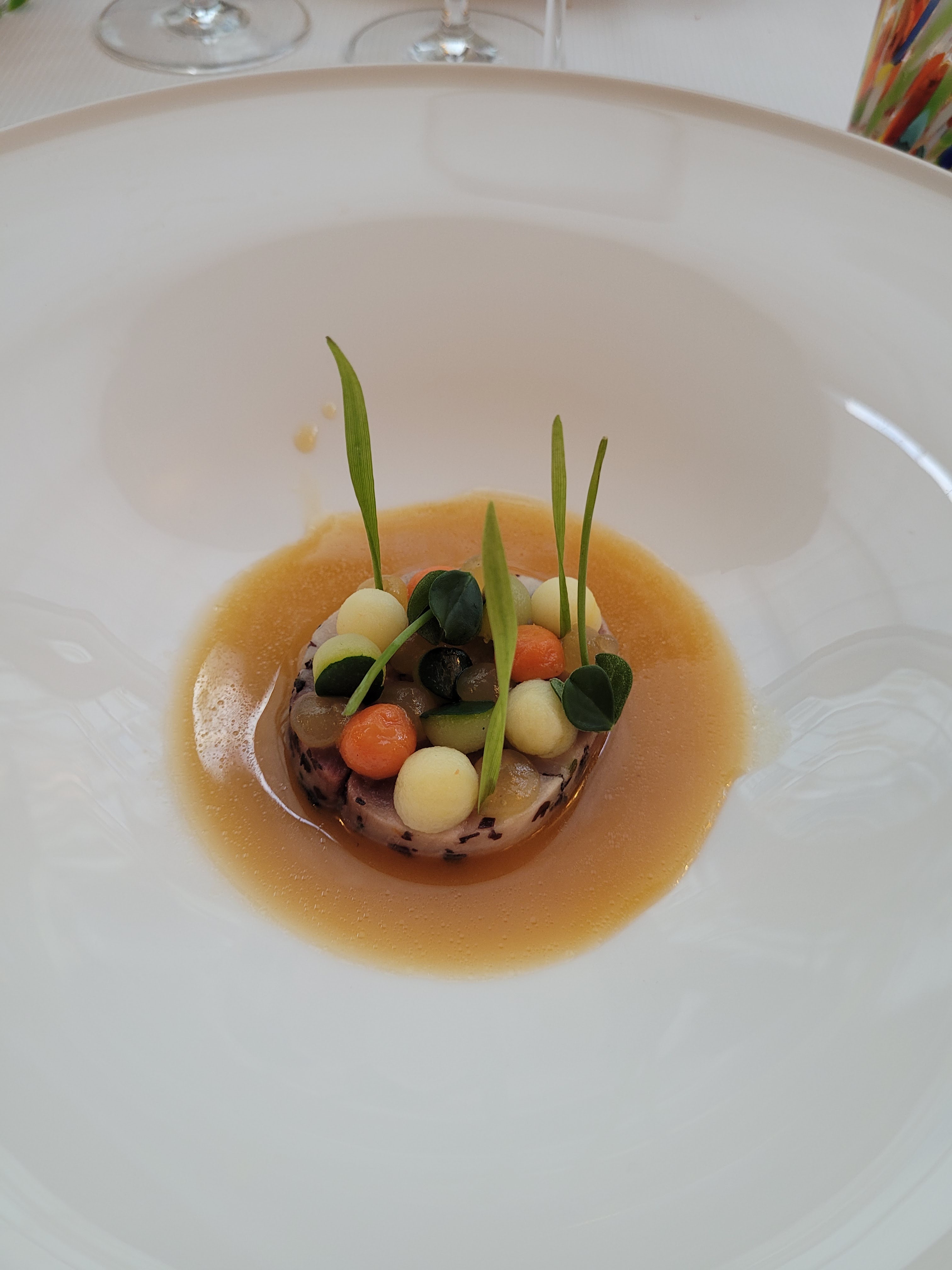 Un sincère merci pour ce dîner de haute voltige placé à la fois sous une cuisine d’auteur et un collectif en salle qui fonctionne très bien. Le cadre est agréable et chaleureux, des petits détails par ci par là nous ramène dans une forme d’enfance à l’italienne et le bal ouvert des assiettes et des saveurs nous font voyager immédiatement en Italie. La dégustation du mischiato de pasta était le sommet de cette soirée pour moi : un plat époustouflant en terme d’intensité aromatique et émotionnel. Bravo au chef, au très bon sommelier qui a officié en salle (excellent Nebbiolo recommandé) et au service jeune et volontaire. Une adresse qui place le label Relais & Châteaux dans l’excellence de la gastronomie transalpine! Grazie ancora per questo viaggio!