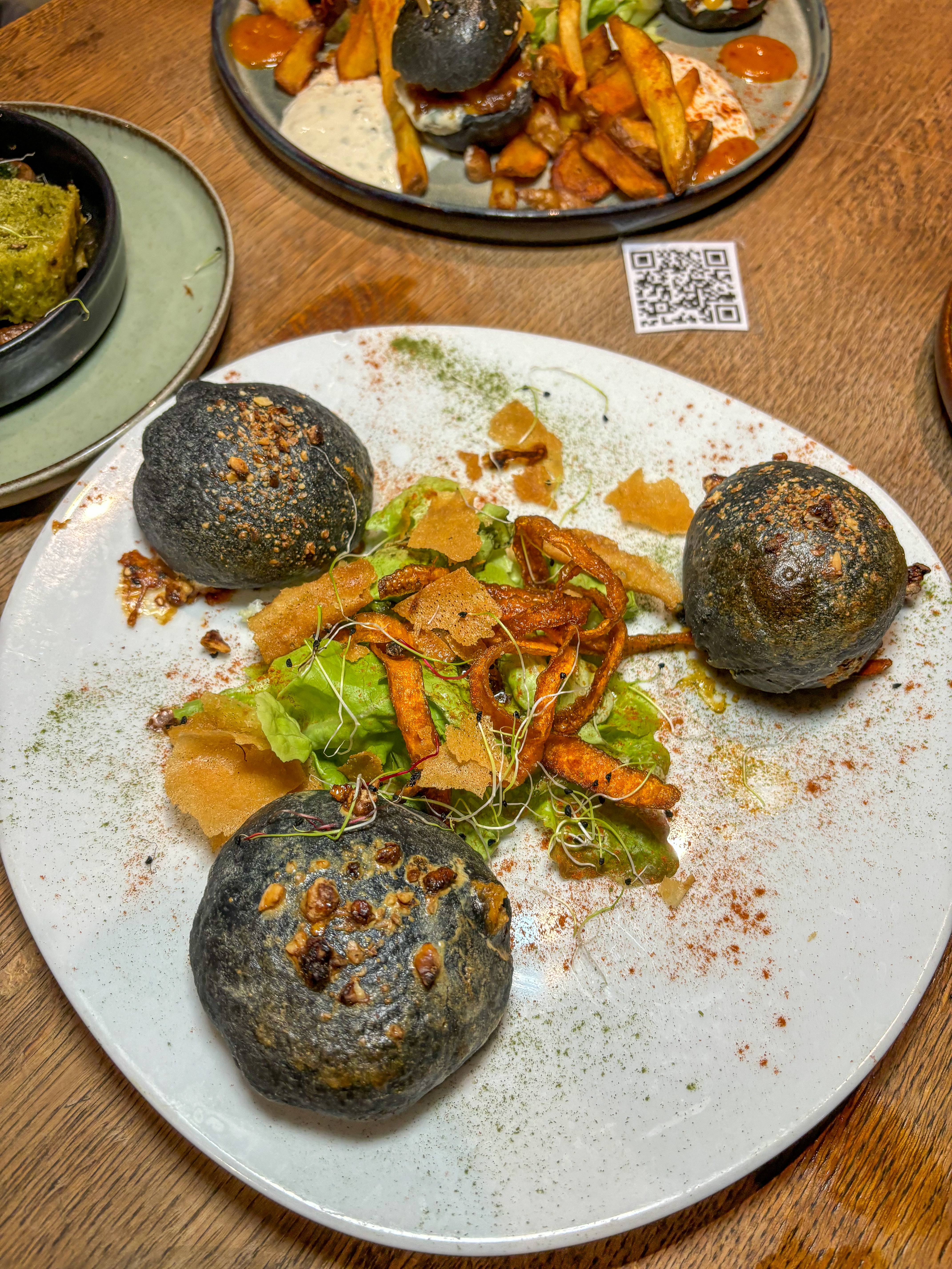 Très bon tapas dans l'ensemble même si j'aurais aimé des goûts plus marqués à certains moments, notamment les buns où on sentait beaucoup la fourme et très peu le poireau. J'ai trouvé les croquetas peu fournies à l intérieur. Dommage. Et la crème brûlée sésame noir, pour moi n'était pas assez puissante en goût, étant une fan de sésame noir. Sinon personnel très accueillant. C'était ma 2nde fois ici et j'aime le fait que tout peut être commandé en végétarien.