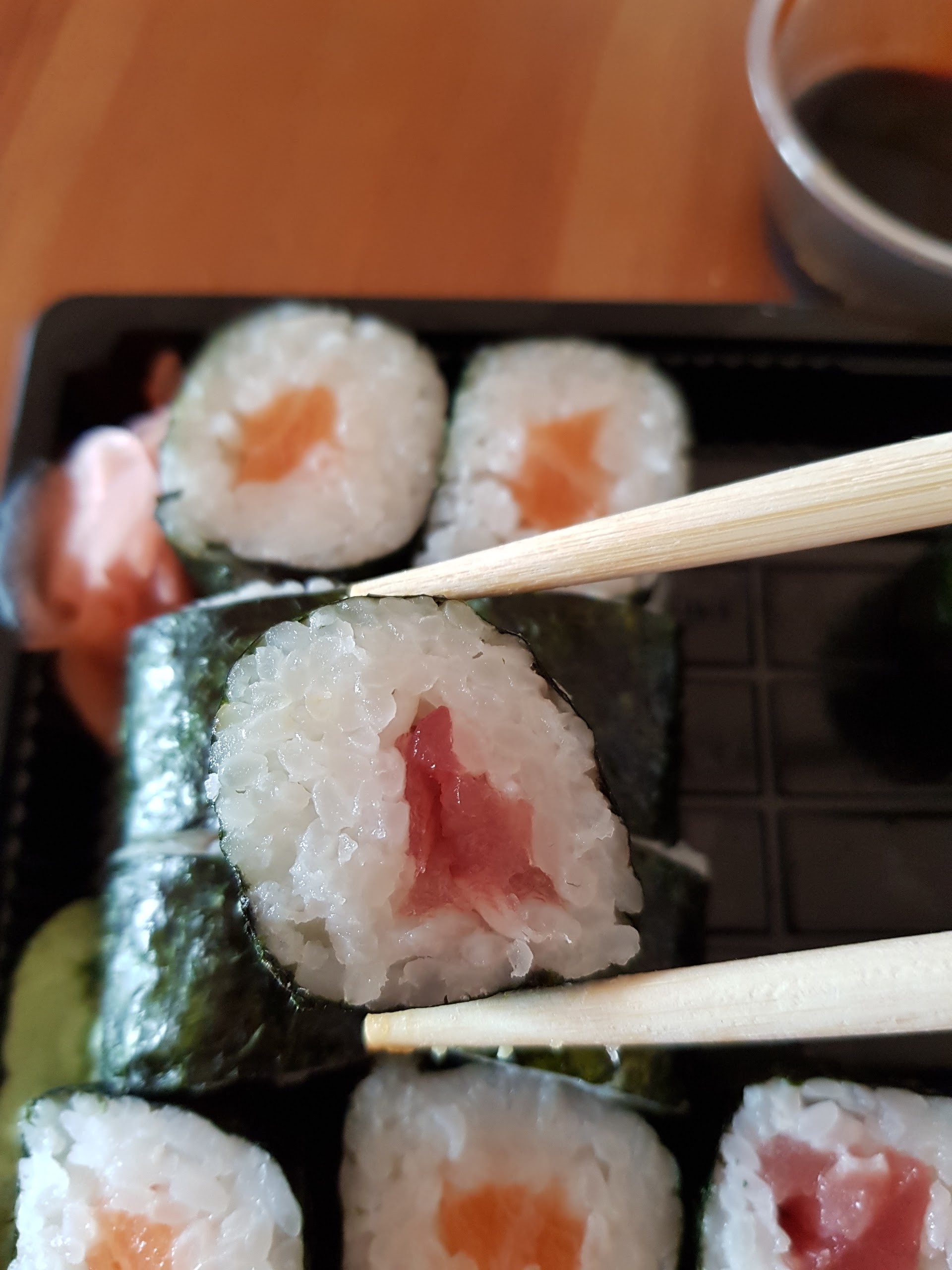 Nous étions un peu malades après, peut-être du poisson pas frais. Et ils essayaient aussi de changer notre commande, ils apportaient des sushis que nous n'avions pas demandés, sans nous remarquer, ou encore moins, car ils n'avaient pas ceux que nous avions demandés.