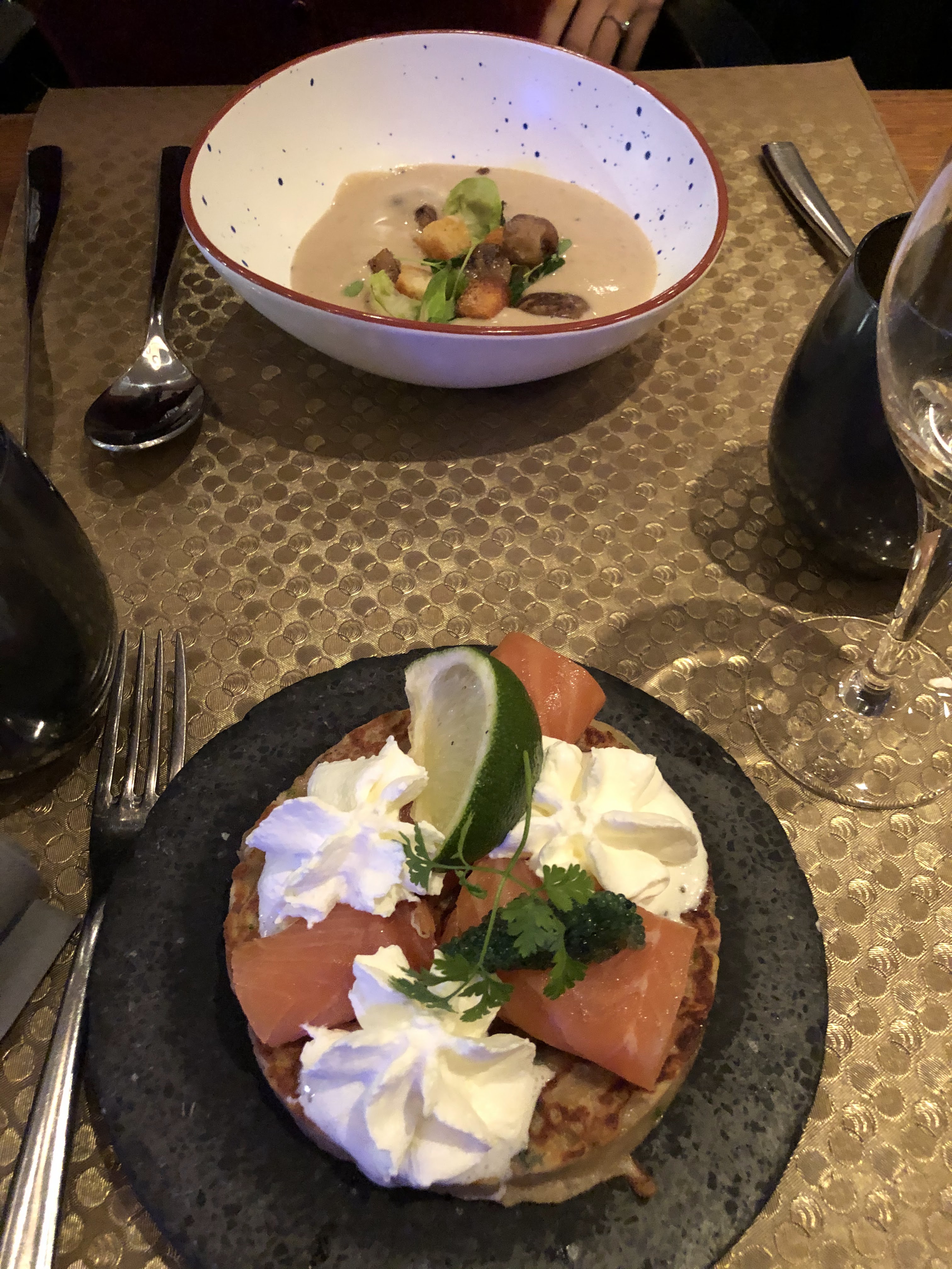 chanceux d’y avoir déjeuner ce midi avec un ami c’était parfait service impeccable discrétion, cuisine parfaite rien à dire restaurant que je recommanderais très facilement à des amis. Entrée du jour, recommandé par le chef, des cèpes et le plat des ravioles qui était aussi extraordinaire, mais je ne connais pas le montant de l’addition étant donné que j’étais invité,🤫 mais ça me paraissait raisonnable.🧑🏼🍳