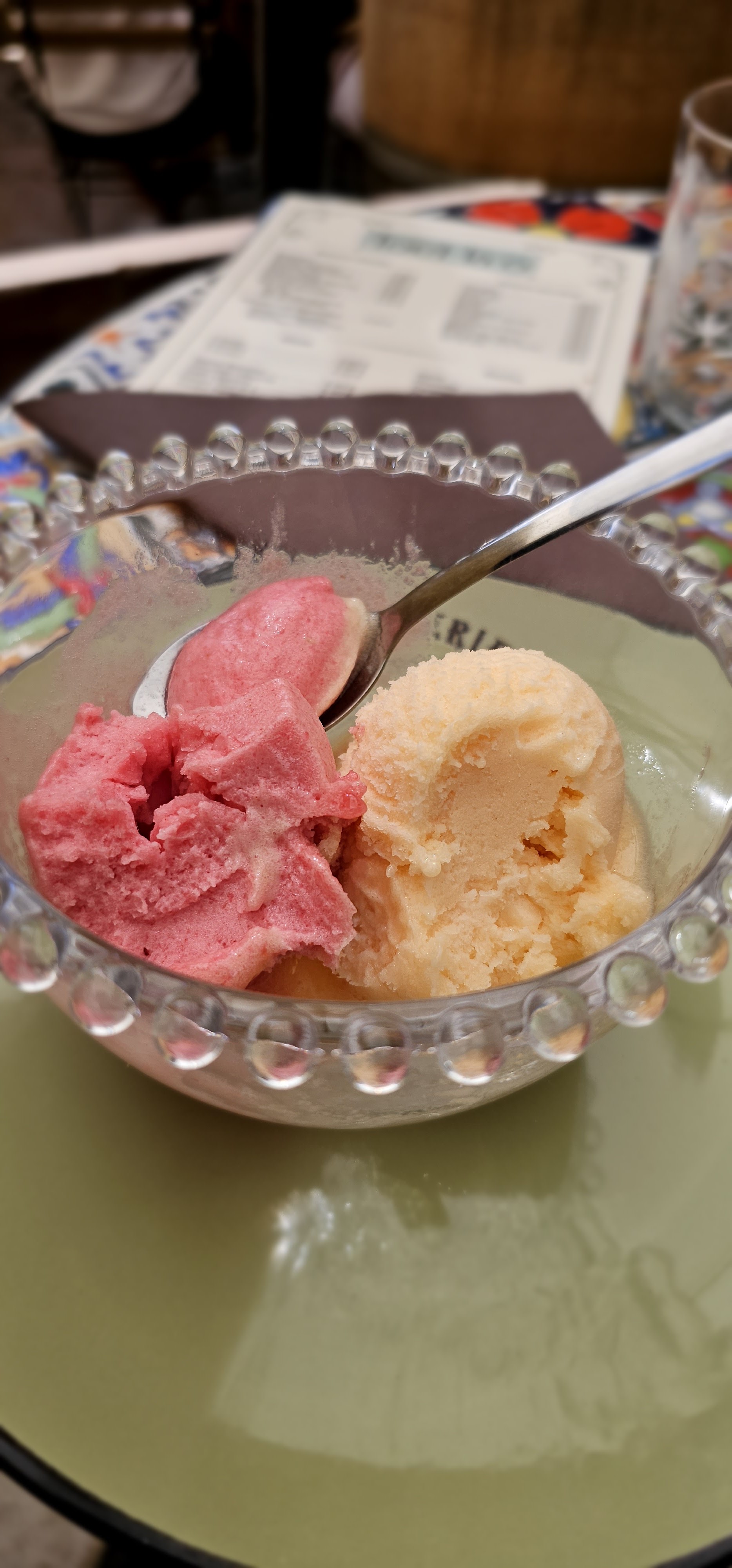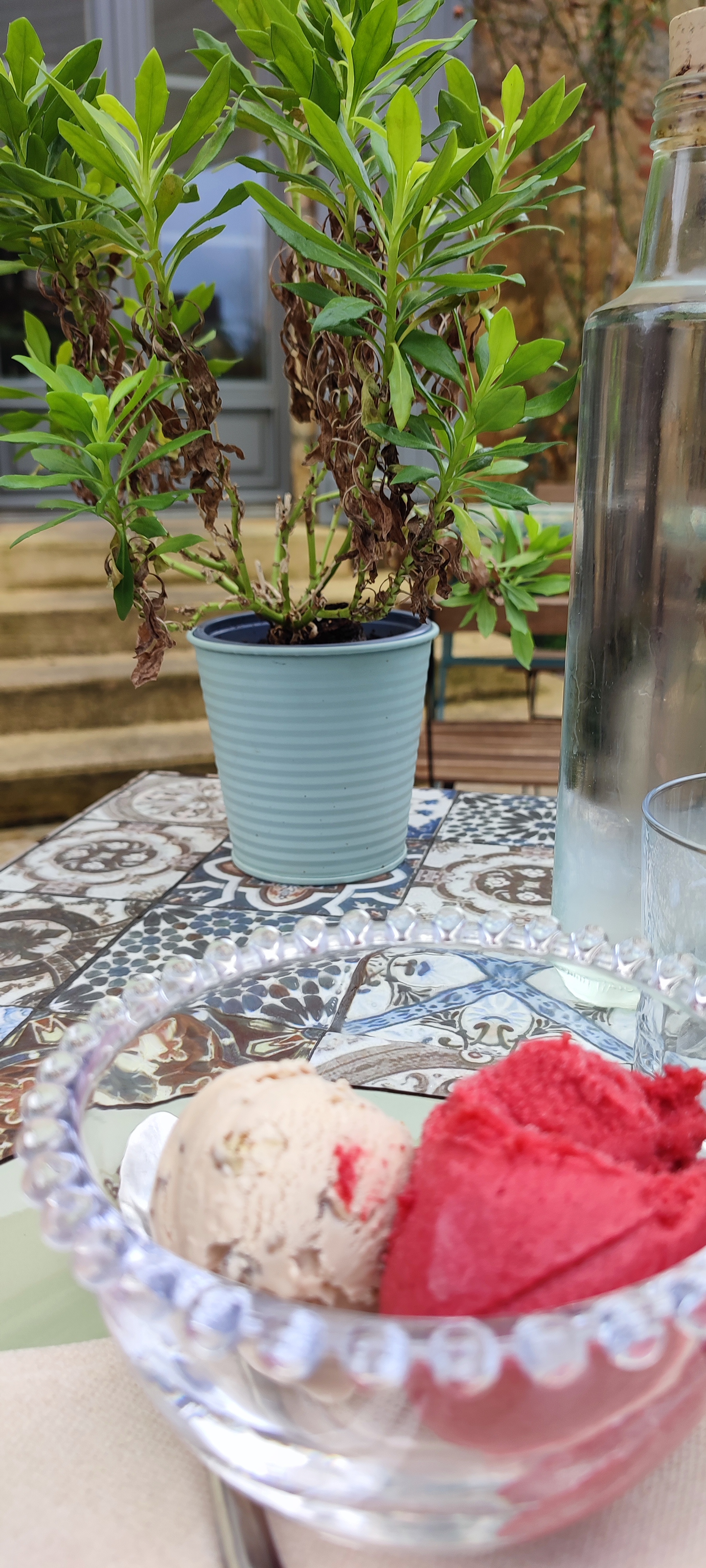 Les sorbets sont un vrai délice. Vive la coupe Tout là ô : un régal pris sur la terrasse ombragée.