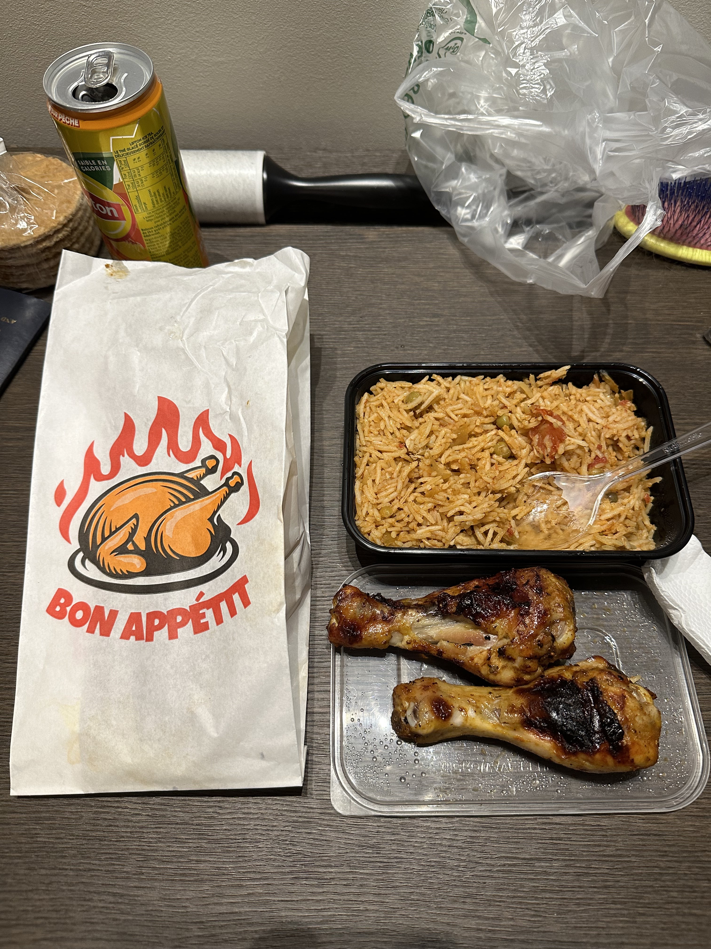 Nous avons pris à emporter arrivons à la maison tout est parfait bien emballé, poulet riz c’est juste très bon ! Donc je recommande ce resto !