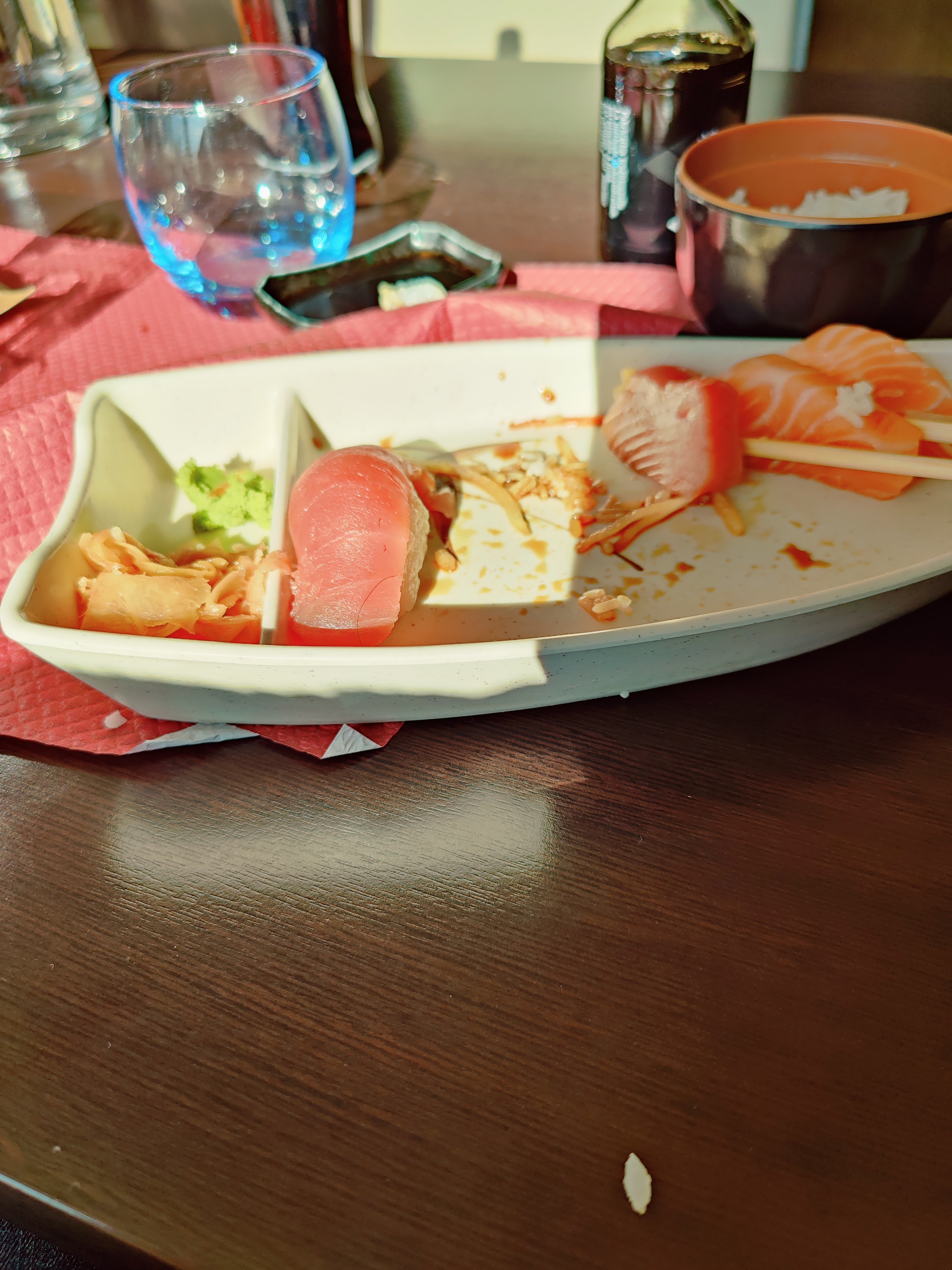 Première fois que je test ce restaurant. Sashimi super bon, sushi nickel, assortiment de friture un peu moins bon. J'y reviendrais pour tester d'autres plats.