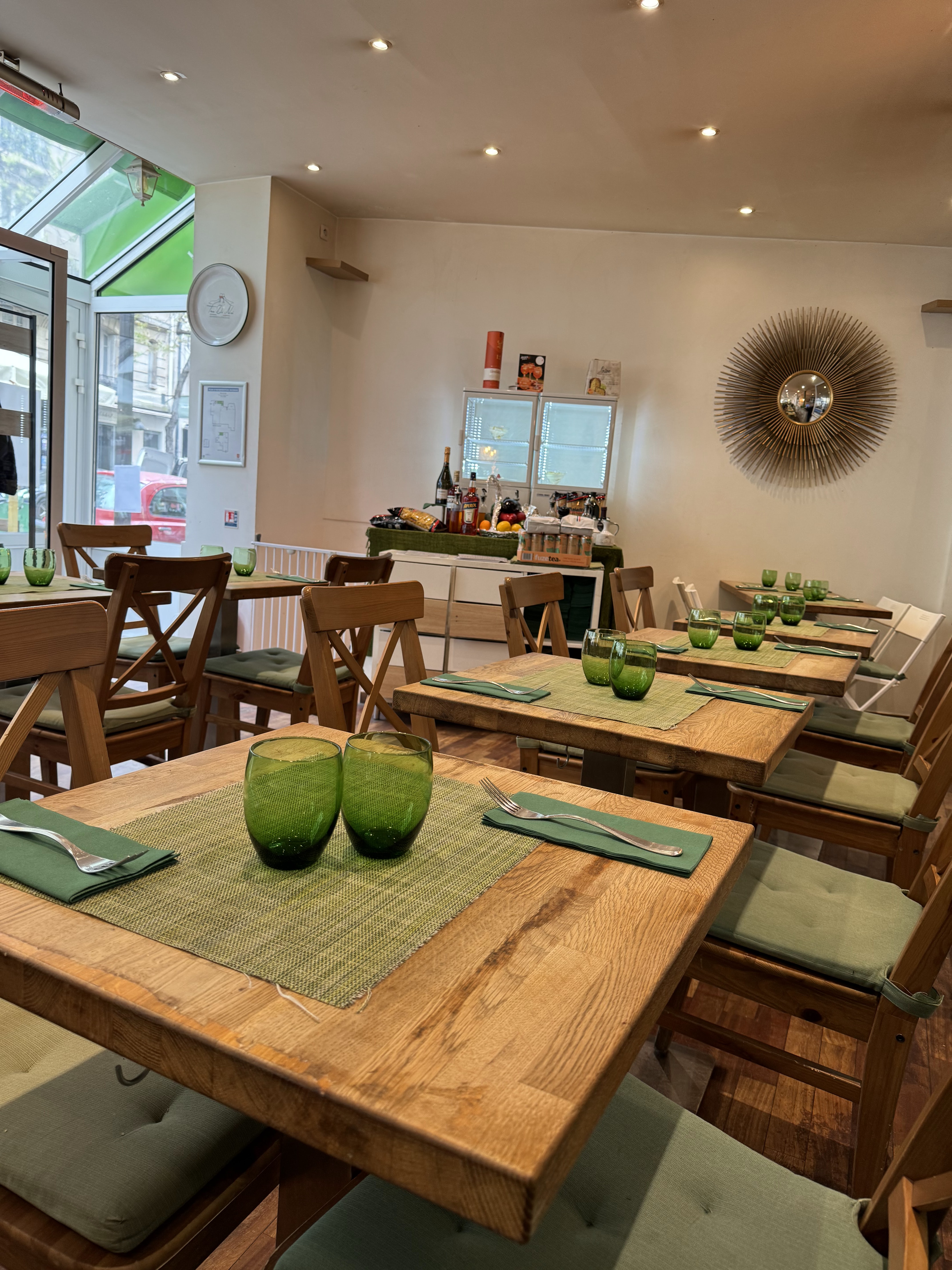 Une magnifique surprise ! Je quittais tranquillement mon AirBnB, je traverse la rue et je tombe sur ces quelques petites tables intimistes en plein soleil sur le bord du trottoir. Mon instinct me dit que je n'ai pas besoin de chercher plus loin que cette jolie brasserie italienne décorée avec goût de nuances de vert amande. La carte vous donne envie de tout commander et je ne vous raconte même pas quand les assiettes des tables voisines défileront devant votre nez. Plus tard, j'apprend que la brasserie est récemment ouverte et pourtant, la moitié des passants, sans doute des locaux, prennent le temps pour saluer brièvement l'équipe et vice et versa. L 'accueil y est chaleureux et sincère, je comprend vite que c'est une affaire familiale tenue par de vrais italiens. La jolie et pétillante Valentina prend même le temps d'écouter les petits malheurs d'une vieille dame du quartier qui avait vraisemblablement besoin de se confier. Au-delà de l'expérience culinaire qui mérite à elle seule 5 étoiles, en étant une vraie invitation à voyager en Italie avec ses bons produits frais et faits maisons on peut ajouter à cela que j'ai halluciné des prix raisonnables pour Paris et même ailleurs en France. Je peux vraiment dire que cette brasserie mérite aussi qu'on s'y arrête pour le côté humain. C'est beau de voir encore aujourd'hui en plein Paris un établissement et des propriétaires qui prennent vraiment à coeur de faire vivre leur quartier et s'attacher à ses habitants. J'ai finalement moi-même passé un bout d'après midi à discuter avec Valentina et je n'ai pas vu le temps passer. Un grand merci à elle et son clan, vous donnez à voir à ceux qui vous croisent le meilleur d'une expérience parisienne.
