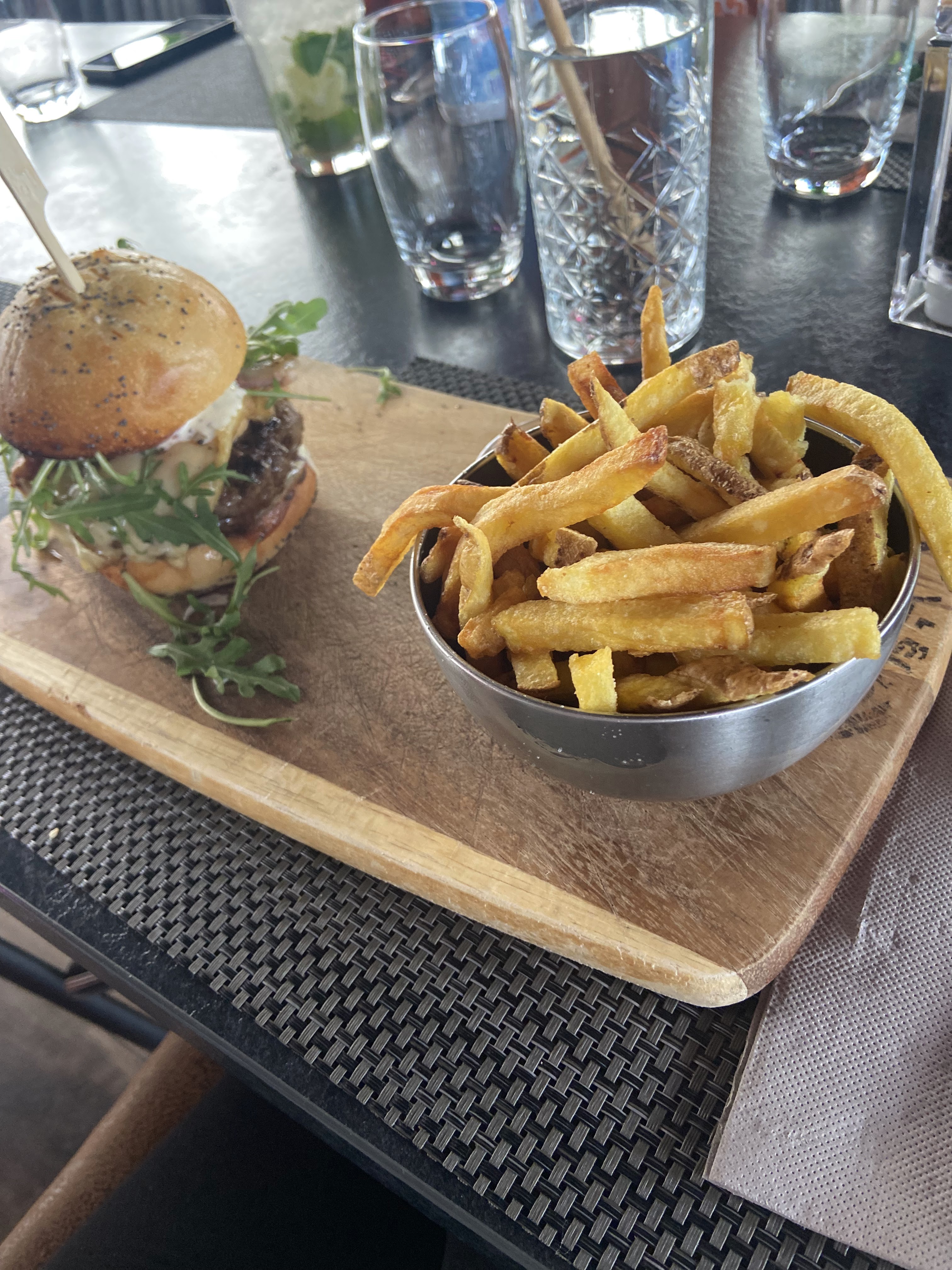 Le service était correct, le cadre est très sympathique, ma viande était très bonne. Par contre peu généreus en frites. Le burgers était aussi bon. Et les cocktails aussi.