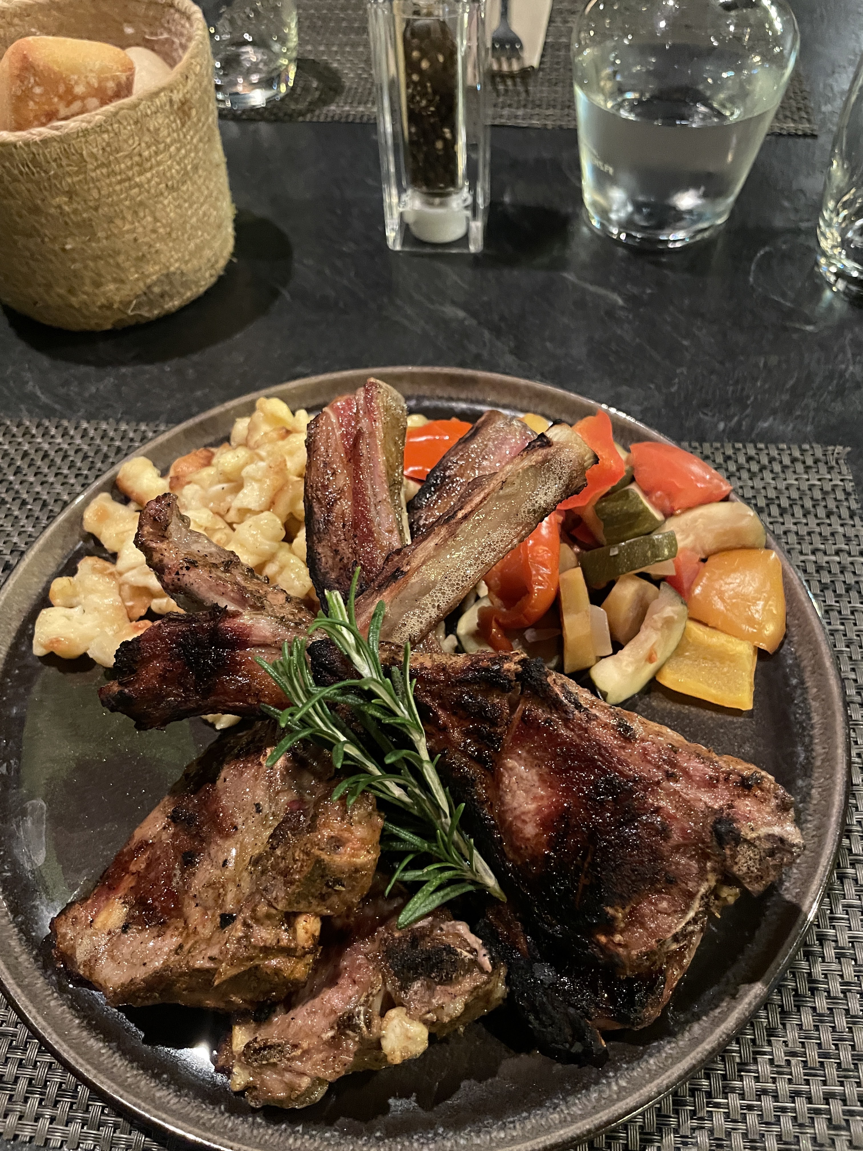 Un soir de semaine. Magnifiques grillades au feu de bois de côtelettes agneau. Je reviendrai !😊