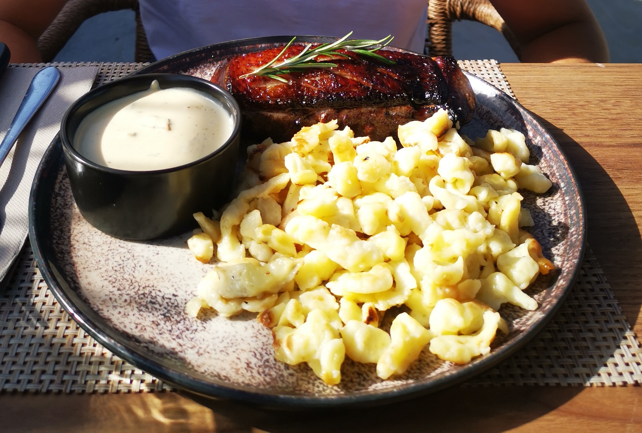 Nous avons manger dimanche à midi mais c’est une véritable catastrophe, j’ai eu des frites calcinés je pense qu’ils ont nettoyé l’huile de la friteuse rien que des petits bout de patates, ma belle fille avait commandée des spaetzles elle a eu des gnepfles grillés à fond, un restaurant à fuir sans plus
