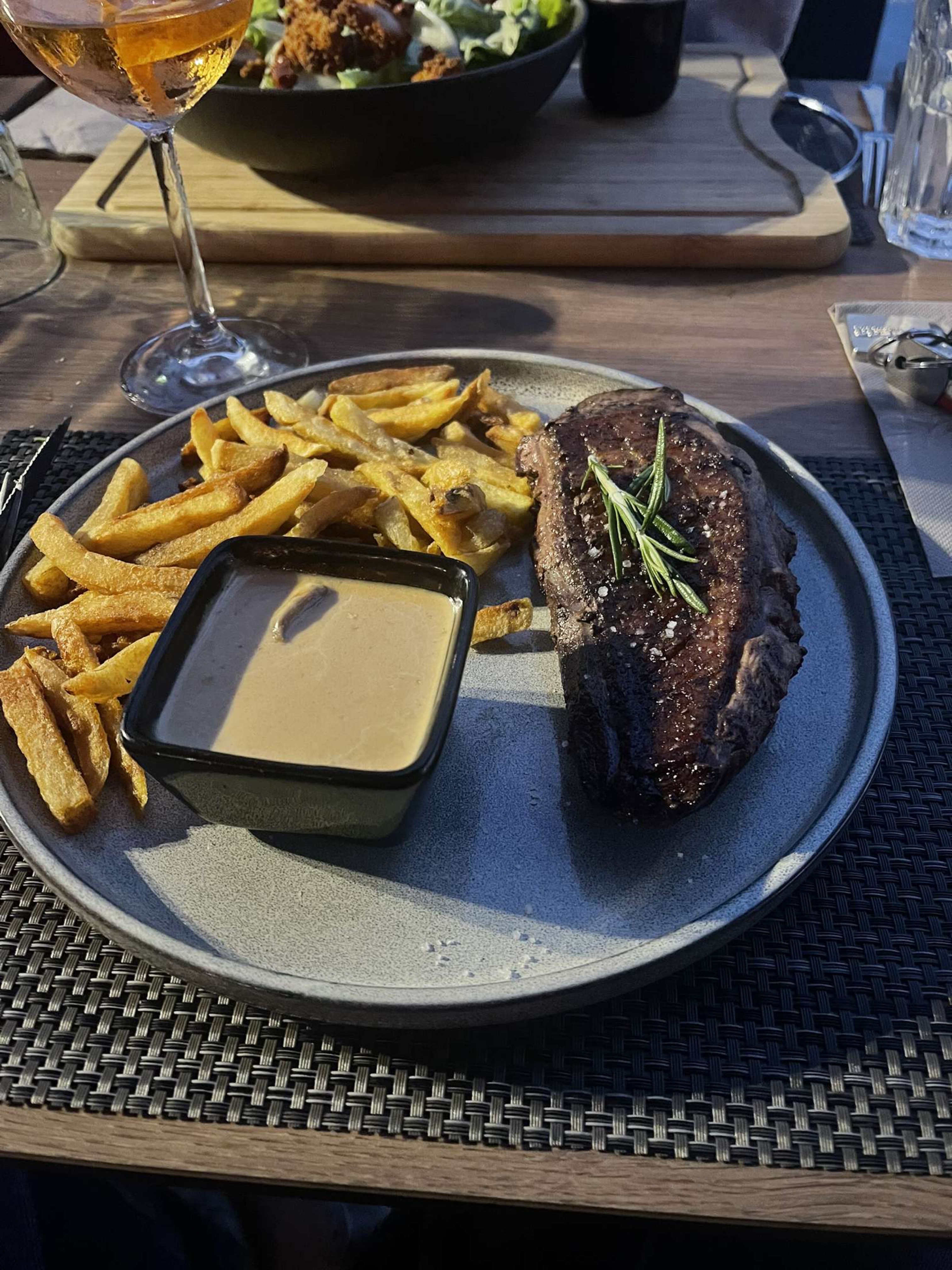 Endroit sympa, personnel sympathique mais l'entrecôte est pas top. Des nœuds, des nerfs , une fois tout enlevé il reste plus grand chose. Dommage