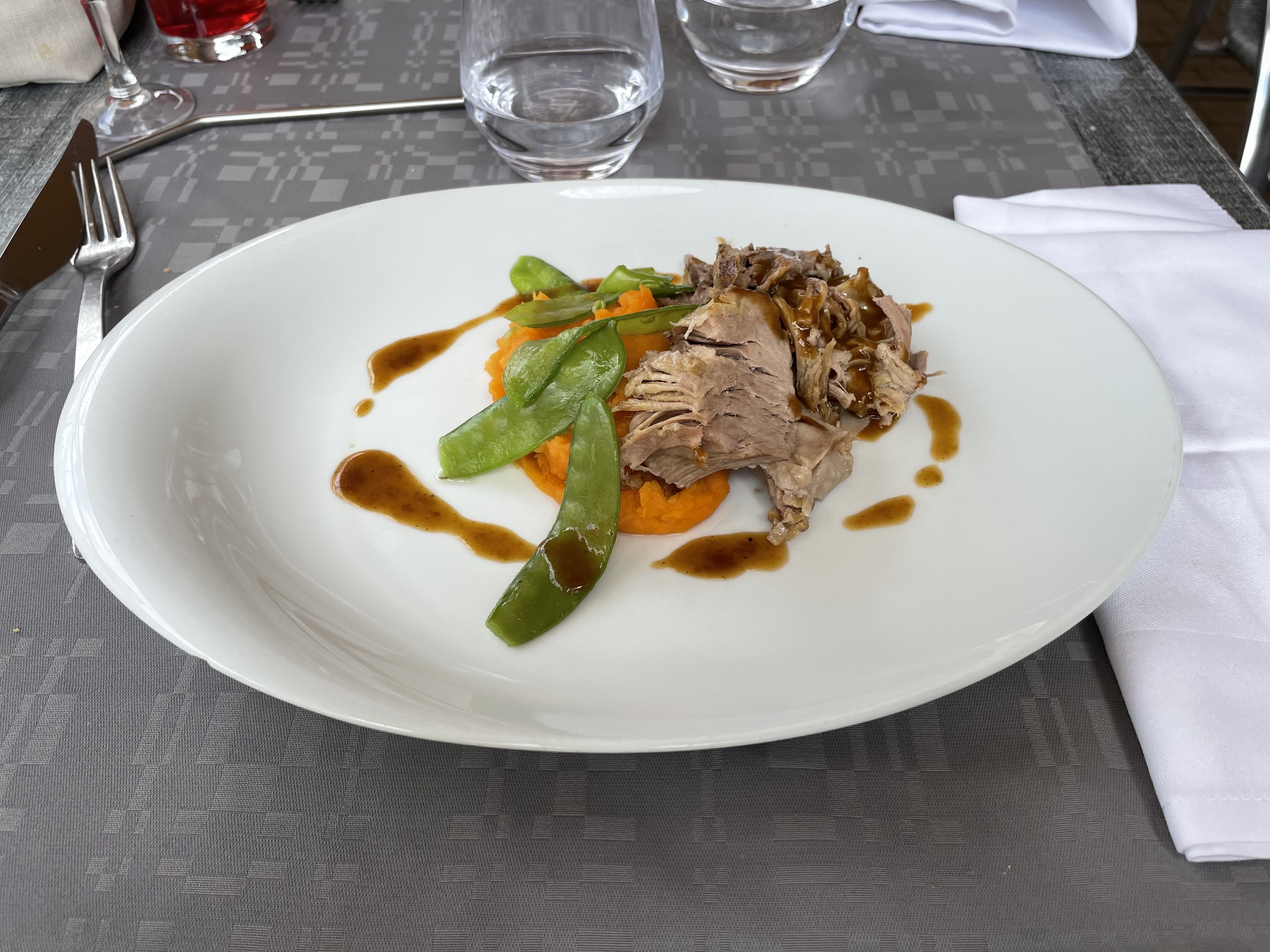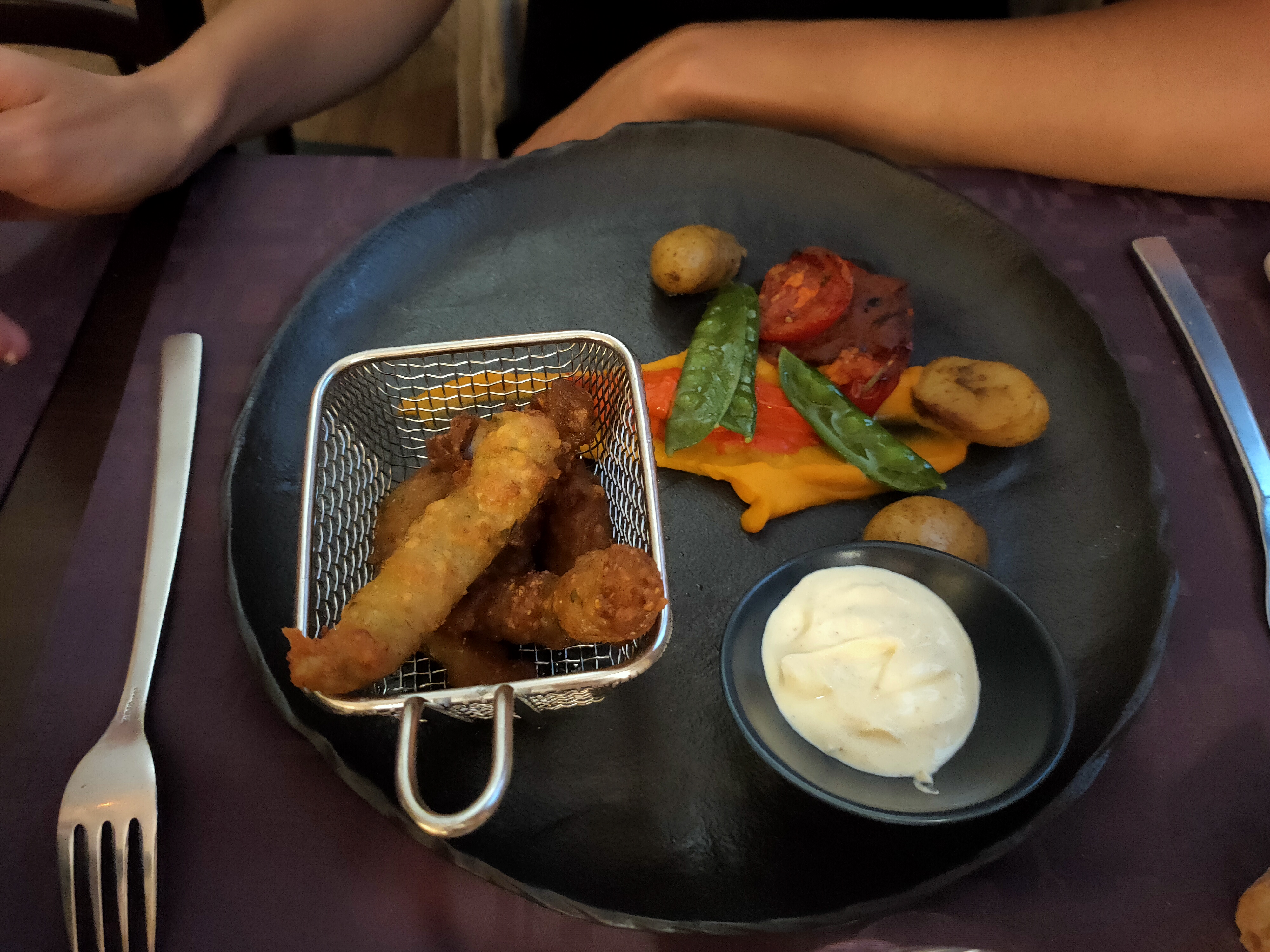 Le repas était excellent, copieux, très bien cuisiné et BRAVO enfin un Menu enfant digne de ce nom! Une entrée, présentée aussi élégamment que les menus adultes, des frites maison et vrai morceau de viande !! Quel beau bâtiment aussi ! Seul petit bémol : le service volontaire mais très hésitant : pourquoi nous demander les boissons hors apéritif et nous annoncer le menu du jour sans présentation de la carte?