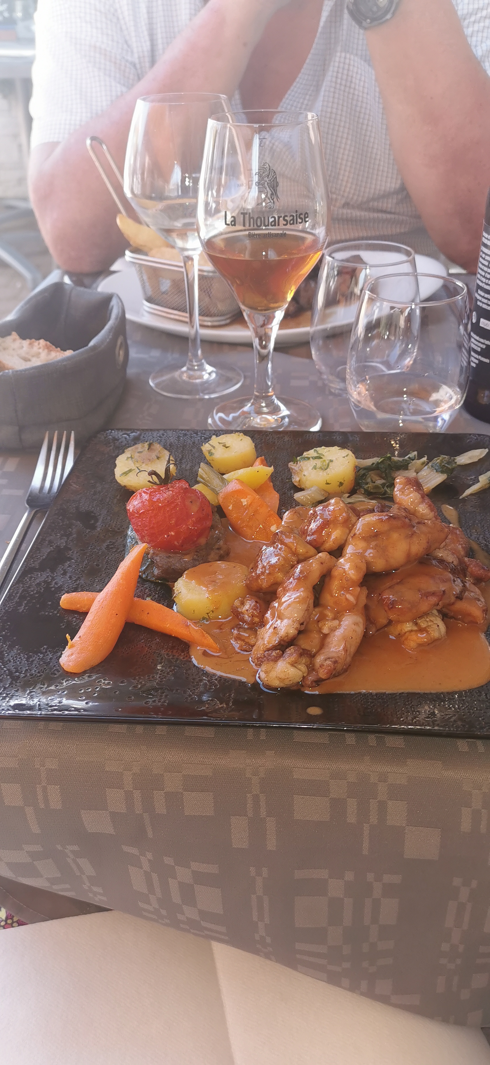Nous étions de passage dans la région avec mon mari et nous avons mangés en terrasse un midi dans ce restaurant, très bon, belles décorations des assiettes, patron et personnel très gentil, bref un chouette moment. Je recommende. Caroline.