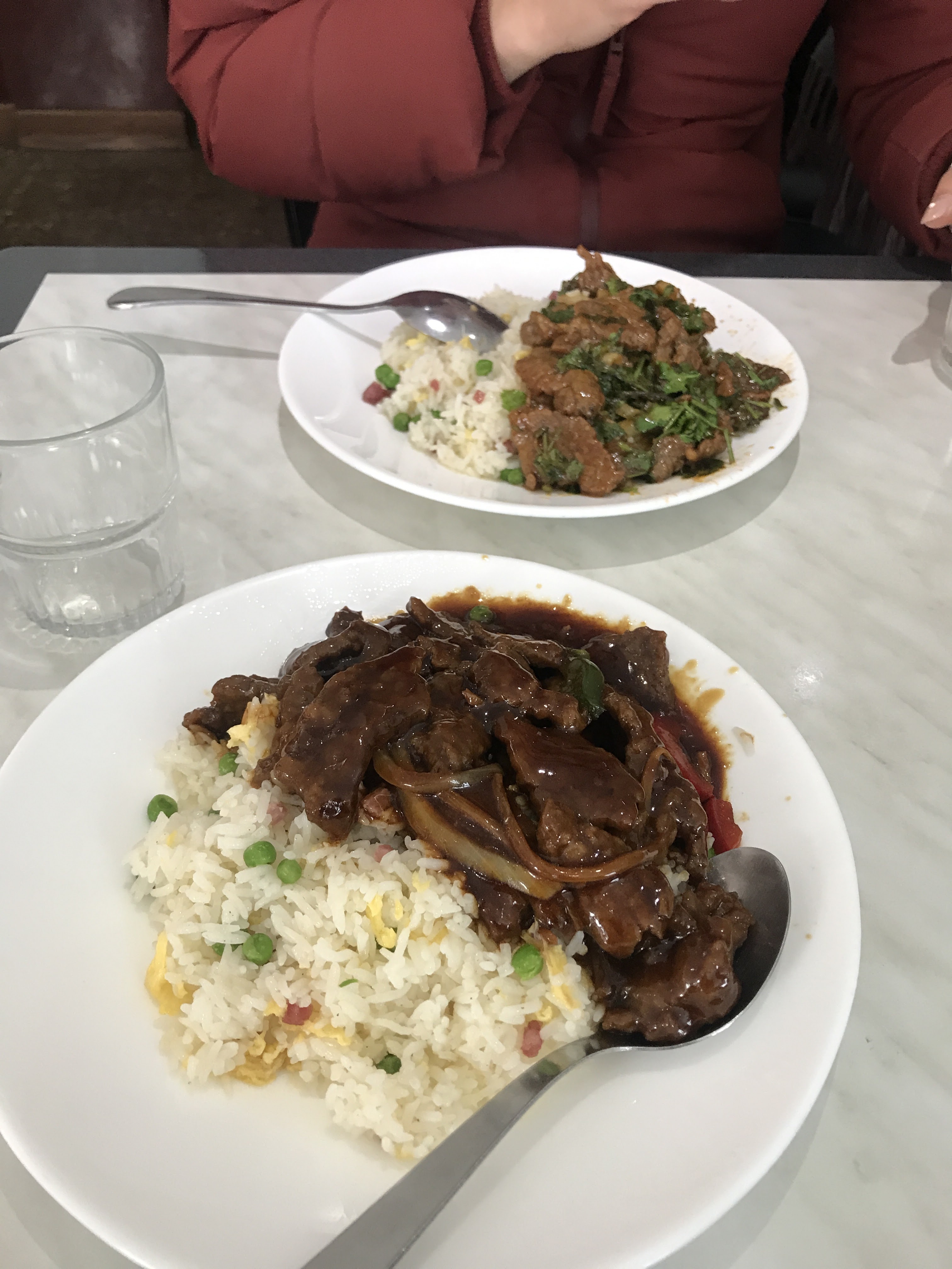Service rapide et furieux - essayez le porc au caramel avec du riz frit, c'est un rêve arrosé de tsingtao ! m