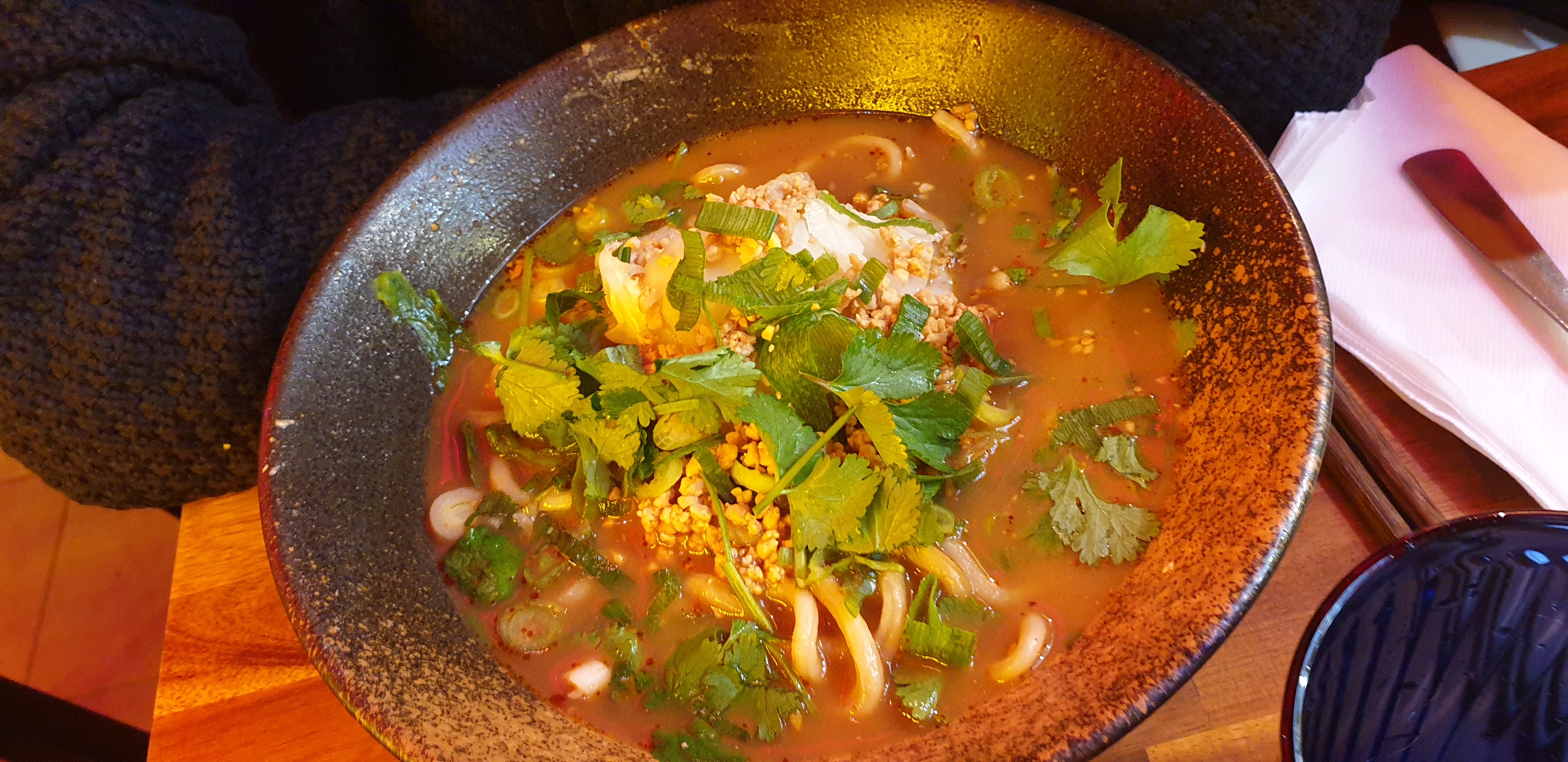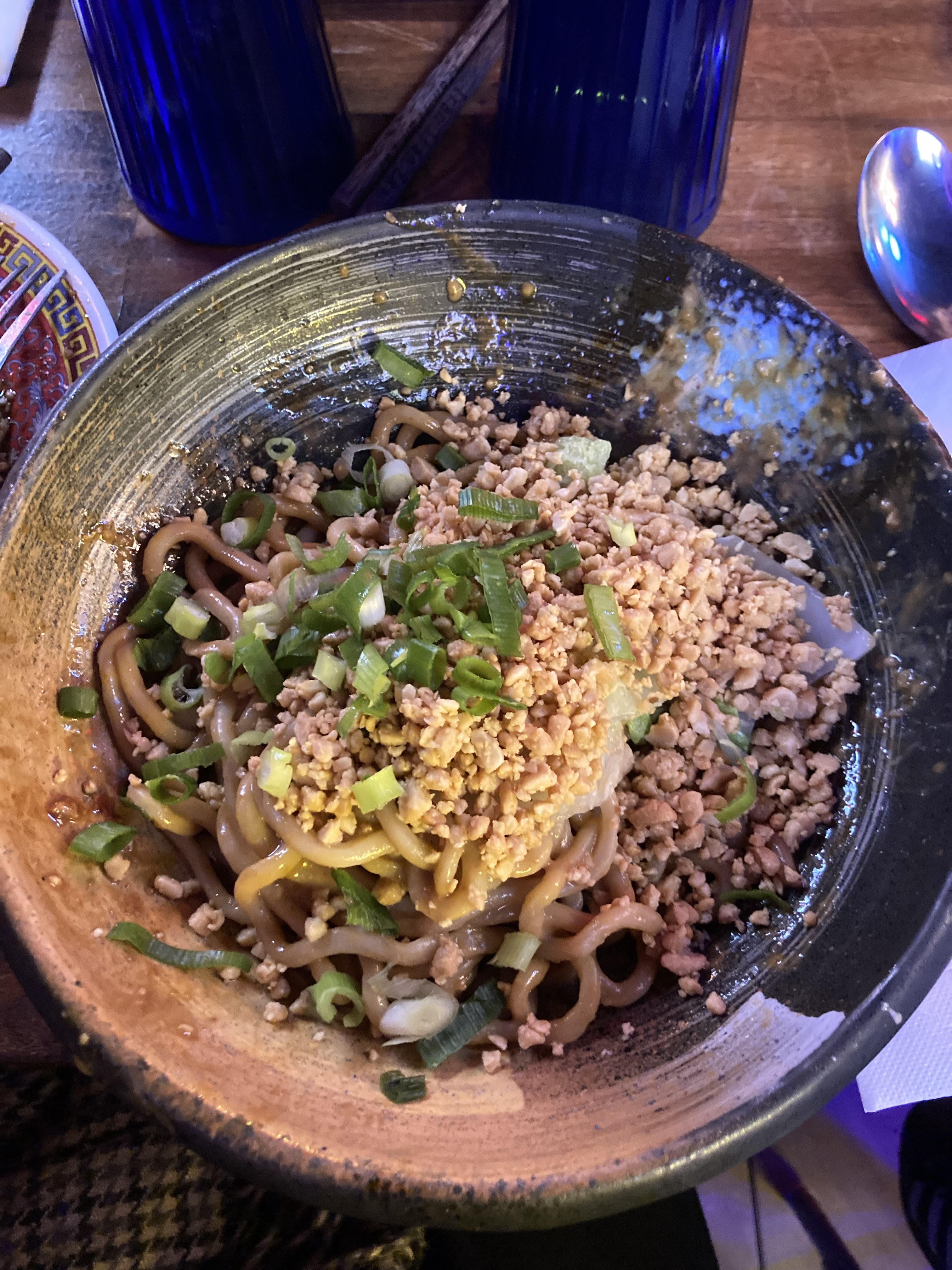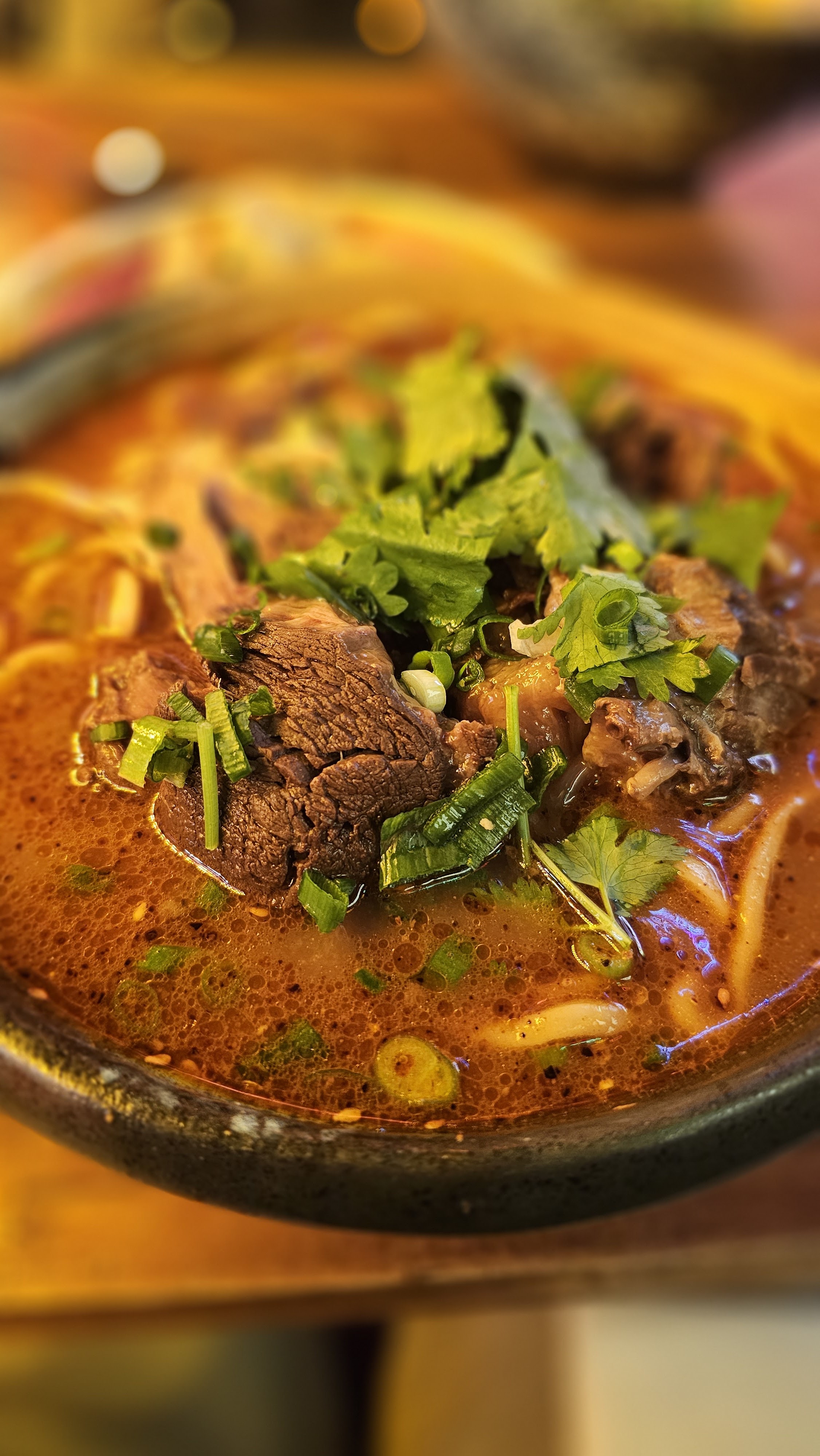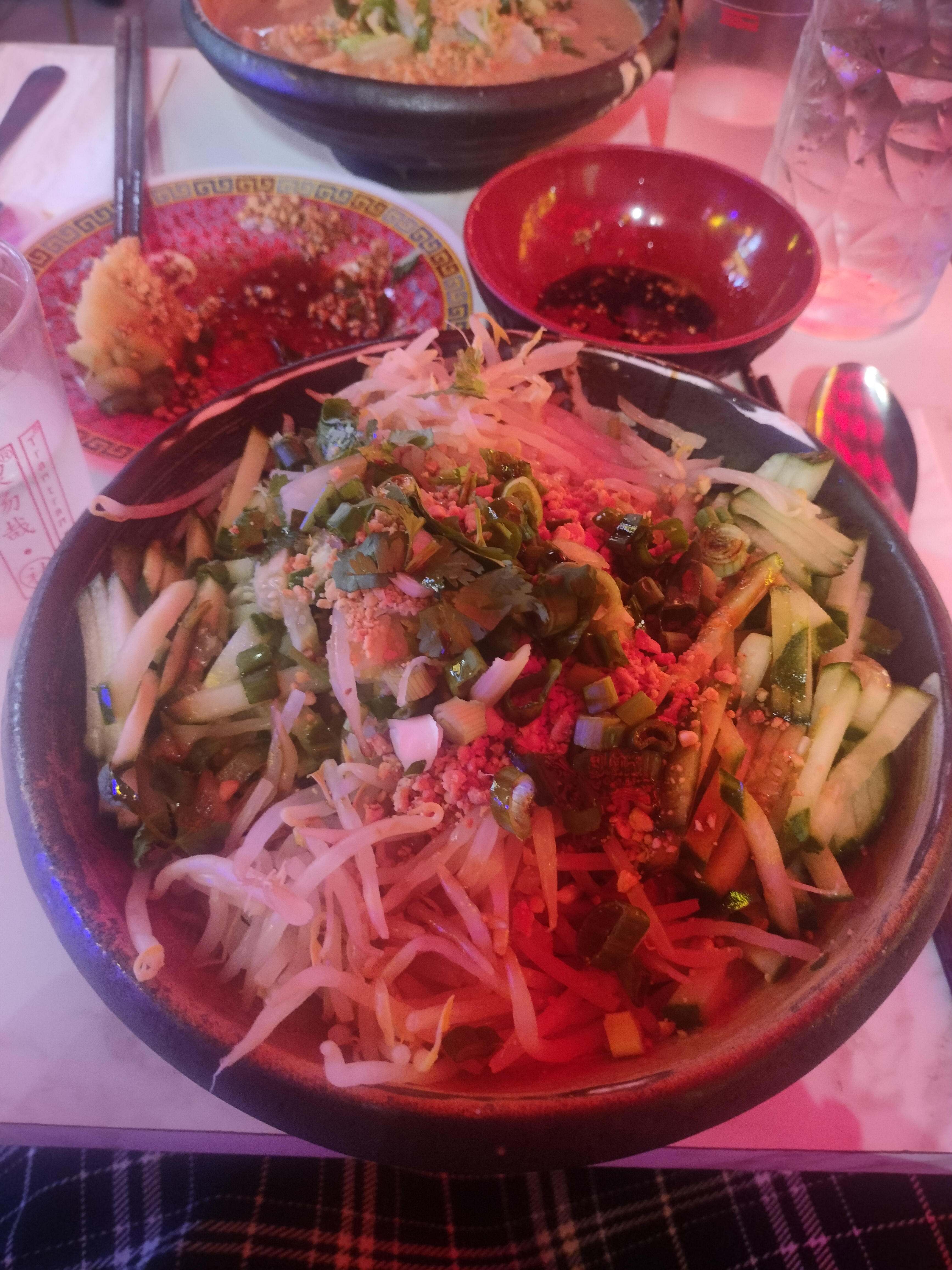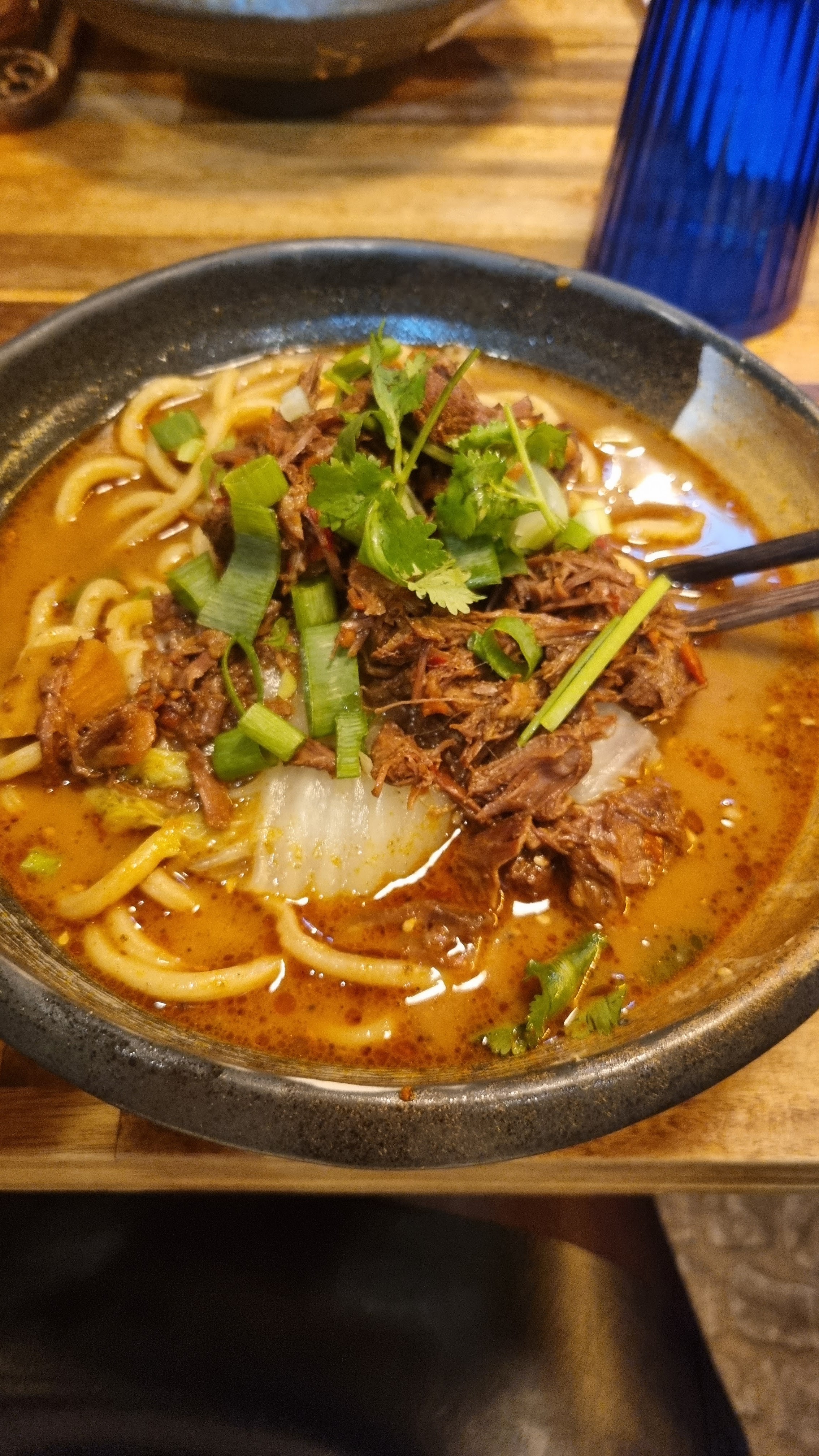 Un restaurant de nouilles chinoise super sympathique avec un joli décor, où vous pouvez choisir votre niveau de piment. J’ai choisis la soupe Dan Dan au porc haché avec un piment niveau 1, les nouilles sont bonnes. Les personnels sont aimables et serviables